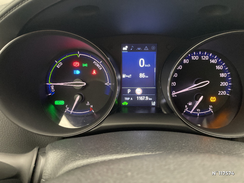Antenne de toit type requin / Toyota Safety Sense Système de sécurité précollision avec détection des piétons, Alerte de franchissement de ligne et détecteur de fatigue, gestion automatique des feux de route, lecture des panneaux de signalisation, régulateur de vitesse adaptatif. / Sièges AV type sport avec maintiens latéraux / Accoudoir central avec compartiment de rangement / Projecteurs AV et clignotants et feux halogènes / Calculateur de temps de conduite en électrique / Système AVAS (Acoustic Vehicle Alerting System) / Système de contrôle de motricité (TRC) / Frein de stationnement électrique / Coques de rétroviseur couleur carrosserie / Système de freinage antiblocage (ABS), BA et EBD / Ciel de pavillon noir / Sellerie en tissu gris sombre avec surpiqûres grises et embossage faà§on diamant / Système de connectivité smartphone Apple CarPlay / Android Auto / Essuie-glace AV à déclenchement manuel / Optiques AV et AR à LED / Poignées de portes et pare-chocs AV couleur carrosserie / Système multimédia Toyota Touch avec radio DAB, écran couleur tactile 8'', bluetooth, USB / Becquet AV couleur carrosserie / Fermeture centralisée avec commande à distance / Tapis de sol en velours AV/AR / 7 Airbags (frontaux, lateraux, rideaux et un protège-genoux conducteur) / Kit de réparation anti-crevaison / Lignes de vitres noires / Ecrous antivol / Ajustement manuel de la hauteur des phares / Filet coffre / Rétroviseurs extérieurs électriques et dégivrants avec rappels de clignotants / Système d'appel d'urgence automatique e-Call / Combiné d'instrumentation avec écran couleur TFT multifonction 4" / Indicateur de sous-gonflage des pneus / 6 HP / Alarme avec fonction antidémarrage / Ornements de console centrale et de portières Gris Platine / Système de contrôle de trajectoire (VSC) / Kit de sécurité