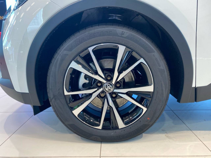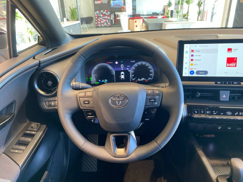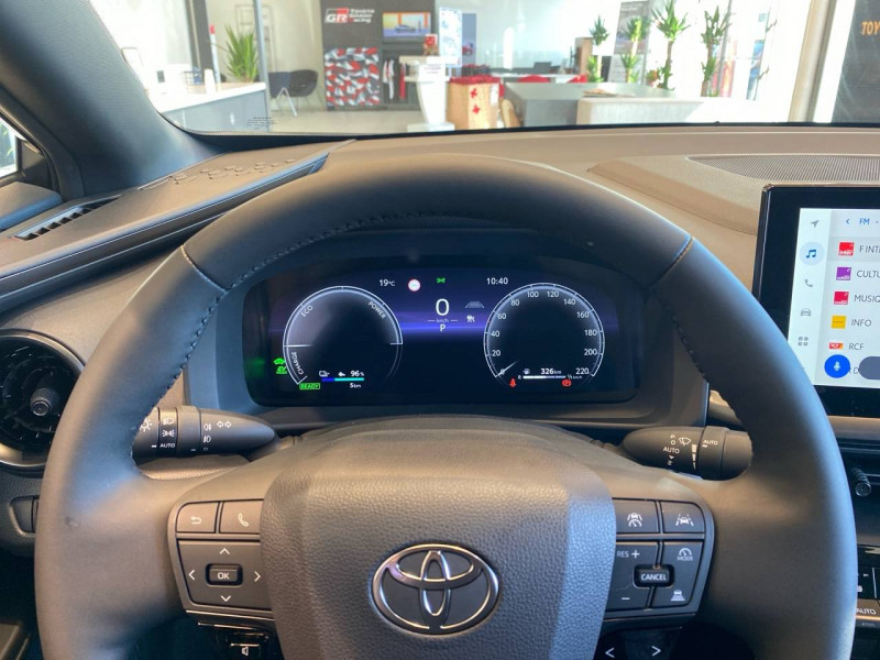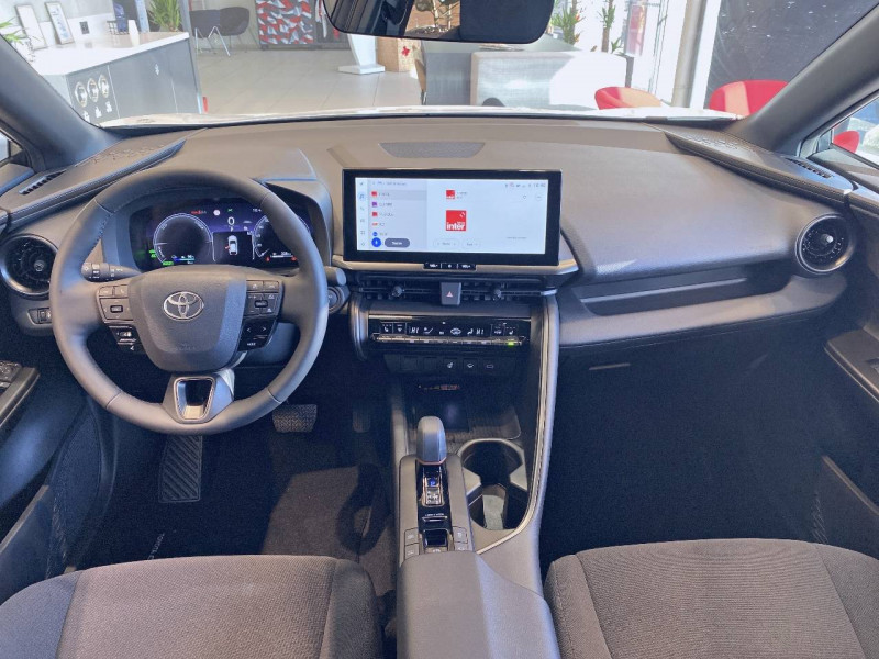 6 HP / Activation automatique des feux de détresse AR (FHL) / Aide à la sortie sécurisée (SEA) Le système vous aide à prévenir les accidents en surveillant les autres usagers de la route qui s'approchent par l'arrière. Lorsqu'il détecte la présence d'un cycliste ou d'un véhicule, un indicateur lumineux s'affiche dans les rétroviseurs extérieurs et sur l'écran multi-informations et une alarme sonore alerte les occupants. / Alarme avec fonction antidémarrage / Avertisseur d'angles morts (BSM) Lorsque les capteurs détectent un véhicule dans votre angle mort latéral, un indicateur lumineux s'éclaire sur le rétroviseur extérieur correspondant. Si vous mettez votre clignotant afin d'indiquer un changement de voie alors qu'un véhicule est dans votre angle mort, un indicateur lumineux apparaît dans le rétroviseur correspondant pour vous avertir du danger. / Avertisseur de circulation AR (RCTA) Cet avertisseur vous permet grâce aux capteurs d'angles morts de repérer un véhicule arrivant de côté quand vous sortez en marche AR d'une place de parking. S'il détecte un risque de collision, le système freine automatiquement et stoppe le véhicule. / Câble de recharge Mode 2 (Type 2) 1,8 kW / 6 mètres (domestique) / Câble de recharge Mode 3 (Type 2) 22kW / 7,5 mètres (Wallbox) / Carrosserie monoton / Coffre avec plancher surélevé / Compteur numérique personnalisable 12,3" / Eclairage d'ambiance intérieur monochrome éclairage non personnalisable et non interactif : cave à pieds / rangement passager / Ecrous antivol / Essuie-glaces AV avec détecteur de pluie / Filet coffre / Jantes en alliage 18" bi-ton noir et aluminium / Kit de réparation anti-crevaison / Kit de sécurité / Montants B de portes noir laqué / Optiques AV full-LED / Pare-brise chauffant (sous les essuie-glaces uniquement) / Poignées de portes affleurantes / Prise 230 V dans le coffre / Programme "Toyota Experience" / Radars de stationnement AV et AR (PKSB) Lorsque vous roulez à basse vitesse ou en marche AR, les radars permettent de détecter des objets statiques (obstacles, murs...) ou en mouvement (véhicules traversant à l'AR), le système de freinage de l'aide au stationnement fournit alors une assistance pour réduire l'impact. / Rétroviseur intérieur électrochromatique / Rétroviseurs extérieurs avec éclairage au sol / Sacoche de rangement pour le câble de recharge / Sellerie tissu gris foncé avec surpiqûres cuivre / Services connectés de contrôle à distance MyToyota (inclus 4 ans) / Services connectés standards MyToyota (inclus 10 ans) / Seuils de portes en aluminium / Siège conducteur avec support lombaire électrique / Siège passager réglable manuellement en hauteur / Système d'appel d'urgence automatique "E-Call" / Système de rappel pour les sièges AR (RSRS) / Système d'ouverture/fermeture et démarrage sans clé "Smart Entry & Start" / Système multimédia Toyota Smart Connect : Écran couleur tactile 8 haute définition, Connectivité Bluetooth, USB et radio, FM et DAB (digitale), Système de connectivité smartphone Apple CarPlay et Android Auto (sans fil), Services intelligents dont navigation connectée avec infotrafic en temps réel, mises à jour cartographiques, assitant vocal Hey Toyota et recherche de points d'intérêts (inclus 4 ans) / Toyota Safety Sense : Système de sécurité précollision avec détection des véhicules, piétons (jour/nuit) et cyclistes, actif également dans les intersections (PCS), Alerte de franchissement de ligne avec aide au maintien dans la file, assistant de trajectoire et détecteur de fatigue (LTA), Régulateur de vitesse adaptatif intelligent allant jusqu'à l'arrêt (ACC), Lecture des panneaux de signalisation avec limiteur de vitesse (RSA) et Gestion automatique des feux de route (AHB), Système d'arrêt d'urgence autonome (EDSS) / Vitrage feuilleté insonorisé / Volant chauffant / Volant gainé de matière synthétique