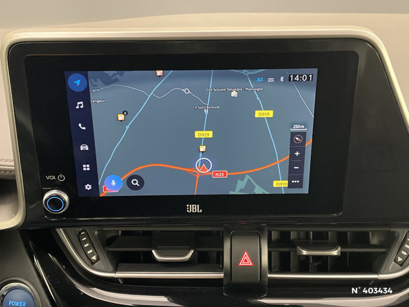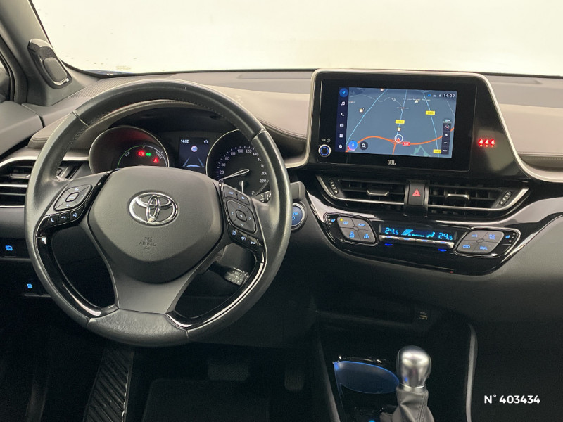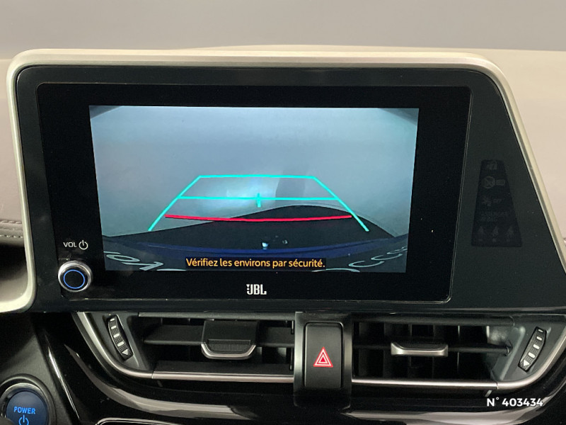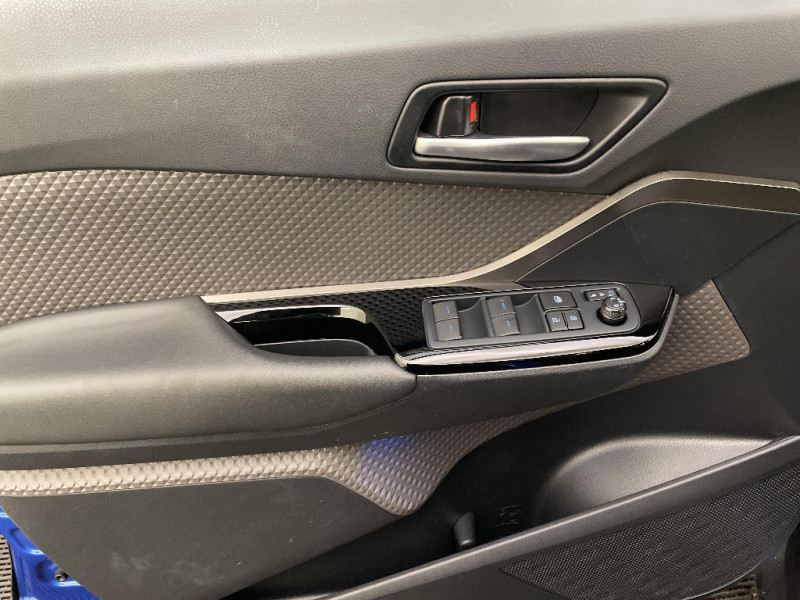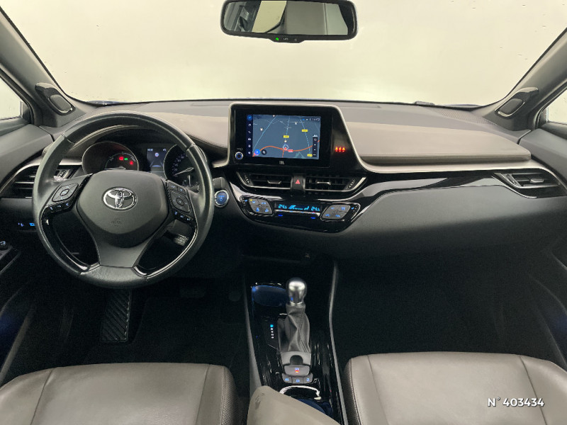 Combiné d'instrumentation avec écran couleur TFT multifonction 4" / Coques de rétroviseurs extérieurs noires / Eclairage d'accueil / Ecrous antivol / Fermeture centralisée avec commande à distance / Feu de recul central à LED sur bouclier AR / Feux AR à LED avec clignotants séquentiels / Filet coffre / Accoudoir central avec compartiment de rangement / Follow me home (feux AV à extinction différée) / Frein de stationnement électrique / Lignes de vitres chromées / Montant central (pilier B) noir laqué / Optiques AV LED avec signature lumineuse Premium / Optiques AV/AR full-LED avec signature lumineuse Premium / Ornements de console centrale et de portières Gris Lune / Peinture bi-ton Bleu Nebula/Toit Noir / Poches aumonières au dos des sièges AV / Poignées de portes couleur carrosserie / Poignées de portes et pare-chocs AV couleur carrosserie / Purificateur d'air ionique Nanoe / Garnissage de portières brun / Rétroviseur intérieur anti-éblouissement / Rétroviseur intérieur électrochromatique / Rétroviseurs extérieurs avec projection au sol du logo Toyota C-HR / Rétroviseurs extérieurs électriques et dégivrants avec rappels de clignotants / Revêtement supérieur de planche de bord et d´accoudoir central brun sombre / Sellerie mi-cuir chocolat et noir avec surpiqûres faà§on diamant / Siège conducteur à réglage lombaire électrique / Siège passager AV ajustable manuellement en hauteur / Sièges AV type sport avec maintiens latéraux / Système AVAS (Acoustic Vehicle Alerting System) / Système d'accès (conducteur, passager et coffre) et de démarrage sans clé "Smart Entry & Start" / Système d'appel d'urgence automatique "E-Call" / Système de connectivité smartphone Apple CarPlay / Android Auto / Système de contrôle de motricité (TRC) / Système de contrôle de trajectoire (VSC) / Système de freinage antiblocage (ABS), BA et EBD / Système multimédia Toyota Touch avec radio DAB, écran couleur tactile 8'', bluetooth, USB / Tapis de sol en velours AV/AR / Toyota Safety Sense Système de sécurité précollision avec détection des piétons, Alerte de franchissement de ligne et détecteur de fatigue, gestion automatique des feux de route, lecture des panneaux de signalisation, régulateur de vitesse adaptatif. / Toyota Touch (système audio, écran tactile, Bluetooth et caméra de recul) / 6 HP / 7 Airbags (frontaux, lateraux, rideaux et un protège-genoux conducteur) / Indicateur de sous-gonflage des pneus / Kit de réparation anti-crevaison / Kit de sécurité / Ajustement manuel de la hauteur des phares / Alarme avec fonction antidémarrage / Antenne de toit type requin / "ATTENTION" - Equipements non communiqués / Avertisseurs d'angles morts et de circulation AR avec freinage d'urgence auto / Becquet AV couleur carrosserie / Calculateur de temps de conduite en électrique / Carrosserie bi-ton avec toit noir / Ciel de pavillon noir
