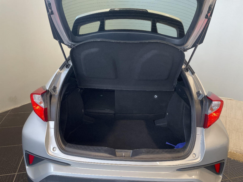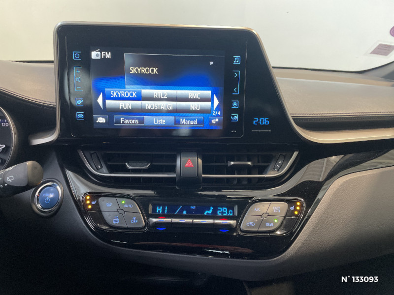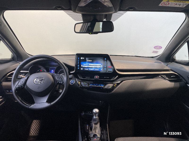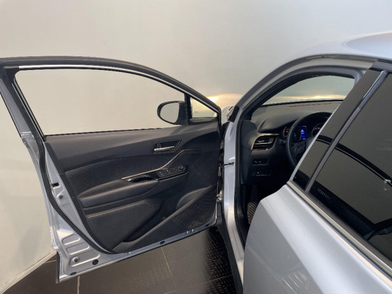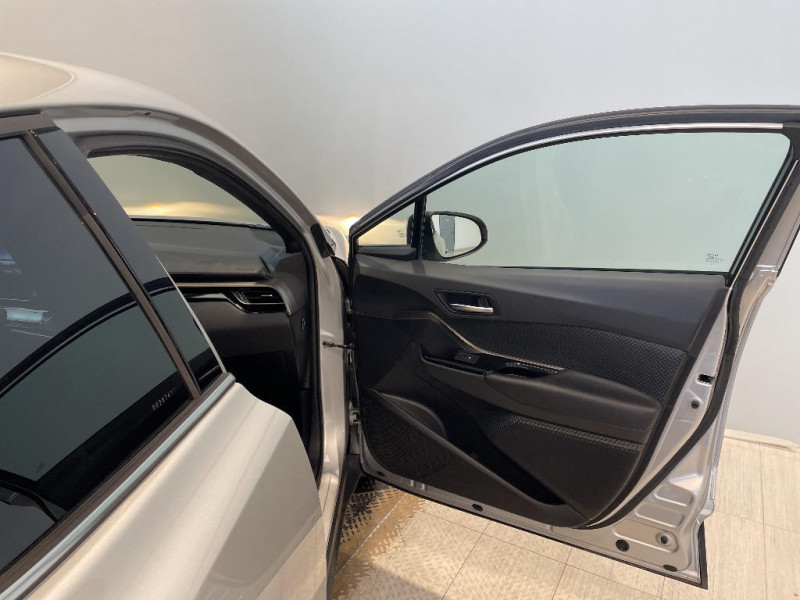 Système de contrôle de stabilité (VSC) + Système de contrôle de motricité (TRC) / Système de freinage antiblocage ABS / Système de téléphonie Bluetooth / Système d'ouverture/fermeture et démarrage sans clé "Smart Entry & Start" (conducteur, passager et coffre) / Système multimédia Toyota Touch 2 (Système audio avec radio) / Toyota Safety Sense Système de sécurité précollision avec détection des piétons, Alerte de franchissement de ligne et détecteur de fatigue, gestion automatique des feux de route, lecture des panneaux de signalisation, régulateur de vitesse adaptatif. / Antenne de toit type requin / 6 HP / 7 Airbags (frontaux et latéraux pour conducteur et passager AV, rideaux AV et AR et protège-genoux conducteur) / Illumination des contre-portes / Indicateur de perte de pression des pneus / Kit de réparation anti-crevaison / Console centrale noir laqué / Contre-portes avec inserts noirs laqués / Follow me home (feux AV à extinction différée) / Lignes de vitres chromées / Montant central (pilier B) noir laqué / Ordinateur de bord avec écran TFT couleur 4.2" multifonctions / Phares à extinction différée / Prises auxiliaire et USB / Réglages manuels du siège conducteur / Rétroviseur intérieur anti-éblouissement / Rétroviseurs extérieurs rabattables automatiquement avec projection au sol du logo Toyota C-HR / Sellerie tissu gris foncé / Sièges AV type sport avec maintiens latéraux / Support lombaire du siège conducteur (électrique)