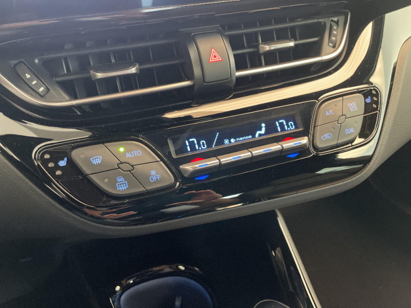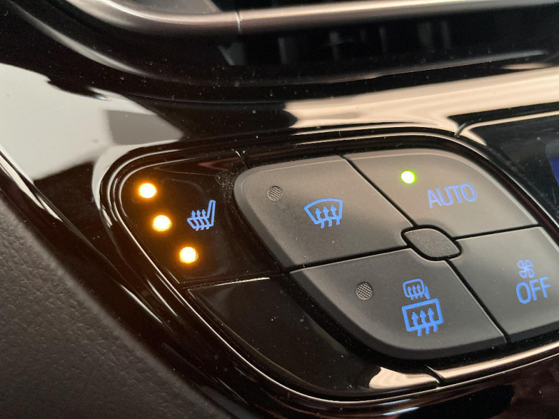 Siège conducteur à réglage lombaire électrique / Rétroviseurs extérieurs avec projection au sol du logo Toyota C-HR / Frein de stationnement électrique / 7 Airbags (frontaux, lateraux, rideaux et un protège-genoux conducteur) / Toyota Safety Sense Système de sécurité précollision avec détection des piétons, Alerte de franchissement de ligne et détecteur de fatigue, gestion automatique des feux de route, lecture des panneaux de signalisation, régulateur de vitesse adaptatif. / Système d'appel d'urgence automatique "E-Call"