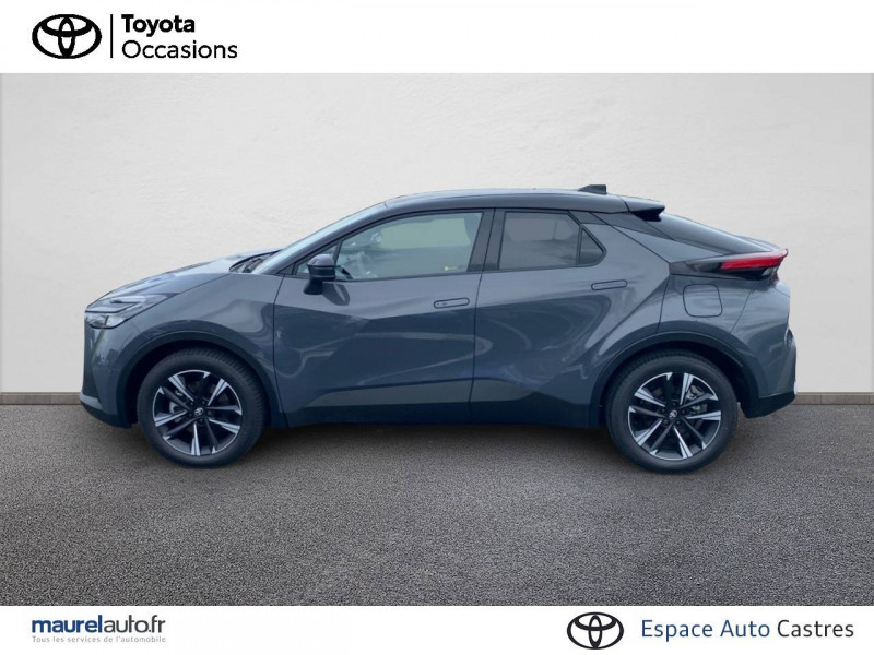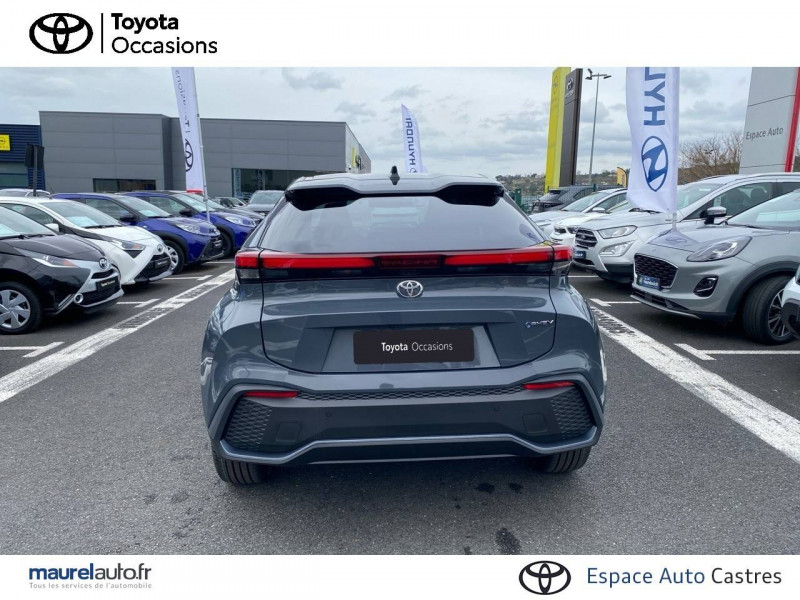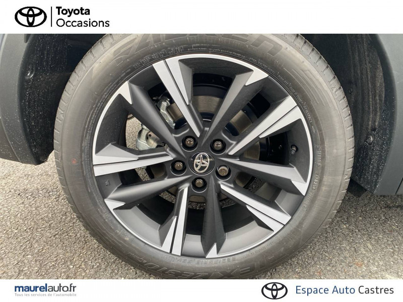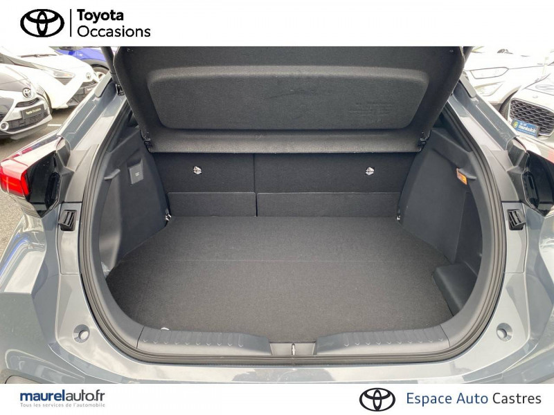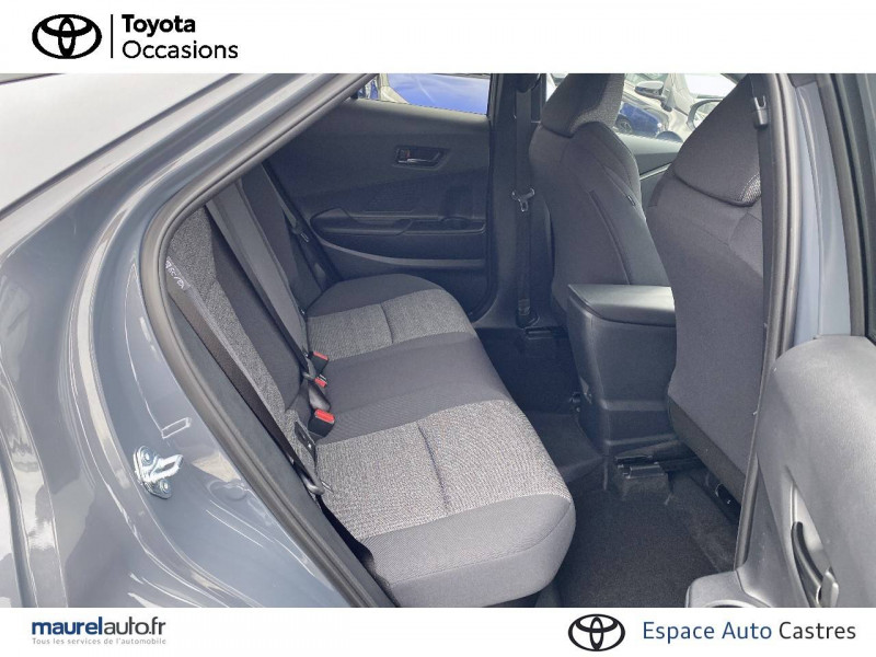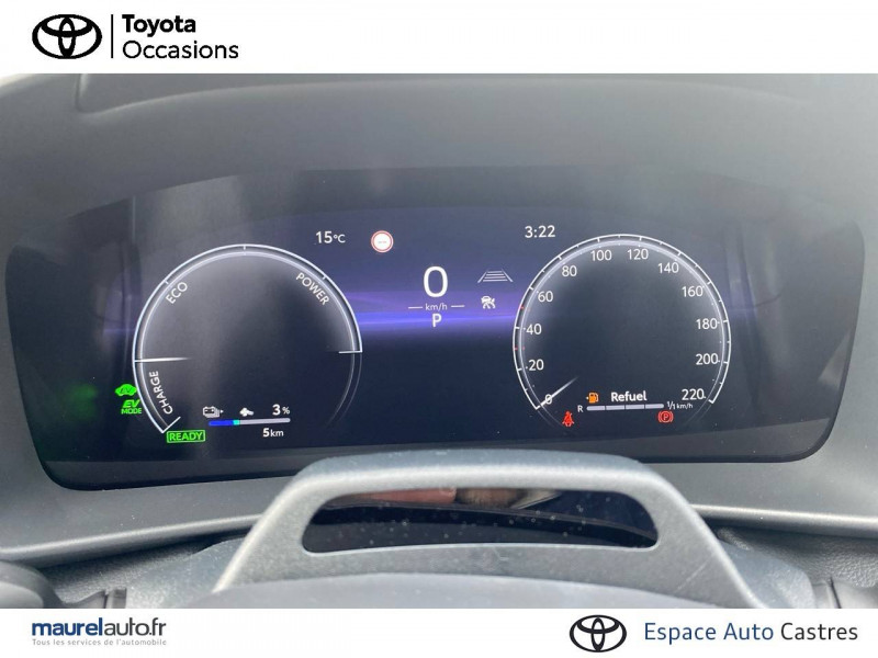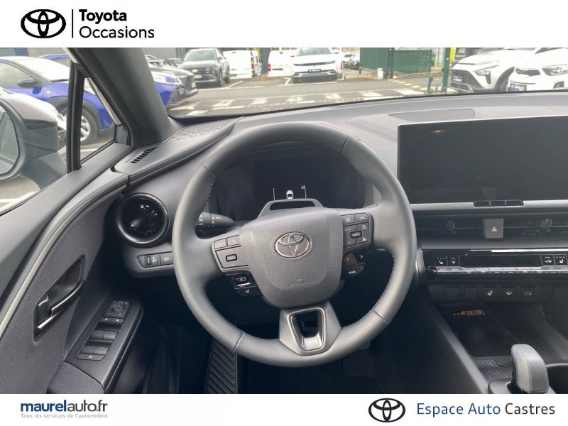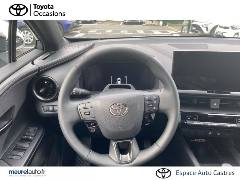 6 HP / Activation automatique des feux de détresse AR (FHL) / Aide à la sortie sécurisée (SEA) Le système vous aide à prévenir les accidents en surveillant les autres usagers de la route qui s'approchent par l'arrière. Lorsqu'il détecte la présence d'un cycliste ou d'un véhicule, un indicateur lumineux s'affiche dans les rétroviseurs extérieurs et sur l'écran multi-informations et une alarme sonore alerte les occupants. / Alarme avec fonction antidémarrage / Assistant visuel de conduite (DMC) Ce système utilise une caméra située audessus du volant pour surveiller le niveau d'alerte et l'état du conducteur. Le système envoie un avertissement s'il détecte un état anormal, comme de la fatigue. Ces activités sont utilisées pour améliorer la performance du système d'arrêt d'urgence autonome (EDSS) à travers la détection précoce de la distraction. / Avertisseur d'angles morts (BSM) Lorsque les capteurs détectent un véhicule dans votre angle mort latéral, un indicateur lumineux s'éclaire sur le rétroviseur extérieur correspondant. Si vous mettez votre clignotant afin d'indiquer un changement de voie alors qu'un véhicule est dans votre angle mort, un indicateur lumineux apparaît dans le rétroviseur correspondant pour vous avertir du danger. / Avertisseur de circulation AR (RCTA) Cet avertisseur vous permet grâce aux capteurs d'angles morts de repérer un véhicule arrivant de côté quand vous sortez en marche AR d'une place de parking. S'il détecte un risque de collision, le système freine automatiquement et stoppe le véhicule. / Boîte automatique à variation continue / Câble de recharge Mode 2 (Type 2) 1,8 kW / 6 mètres (domestique) / Câble de recharge Mode 3 (Type 2) 22kW / 7,5 mètres (Wallbox) / Carrosserie bi-ton / Coffre avec plancher surélevé / Compteur numérique personnalisable 12,3" / Contrôle de traction (TCS) / Eclairage d'ambiance intérieur monochrome éclairage non personnalisable et non interactif : cave à pieds / rangement passager / Ecrous antivol / Electrostabilisateur programmé (ESP) / Essuie-glaces AV avec détecteur de pluie / Feux Full LED (AV/AR et antibrouillard) / Filet coffre / Jantes en alliage 18" bi-ton gris anthracite mat et aluminium / Kit de réparation anti-crevaison / Kit de sécurité / Montants B de portes noir laqué / Optiques AV full-LED / Pare-brise chauffant (sous les essuie-glaces uniquement) / Peinture non métallisée avec Toit Noir (Bi-ton) / Poignées de portes affleurantes / Prise 230 V dans le coffre / Programme "Toyota Experience" / Radars de stationnement AV et AR (PKSB) Lorsque vous roulez à basse vitesse ou en marche AR, les radars permettent de détecter des objets statiques (obstacles, murs...) ou en mouvement (véhicules traversant à l'AR), le système de freinage de l'aide au stationnement fournit alors une assistance pour réduire l'impact. / Rétroviseur intérieur électrochromatique / Rétroviseurs extérieurs avec éclairage au sol / Sacoche de rangement pour le câble de recharge / Sellerie tissu bi-ton gris anthracite avec surpiqûres blanches / Services connectés de contrôle à distance MyToyota (inclus 4 ans) / Services connectés standards MyToyota (inclus 10 ans) / Seuils de portes en aluminium / Siège conducteur avec support lombaire électrique / Siège passager réglable manuellement en hauteur / Système d'appel d'urgence automatique "E-Call" / Système de rappel pour les sièges AR (RSRS) / Système d'ouverture/fermeture et démarrage sans clé "Smart Entry & Start" / Système multimédia Toyota Smart Connect Plus : Ecran couleur tactile 12,3" haute définition, Connectivité Bluetooth, USB et radio FM et DAB (digitale) , Système de connectivité smartphone Apple CarPlay et Android Auto (sans fil), Navigation satellitaire embarquée, Services intelligents dont navigation connectée avec infotrafic en temps réel, mises à jour cartographiques, Assistant vocal "Hey Toyota", recherche de points d'intérêts, zones de danger (fixes) / Toyota Safety Sense : Système de sécurité précollision avec détection des véhicules, piétons (jour/nuit) et cyclistes, actif également dans les intersections (PCS), Alerte de franchissement de ligne avec aide au maintien dans la file, assistant de trajectoire et détecteur de fatigue (LTA), Régulateur de vitesse adaptatif intelligent allant jusqu'à l'arrêt (ACC), Lecture des panneaux de signalisation avec limiteur de vitesse (RSA) et Gestion automatique des feux de route (AHB), Système d'arrêt d'urgence autonome (EDSS) / Vitrage feuilleté insonorisé / Volant chauffant / Volant gainé de matière synthétique