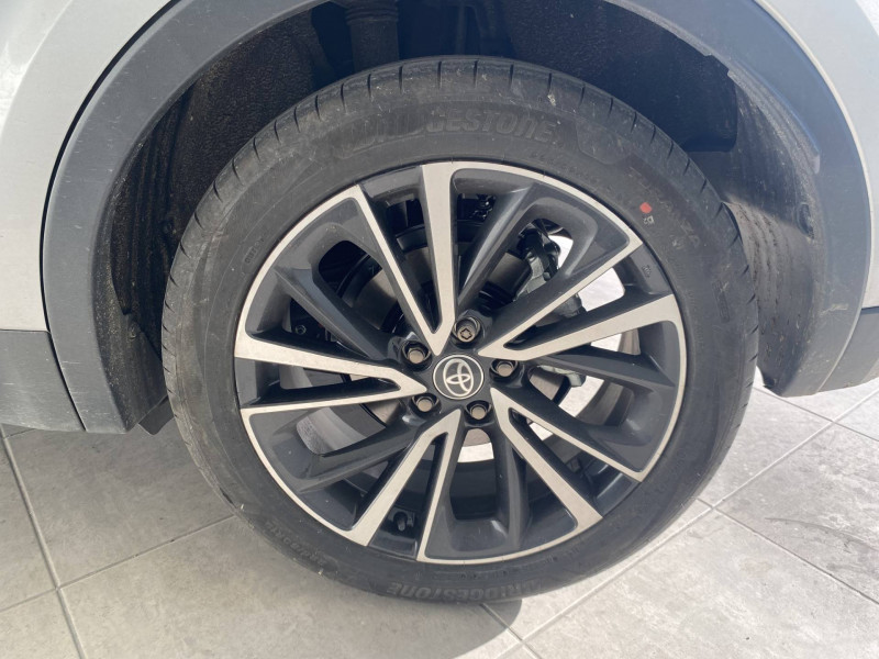 Activation automatique des feux de détresse AR (FHL) / Aide à la sortie sécurisée (SEA) Le système vous aide à prévenir les accidents en surveillant les autres usagers de la route qui s'approchent par l'arrière. Lorsqu'il détecte la présence d'un cycliste ou d'un véhicule, un indicateur lumineux s'affiche dans les rétroviseurs extérieurs et sur l'écran multi-informations et une alarme sonore alerte les occupants. / Alarme avec fonction antidémarrage / Assistant visuel de conduite (DMC) Ce système utilise une caméra située audessus du volant pour surveiller le niveau d'alerte et l'état du conducteur. Le système envoie un avertissement s'il détecte un état anormal, comme de la fatigue. Ces activités sont utilisées pour améliorer la performance du système d'arrêt d'urgence autonome (EDSS) à travers la détection précoce de la distraction. / Avertisseur d'angles morts (BSM) Lorsque les capteurs détectent un véhicule dans votre angle mort latéral, un indicateur lumineux s'éclaire sur le rétroviseur extérieur correspondant. Si vous mettez votre clignotant afin d'indiquer un changement de voie alors qu'un véhicule est dans votre angle mort, un indicateur lumineux apparaît dans le rétroviseur correspondant pour vous avertir du danger. / Avertisseur de circulation AR (RCTA) Cet avertisseur vous permet grâce aux capteurs d'angles morts de repérer un véhicule arrivant de côté quand vous sortez en marche AR d'une place de parking. S'il détecte un risque de collision, le système freine automatiquement et stoppe le véhicule. / Boîte automatique à variation continue / Câble de recharge Mode 2 (Type 2) 1,8 kW / 6 mètres (domestique) / Câble de recharge Mode 3 (Type 2) 22kW / 7,5 mètres (Wallbox) / Carrosserie bi-ton / Clé digitale / Coffre avec plancher surélevé / Compteur numérique personnalisable 12,3" / Contrôle de traction (TCS) / Eclairage d'ambiance intérieur personnalisable et interactif 64 couleurs sous l'écran et panneaux de porte) / Ecrous antivol / Electrostabilisateur programmé (ESP) / Essuie-glaces AV avec détecteur de pluie / Feux Full LED (AV/AR et antibrouillard) / Filet coffre / Jantes en alliage 19" bi-ton noir et aluminium / Kit de réparation anti-crevaison / Kit de sécurité / Montants B de portes noir laqué / Optiques AV LED avec signature lumineuse Premium / Ornements latéraux noirs laqués / Pare-brise chauffant (sous les essuie-glaces uniquement) / Poche aumonière au dos du siège passager AV / Poignées de portes affleurantes / Prise 230 V dans le coffre / Programme "Toyota Experience" / Purificateur d'air ionique Nanoe / Radars de stationnement AV et AR (PKSB) Lorsque vous roulez à basse vitesse ou en marche AR, les radars permettent de détecter des objets statiques (obstacles, murs...) ou en mouvement (véhicules traversant à l'AR), le système de freinage de l'aide au stationnement fournit alors une assistance pour réduire l'impact. / Rétroviseur intérieur électrochromatique / Rétroviseurs extérieurs avec éclairage au sol / Sacoche de rangement pour le câble de recharge / Sellerie Premium suédine et tissu avec surpiqûres bleues et blanches / Services connectés de contrôle à distance MyToyota (inclus 4 ans) / Services connectés standards MyToyota (inclus 10 ans) / Seuils de portes en aluminium / Siège conducteur à réglages électriques avec mémorisation / Siège conducteur avec support lombaire électrique / Siège passager réglable manuellement en hauteur / Sièges AV contours enveloppants / Système audio premium JBL 9 HP / Système d'appel d'urgence automatique "E-Call" / Système de rappel pour les sièges AR (RSRS) / Système d'ouverture/fermeture et démarrage sans clé "Smart Entry & Start" / Système multimédia Toyota Smart Connect Plus : Ecran couleur tactile 12,3" haute définition, Connectivité Bluetooth, USB et radio FM et DAB (digitale) , Système de connectivité smartphone Apple CarPlay et Android Auto (sans fil), Navigation satellitaire embarquée, Services intelligents dont navigation connectée avec infotrafic en temps réel, mises à jour cartographiques, Assistant vocal "Hey Toyota", recherche de points d'intérêts, zones de danger (fixes) / Toyota Safety Sense : Système de sécurité précollision avec détection des véhicules, piétons (jour/nuit) et cyclistes, actif également dans les intersections (PCS), Alerte de franchissement de ligne avec aide au maintien dans la file, assistant de trajectoire et détecteur de fatigue (LTA), Régulateur de vitesse adaptatif intelligent allant jusqu'à l'arrêt (ACC), Lecture des panneaux de signalisation avec limiteur de vitesse (RSA) et Gestion automatique des feux de route (AHB), Système d'arrêt d'urgence autonome (EDSS) / Vitrage feuilleté insonorisé / Volant chauffant / Volant gainé de matière synthétique