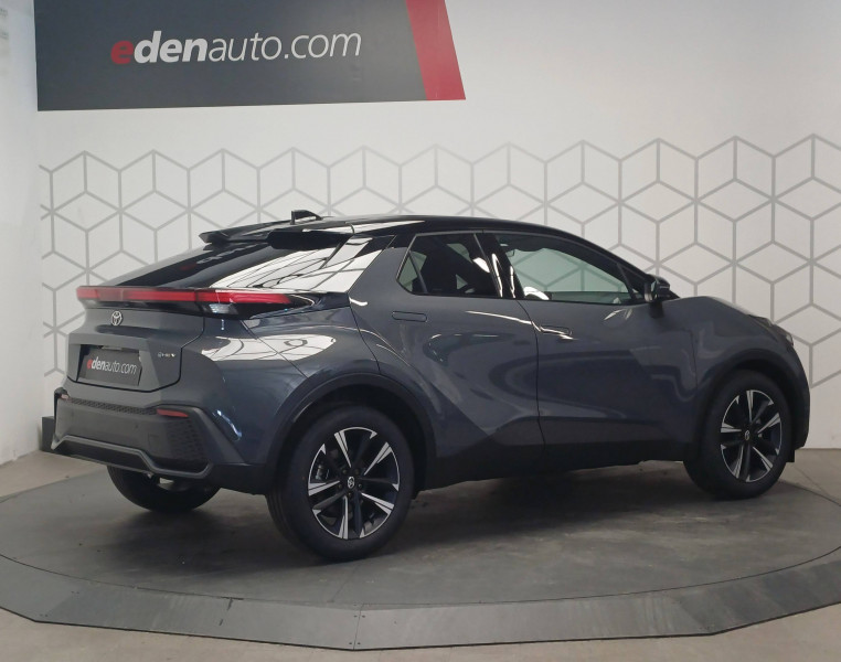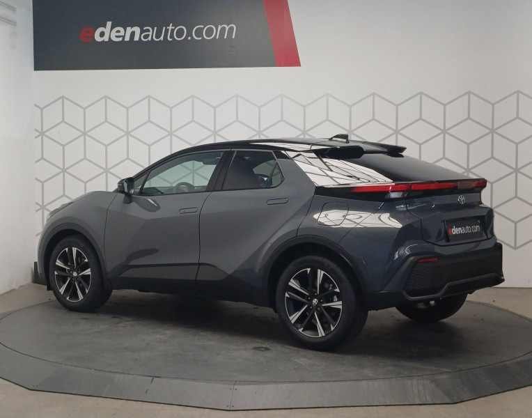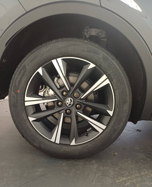 6 HP / Activation automatique des feux de détresse AR (FHL) / Aide à la sortie sécurisée (SEA) Le système vous aide à prévenir les accidents en surveillant les autres usagers de la route qui s'approchent par l'arrière. Lorsqu'il détecte la présence d'un cycliste ou d'un véhicule, un indicateur lumineux s'affiche dans les rétroviseurs extérieurs et sur l'écran multi-informations et une alarme sonore alerte les occupants. / Alarme avec fonction antidémarrage / Assistant visuel de conduite (DMC) Ce système utilise une caméra située audessus du volant pour surveiller le niveau d'alerte et l'état du conducteur. Le système envoie un avertissement s'il détecte un état anormal, comme de la fatigue. Ces activités sont utilisées pour améliorer la performance du système d'arrêt d'urgence autonome (EDSS) à travers la détection précoce de la distraction. / Avertisseur d'angles morts (BSM) Lorsque les capteurs détectent un véhicule dans votre angle mort latéral, un indicateur lumineux s'éclaire sur le rétroviseur extérieur correspondant. Si vous mettez votre clignotant afin d'indiquer un changement de voie alors qu'un véhicule est dans votre angle mort, un indicateur lumineux apparaît dans le rétroviseur correspondant pour vous avertir du danger. / Avertisseur de circulation AR (RCTA) Cet avertisseur vous permet grâce aux capteurs d'angles morts de repérer un véhicule arrivant de côté quand vous sortez en marche AR d'une place de parking. S'il détecte un risque de collision, le système freine automatiquement et stoppe le véhicule. / Boîte automatique à variation continue / Carrosserie bi-ton / Compteur numérique personnalisable 12,3" / Contrôle de traction (TCS) / Eclairage d'ambiance intérieur monochrome éclairage non personnalisable et non interactif : cave à pieds / rangement passager / Ecrous antivol / Electrostabilisateur programmé (ESP) / Essuie-glaces AV avec détecteur de pluie / Feux Full LED (AV/AR et antibrouillard) / Filet coffre / Jantes en alliage 18" bi-ton gris anthracite mat et aluminium / Kit de réparation anti-crevaison / Kit de sécurité / Montants B de portes noir laqué / Optiques AV full-LED / Pare-brise chauffant (sous les essuie-glaces uniquement) / Peinture non métallisée avec Toit Noir (Bi-ton) / Poignées de portes affleurantes / Radars de stationnement AV et AR (PKSB) Lorsque vous roulez à basse vitesse ou en marche AR, les radars permettent de détecter des objets statiques (obstacles, murs...) ou en mouvement (véhicules traversant à l'AR), le système de freinage de l'aide au stationnement fournit alors une assistance pour réduire l'impact. / Rétroviseur intérieur électrochromatique / Rétroviseurs extérieurs avec éclairage au sol / Sellerie tissu bi-ton gris anthracite avec surpiqûres blanches / Services connectés de contrôle à distance MyToyota (inclus 4 ans) / Services connectés standards MyToyota (inclus 10 ans) / Seuils de portes en aluminium / Siège conducteur avec support lombaire électrique / Siège passager réglable manuellement en hauteur / Système d'appel d'urgence automatique "E-Call" / Système de rappel pour les sièges AR (RSRS) / Système d'ouverture/fermeture et démarrage sans clé "Smart Entry & Start" / Système multimédia Toyota Smart Connect Plus : Ecran couleur tactile 12,3" haute définition, Connectivité Bluetooth, USB et radio FM et DAB (digitale) , Système de connectivité smartphone Apple CarPlay et Android Auto (sans fil), Navigation satellitaire embarquée, Services intelligents dont navigation connectée avec infotrafic en temps réel, mises à jour cartographiques, Assistant vocal "Hey Toyota", recherche de points d'intérêts, zones de danger (fixes) / Toyota Safety Sense : Système de sécurité précollision avec détection des véhicules, piétons (jour/nuit) et cyclistes, actif également dans les intersections (PCS), Alerte de franchissement de ligne avec aide au maintien dans la file, assistant de trajectoire et détecteur de fatigue (LTA), Régulateur de vitesse adaptatif intelligent allant jusqu'à l'arrêt (ACC), Lecture des panneaux de signalisation avec limiteur de vitesse (RSA) et Gestion automatique des feux de route (AHB), Système d'arrêt d'urgence autonome (EDSS) / Volant chauffant / Volant gainé de matière synthétique