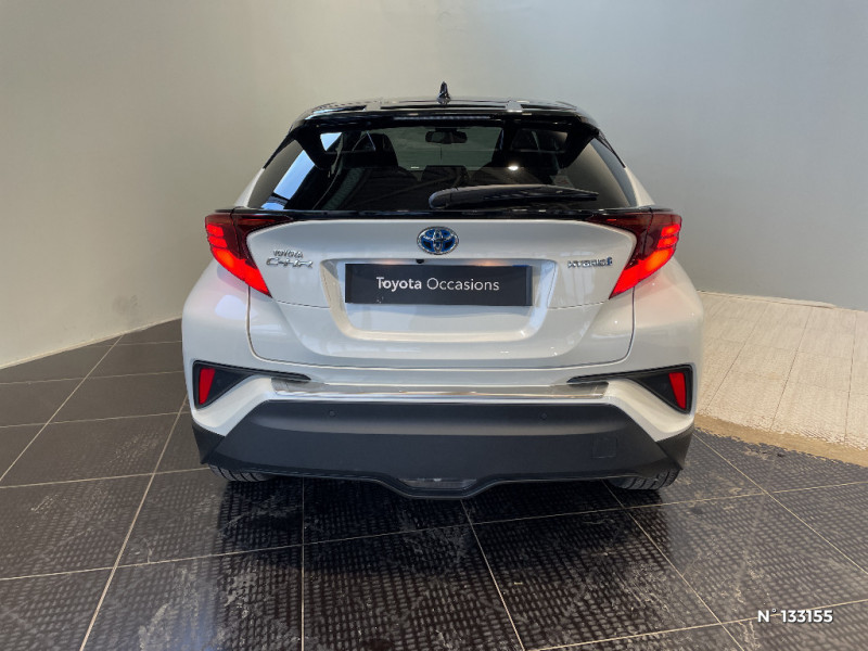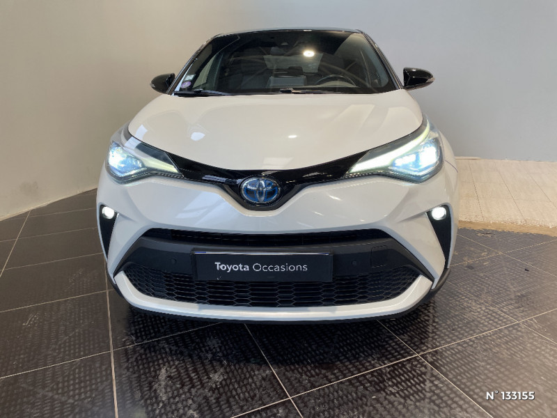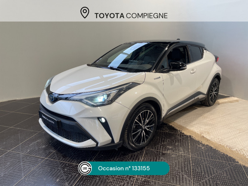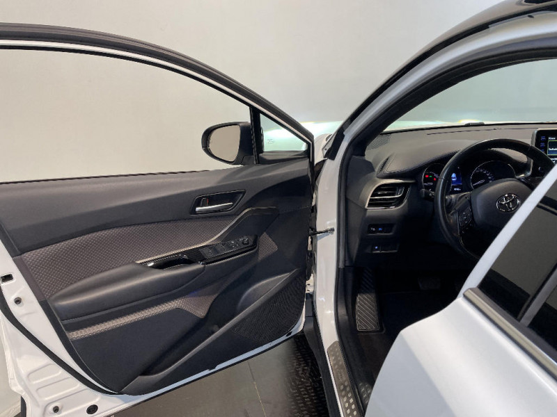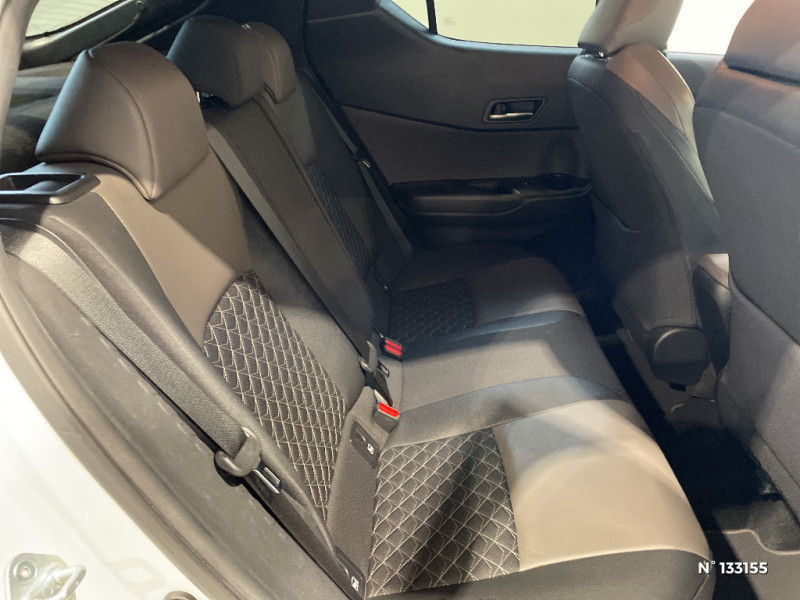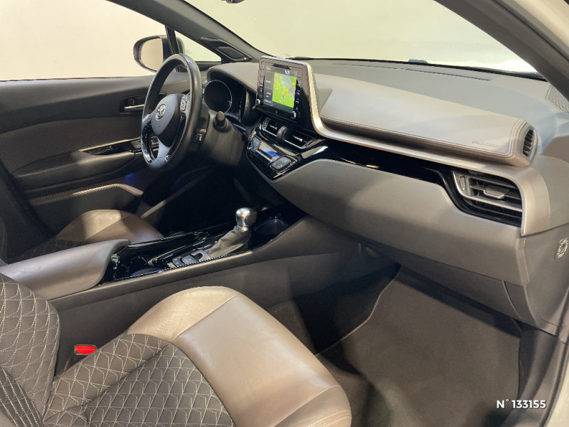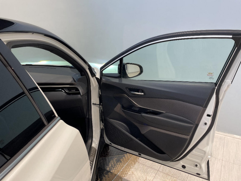 Kit de sécurité / Lignes de vitres chromées / Montant central (pilier B) noir laqué / Optiques AR LED avec clignotants séquentiels / 6 HP / 7 Airbags (frontaux et latéraux pour conducteur et passager AV, rideaux AV et AR et protège-genoux conducteur) / Seuils des portes aluminium / Accoudoir central avec compartiment de rangement / Ajustement manuel de la hauteur des phares / Antenne de toit type requin / Avertisseur d'angles morts (BSM) / Avertisseur de circulation AR+freinage / Becquet AV couleur carrosserie / Calculateur de temps de conduite en électrique / Carrosserie bi-ton avec toit noir / Carrosserie bi-ton toit noir / Ciel de pavillon noir / Console centrale noir laqué / Contre-portes avec inserts noirs laqués / Coques de rétroviseurs extérieurs noires / Déconnection de l'airbag passager / Eclairage d'accueil / Ecran couleur tactile multifonction 8" / Ecrous antivol / Essuie-glaces AV avec détecteur de pluie / Fermeture centralisée avec commande à distance / Feu de recul central à LED sur bouclier AR / Filet coffre / Follow me home (feux AV à extinction différée) / Optiques AV et feurx de jour AR à LED / Optiques AV LED avec signature lumineuse Premium / Ordinateur de bord avec écran TFT couleur 4.2" multifonctions / Ornementation de console centrale et de portières gris lune / Pare-chocs AV couleur caisse / Pare-chocs couleur caisse / Peinture bi-ton Blanc Nacré/Toit Noir / Peinture bi-ton Bleu Nebula/Toit Noir / Peinture bi-ton Gris Atlas/Toit Noir / Peinture bi-ton Gris Célestine/Toit Noir / Peinture bi-ton Gris Platinium/Toit Noir / Peinture bi-ton Rouge Intense/Toit Noir / Poches aumonières au dos des sièges AV / Poignées de portes et rétroviseurs extérieurs couleur carrosserie / Poignées de portes extérieures couleur carroserie / Prises auxiliaire et USB / Projecteurs AV et clignotants et feux halogènes / Purificateur d'air ionique Nanoe / Rétroviseur intérieur électrochromatique / Rétroviseurs extérieurs avec projection au sol du logo Toyota C-HR / Rétroviseurs extérieurs avec projection du logo au sol / Rétroviseurs extérieurs électriques, dégivrants et rabattables électriquement avec rappel de clignotants / Revêtement supérieur de planche de bord et d´accoudoir central brun sombre / Sellerie mi-cuir chocolat et noir avec surpiqûres façon diamant / Siège conducteur manuel avec réglage lombaire électrique / Siège passager réglable manuellement en hauteur / Sièges AV type sport avec maintiens latéraux / Système audio Toyota Touch avec radio DAB, intégration smartphone + DCM / Système d'accès (conducteur, passager et coffre) et de démarrage sans clé "Smart Entry & Start" / Système d'appel d'urgence automatique "E-Call" / Système de connectivité smartphone Apple CarPlay / Android Auto / Système de contrôle de stabilité (VSC) + Système de contrôle de motricité (TRC) / Système de freinage antiblocage ABS / Système de freinage antiblocage (ABS), BA et EBD / Système de téléphonie Bluetooth / Tapis de sol en velours AV/AR / Toyota Safety Sense Système de sécurité précollision avec détection des piétons, Alerte de franchissement de ligne et détecteur de fatigue, gestion automatique des feux de route, lecture des panneaux de signalisation, régulateur de vitesse adaptatif. / Vitres électriques AV et AR avec descente et remontée à impulsion / Frein de statlionnement électrique / Garnissage de portières brun / Immobiliseur avec avertisseur sonore / Indicateur de sous-gonflage des pneus / Kit de réparation anti-crevaison