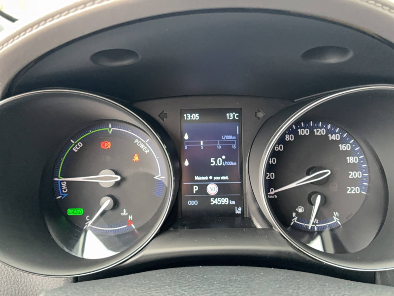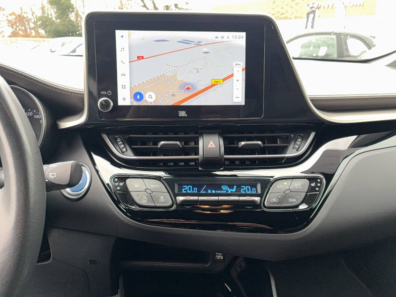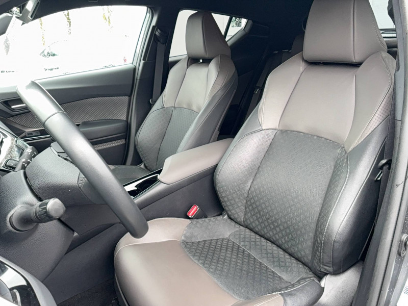 6 HP / 7 Airbags (frontaux, lateraux, rideaux et un protège-genoux conducteur) / Accoudoir central avec compartiment de rangement / Ajustement manuel de la hauteur des phares / Alarme avec fonction antidémarrage / Antenne de toit type requin / Avertisseurs d'angles morts et de circulation AR avec freinage d'urgence auto / Becquet AV couleur carrosserie / Calculateur de temps de conduite en électrique / Carrosserie bi-ton avec toit noir / Ciel de pavillon noir / Combiné d'instrumentation avec écran couleur TFT multifonction 4" / Coques de rétroviseurs extérieurs noires / Eclairage d'accueil / Ecrous antivol / Fermeture centralisée avec commande à distance / Feu de recul central à LED sur bouclier AR / Feux AR à LED avec clignotants séquentiels / Filet coffre / Frein de stationnement électrique / Garnissage de portières brun / Indicateur de sous-gonflage des pneus / Kit de réparation anti-crevaison / Kit de sécurité / Lignes de vitres chromées / Montant central (pilier B) noir laqué / Optiques AV LED avec signature lumineuse Premium / Ornements de console centrale et de portières Gris Lune / Poches aumonières au dos des sièges AV / Poignées de portes et pare-chocs AV couleur carrosserie / Purificateur d'air ionique Nanoe / Rétroviseur intérieur électrochromatique / Rétroviseurs extérieurs avec projection au sol du logo Toyota C-HR / Rétroviseurs extérieurs électriques et dégivrants avec rappels de clignotants / Revêtement supérieur de planche de bord et d´accoudoir central brun sombre / Sellerie mi-cuir chocolat et noir avec surpiqûres façon diamant / Siège conducteur à réglage lombaire électrique / Siège passager AV ajustable manuellement en hauteur / Sièges AV type sport avec maintiens latéraux / Système d'accès (conducteur, passager et coffre) et de démarrage sans clé "Smart Entry & Start" / Système d'appel d'urgence automatique "E-Call" / Système de connectivité smartphone Apple CarPlay / Android Auto / Système de contrôle de motricité (TRC) / Système de contrôle de trajectoire (VSC) / Système de freinage antiblocage (ABS), BA et EBD / Système multimédia Toyota Touch avec radio DAB, écran couleur tactile 8'', bluetooth, USB / Tapis de sol en velours AV/AR / Toyota Safety Sense Système de sécurité précollision avec détection des piétons, Alerte de franchissement de ligne et détecteur de fatigue, gestion automatique des feux de route, lecture des panneaux de signalisation, régulateur de vitesse adaptatif.