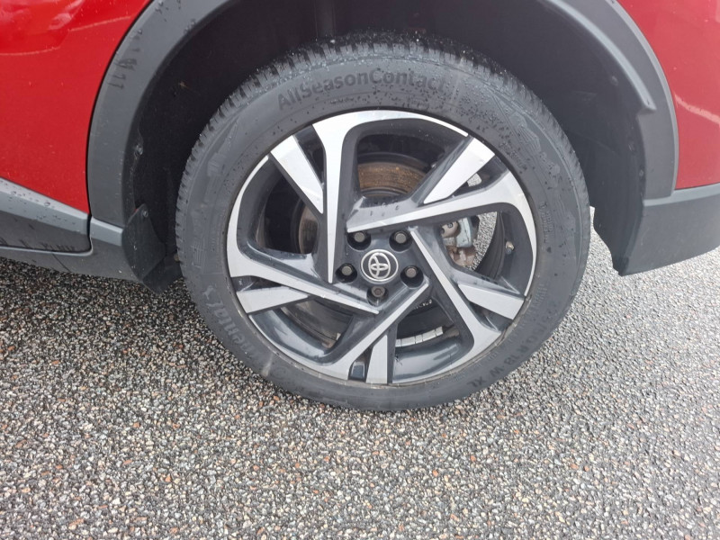 6 HP / 7 Airbags (frontaux, lateraux, rideaux et un protège-genoux conducteur) / Accoudoir central avec compartiment de rangement / Ajustement manuel de la hauteur des phares / Alarme avec fonction antidémarrage / Antenne de toit type requin / Becquet AV couleur carrosserie / Calculateur de temps de conduite en électrique / Ciel de pavillon noir / Combiné d'instrumentation avec écran couleur TFT multifonction 4" / Coques de rétroviseur couleur carrosserie / Eclairage d'accueil / Ecrous antivol / Fermeture centralisée avec commande à distance / Filet coffre / Frein de stationnement électrique / Indicateur de sous-gonflage des pneus / Kit de réparation anti-crevaison / Kit de sécurité / Lignes de vitres chromées / Montant central (pilier B) noir laqué / Optiques AV et AR à LED / Ornements de portière Bronze / Poches aumonières au dos des sièges AV / Poignées de portes et pare-chocs AV couleur carrosserie / Projecteurs AV et clignotants et feux halogènes / Rétroviseur intérieur électrochromatique / Rétroviseurs extérieurs électriques et dégivrants avec rappels de clignotants / Sellerie en tissu gris sombre avec surpiqûres bleues et embossage façon diamant / Seuils de portes en aluminium / Siège passager AV ajustable manuellement en hauteur / Sièges AV type sport avec maintiens latéraux / Système AVAS (Acoustic Vehicle Alerting System) / Système d'accès (conducteur, passager et coffre) et de démarrage sans clé "Smart Entry & Start" / Système d'appel d'urgence automatique "E-Call" / Système de connectivité smartphone Apple CarPlay / Android Auto / Système de contrôle de motricité (TRC) / Système de contrôle de trajectoire (VSC) / Système de freinage antiblocage (ABS), BA et EBD / Système multimédia Toyota Touch avec radio DAB, écran couleur tactile 8'', bluetooth, USB / Tapis de sol en velours AV/AR / Toyota Safety Sense Système de sécurité précollision avec détection des piétons, Alerte de franchissement de ligne et détecteur de fatigue, gestion automatique des feux de route, lecture des panneaux de signalisation, régulateur de vitesse adaptatif. / Toyota Smart Connect