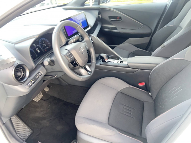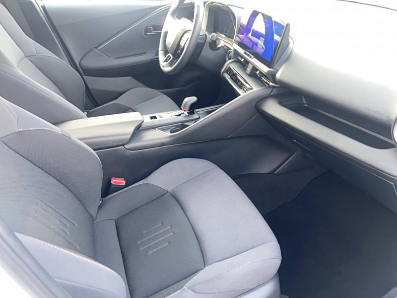 6 HP / Activation automatique des feux de détresse AR (FHL) / Aide à la sortie sécurisée (SEA) Le système vous aide à prévenir les accidents en surveillant les autres usagers de la route qui s'approchent par l'arrière. Lorsqu'il détecte la présence d'un cycliste ou d'un véhicule, un indicateur lumineux s'affiche dans les rétroviseurs extérieurs et sur l'écran multi-informations et une alarme sonore alerte les occupants. / Alarme avec fonction antidémarrage / Avertisseur d'angles morts (BSM) Lorsque les capteurs détectent un véhicule dans votre angle mort latéral, un indicateur lumineux s'éclaire sur le rétroviseur extérieur correspondant. Si vous mettez votre clignotant afin d'indiquer un changement de voie alors qu'un véhicule est dans votre angle mort, un indicateur lumineux apparaît dans le rétroviseur correspondant pour vous avertir du danger. / Avertisseur de circulation AR (RCTA) Cet avertisseur vous permet grâce aux capteurs d'angles morts de repérer un véhicule arrivant de côté quand vous sortez en marche AR d'une place de parking. S'il détecte un risque de collision, le système freine automatiquement et stoppe le véhicule. / Carrosserie monoton / Compteur numérique personnalisable 12,3" / Eclairage d'ambiance intérieur monochrome éclairage non personnalisable et non interactif : cave à pieds / rangement passager / Ecrous antivol / Essuie-glaces AV avec détecteur de pluie / Filet coffre / Jantes en alliage 18" bi-ton noir et aluminium / Kit de réparation anti-crevaison / Kit de sécurité / Montants B de portes noir laqué / Optiques AV full-LED / Pare-brise chauffant (sous les essuie-glaces uniquement) / Poignées de portes affleurantes / Radars de stationnement AV et AR (PKSB) Lorsque vous roulez à basse vitesse ou en marche AR, les radars permettent de détecter des objets statiques (obstacles, murs...) ou en mouvement (véhicules traversant à l'AR), le système de freinage de l'aide au stationnement fournit alors une assistance pour réduire l'impact. / Rétroviseur intérieur électrochromatique / Rétroviseurs extérieurs avec éclairage au sol / Sellerie tissu gris foncé avec surpiqûres cuivre / Services connectés de contrôle à distance MyToyota (inclus 4 ans) / Services connectés standards MyToyota (inclus 10 ans) / Seuils de portes en aluminium / Siège conducteur avec support lombaire électrique / Siège passager réglable manuellement en hauteur / Système d'appel d'urgence automatique "E-Call" / Système de rappel pour les sièges AR (RSRS) / Système d'ouverture/fermeture et démarrage sans clé "Smart Entry & Start" / Système multimédia Toyota Smart Connect : Ecran couleur tactile 8" haute définition,Connectivité Bluetooth, USB et radio FM et DAB (digitale) Connectivité smartphone Apple CarPlay et Android Auto (sans fil), Navigation connectée avec infotrafic en temps réel et Smart Parking (aide à la recherche de stationnement), Reconnaissance vocale avancée "Hey Toyota", 4 ans de mises à jour cartographiques et services connectés inclus / Toyota Safety Sense : Système de sécurité précollision avec détection des véhicules, piétons (jour/nuit) et cyclistes, actif également dans les intersections (PCS), Alerte de franchissement de ligne avec aide au maintien dans la file, assistant de trajectoire et détecteur de fatigue (LTA), Régulateur de vitesse adaptatif intelligent allant jusqu'à l'arrêt (ACC), Lecture des panneaux de signalisation avec limiteur de vitesse (RSA) et Gestion automatique des feux de route (AHB), Système d'arrêt d'urgence autonome (EDSS) / Volant chauffant / Volant en cuir synthétique
