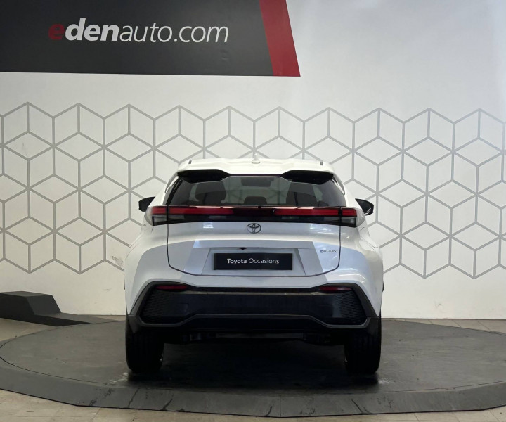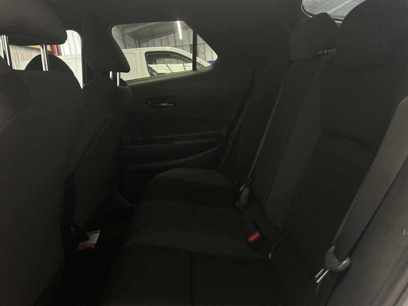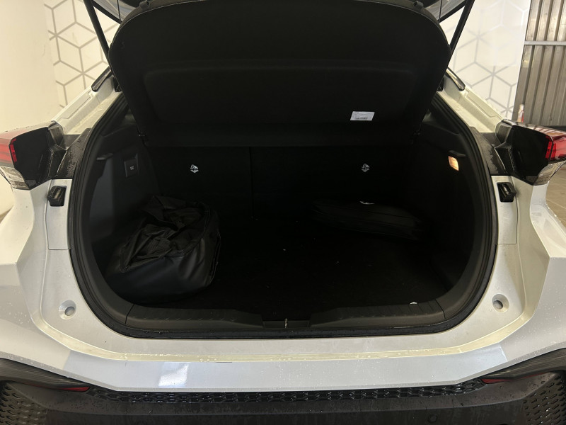 6 HP / Activation automatique des feux de détresse AR (FHL) / Aide à la sortie sécurisée (SEA) Le système vous aide à prévenir les accidents en surveillant les autres usagers de la route qui s'approchent par l'arrière. Lorsqu'il détecte la présence d'un cycliste ou d'un véhicule, un indicateur lumineux s'affiche dans les rétroviseurs extérieurs et sur l'écran multi-informations et une alarme sonore alerte les occupants. / Alarme avec fonction antidémarrage / Avertisseur d'angles morts (BSM) Lorsque les capteurs détectent un véhicule dans votre angle mort latéral, un indicateur lumineux s'éclaire sur le rétroviseur extérieur correspondant. Si vous mettez votre clignotant afin d'indiquer un changement de voie alors qu'un véhicule est dans votre angle mort, un indicateur lumineux apparaît dans le rétroviseur correspondant pour vous avertir du danger. / Avertisseur de circulation AR (RCTA) Cet avertisseur vous permet grâce aux capteurs d'angles morts de repérer un véhicule arrivant de côté quand vous sortez en marche AR d'une place de parking. S'il détecte un risque de collision, le système freine automatiquement et stoppe le véhicule. / Câble de recharge Mode 2 (Type 2) 1,8 kW / 6 mètres (domestique) / Câble de recharge Mode 3 (Type 2) 22kW / 7,5 mètres (Wallbox) / Carrosserie monoton / Coffre avec plancher surélevé / Compteur numérique personnalisable 12,3" / Eclairage d'ambiance intérieur monochrome éclairage non personnalisable et non interactif : cave à pieds / rangement passager / Ecrous antivol / Essuie-glaces AV avec détecteur de pluie / Filet coffre / Jantes en alliage 18" bi-ton noir et aluminium / Kit de réparation anti-crevaison / Kit de sécurité / Montants B de portes noir laqué / Optiques AV full-LED / Pare-brise chauffant (sous les essuie-glaces uniquement) / Poignées de portes affleurantes / Prise 230 V dans le coffre / Programme "Toyota Experience" / Radars de stationnement AV et AR (PKSB) Lorsque vous roulez à basse vitesse ou en marche AR, les radars permettent de détecter des objets statiques (obstacles, murs...) ou en mouvement (véhicules traversant à l'AR), le système de freinage de l'aide au stationnement fournit alors une assistance pour réduire l'impact. / Rétroviseur intérieur électrochromatique / Rétroviseurs extérieurs avec éclairage au sol / Sacoche de rangement pour le câble de recharge / Sellerie tissu gris foncé avec surpiqûres cuivre / Services connectés de contrôle à distance MyToyota (inclus 4 ans) / Services connectés standards MyToyota (inclus 10 ans) / Seuils de portes en aluminium / Siège conducteur avec support lombaire électrique / Siège passager réglable manuellement en hauteur / Système d'appel d'urgence automatique "E-Call" / Système de rappel pour les sièges AR (RSRS) / Système d'ouverture/fermeture et démarrage sans clé "Smart Entry & Start" / Système multimédia Toyota Smart Connect : Écran couleur tactile 8 haute définition, Connectivité Bluetooth, USB et radio, FM et DAB (digitale), Système de connectivité smartphone Apple CarPlay et Android Auto (sans fil), Services intelligents dont navigation connectée avec infotrafic en temps réel, mises à jour cartographiques, assitant vocal Hey Toyota et recherche de points d'intérêts (inclus 4 ans) / Toyota Safety Sense : Système de sécurité précollision avec détection des véhicules, piétons (jour/nuit) et cyclistes, actif également dans les intersections (PCS), Alerte de franchissement de ligne avec aide au maintien dans la file, assistant de trajectoire et détecteur de fatigue (LTA), Régulateur de vitesse adaptatif intelligent allant jusqu'à l'arrêt (ACC), Lecture des panneaux de signalisation avec limiteur de vitesse (RSA) et Gestion automatique des feux de route (AHB), Système d'arrêt d'urgence autonome (EDSS) / Vitrage feuilleté insonorisé / Volant chauffant / Volant gainé de matière synthétique