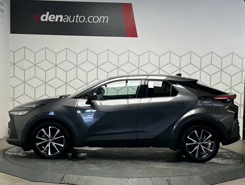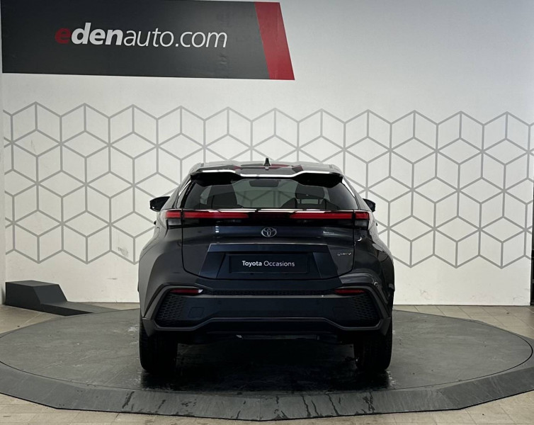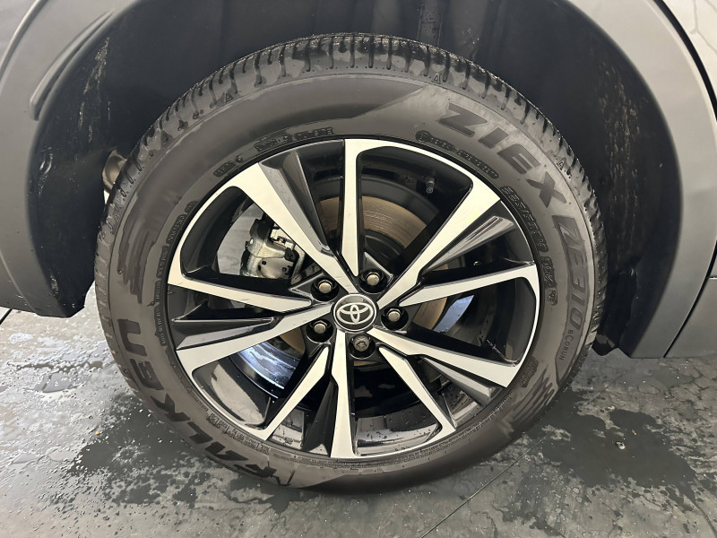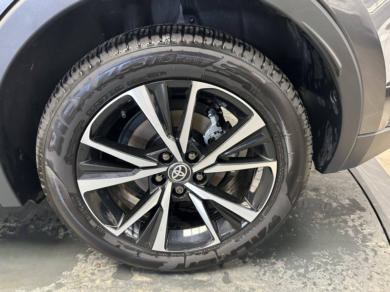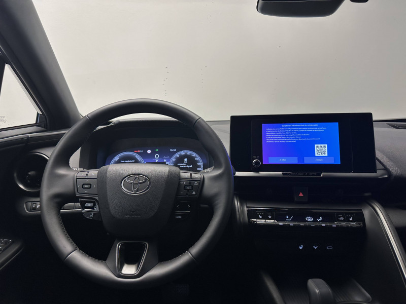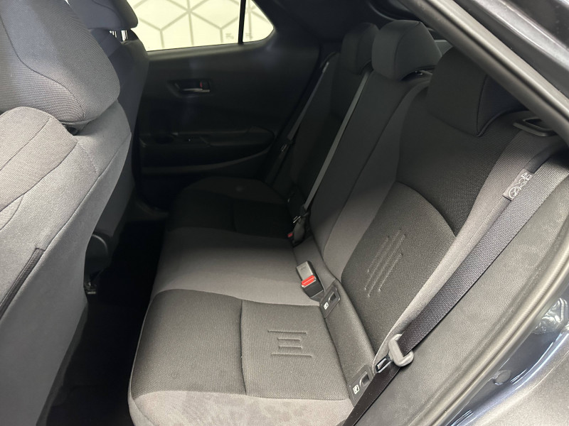 6 HP / Activation automatique des feux de détresse AR (FHL) / Aide à la sortie sécurisée (SEA) Le système vous aide à prévenir les accidents en surveillant les autres usagers de la route qui s'approchent par l'arrière. Lorsqu'il détecte la présence d'un cycliste ou d'un véhicule, un indicateur lumineux s'affiche dans les rétroviseurs extérieurs et sur l'écran multi-informations et une alarme sonore alerte les occupants. / Alarme avec fonction antidémarrage / Avertisseur d'angles morts (BSM) Lorsque les capteurs détectent un véhicule dans votre angle mort latéral, un indicateur lumineux s'éclaire sur le rétroviseur extérieur correspondant. Si vous mettez votre clignotant afin d'indiquer un changement de voie alors qu'un véhicule est dans votre angle mort, un indicateur lumineux apparaît dans le rétroviseur correspondant pour vous avertir du danger. / Avertisseur de circulation AR (RCTA) Cet avertisseur vous permet grâce aux capteurs d'angles morts de repérer un véhicule arrivant de côté quand vous sortez en marche AR d'une place de parking. S'il détecte un risque de collision, le système freine automatiquement et stoppe le véhicule. / Carrosserie monoton / Compteur numérique personnalisable 12,3" / Eclairage d'ambiance intérieur monochrome éclairage non personnalisable et non interactif : cave à pieds / rangement passager / Ecrous antivol / Essuie-glaces AV avec détecteur de pluie / Filet coffre / Jantes en alliage 18" bi-ton noir et aluminium / Kit de réparation anti-crevaison / Kit de sécurité / Montants B de portes noir laqué / Optiques AV full-LED / Pare-brise chauffant (sous les essuie-glaces uniquement) / Poignées de portes affleurantes / Radars de stationnement AV et AR (PKSB) Lorsque vous roulez à basse vitesse ou en marche AR, les radars permettent de détecter des objets statiques (obstacles, murs...) ou en mouvement (véhicules traversant à l'AR), le système de freinage de l'aide au stationnement fournit alors une assistance pour réduire l'impact. / Rétroviseur intérieur électrochromatique / Rétroviseurs extérieurs avec éclairage au sol / Sellerie tissu gris foncé avec surpiqûres cuivre / Services connectés de contrôle à distance MyToyota (inclus 4 ans) / Services connectés standards MyToyota (inclus 10 ans) / Seuils de portes en aluminium / Siège conducteur avec support lombaire électrique / Siège passager réglable manuellement en hauteur / Système d'appel d'urgence automatique "E-Call" / Système de rappel pour les sièges AR (RSRS) / Système d'ouverture/fermeture et démarrage sans clé "Smart Entry & Start" / Système multimédia Toyota Smart Connect : Ecran couleur tactile 8" haute définition,Connectivité Bluetooth, USB et radio FM et DAB (digitale) Connectivité smartphone Apple CarPlay et Android Auto (sans fil), Navigation connectée avec infotrafic en temps réel et Smart Parking (aide à la recherche de stationnement), Reconnaissance vocale avancée "Hey Toyota", 4 ans de mises à jour cartographiques et services connectés inclus / Toyota Safety Sense : Système de sécurité précollision avec détection des véhicules, piétons (jour/nuit) et cyclistes, actif également dans les intersections (PCS), Alerte de franchissement de ligne avec aide au maintien dans la file, assistant de trajectoire et détecteur de fatigue (LTA), Régulateur de vitesse adaptatif intelligent allant jusqu'à l'arrêt (ACC), Lecture des panneaux de signalisation avec limiteur de vitesse (RSA) et Gestion automatique des feux de route (AHB), Système d'arrêt d'urgence autonome (EDSS) / Volant chauffant / Volant en cuir synthétique