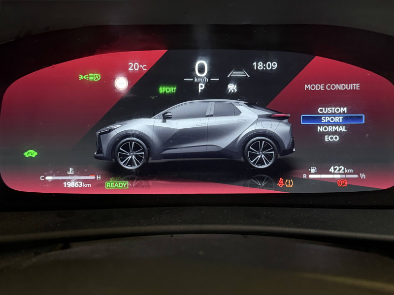 6 HP / Activation automatique des feux de détresse AR (FHL) / Aide à la sortie sécurisée (SEA) Le système vous aide à prévenir les accidents en surveillant les autres usagers de la route qui s'approchent par l'arrière. Lorsqu'il détecte la présence d'un cycliste ou d'un véhicule, un indicateur lumineux s'affiche dans les rétroviseurs extérieurs et sur l'écran multi-informations et une alarme sonore alerte les occupants. / Alarme avec fonction antidémarrage / Avertisseur d'angles morts (BSM) Lorsque les capteurs détectent un véhicule dans votre angle mort latéral, un indicateur lumineux s'éclaire sur le rétroviseur extérieur correspondant. Si vous mettez votre clignotant afin d'indiquer un changement de voie alors qu'un véhicule est dans votre angle mort, un indicateur lumineux apparaît dans le rétroviseur correspondant pour vous avertir du danger. / Avertisseur de circulation AR (RCTA) Cet avertisseur vous permet grâce aux capteurs d'angles morts de repérer un véhicule arrivant de côté quand vous sortez en marche AR d'une place de parking. S'il détecte un risque de collision, le système freine automatiquement et stoppe le véhicule. / Carrosserie monoton / Compteur numérique personnalisable 12,3" / Eclairage d'ambiance intérieur monochrome éclairage non personnalisable et non interactif : cave à pieds / rangement passager / Ecrous antivol / Essuie-glaces AV avec détecteur de pluie / Filet coffre / Jantes en alliage 18" bi-ton noir et aluminium / Kit de réparation anti-crevaison / Kit de sécurité / Montants B de portes noir laqué / Optiques AV full-LED / Pare-brise chauffant (sous les essuie-glaces uniquement) / Poignées de portes affleurantes / Radars de stationnement AV et AR (PKSB) Lorsque vous roulez à basse vitesse ou en marche AR, les radars permettent de détecter des objets statiques (obstacles, murs...) ou en mouvement (véhicules traversant à l'AR), le système de freinage de l'aide au stationnement fournit alors une assistance pour réduire l'impact. / Rétroviseur intérieur électrochromatique / Rétroviseurs extérieurs avec éclairage au sol / Sellerie tissu gris foncé avec surpiqûres cuivre / Services connectés de contrôle à distance MyToyota (inclus 4 ans) / Services connectés standards MyToyota (inclus 10 ans) / Seuils de portes en aluminium / Siège conducteur avec support lombaire électrique / Siège passager réglable manuellement en hauteur / Système d'appel d'urgence automatique "E-Call" / Système de rappel pour les sièges AR (RSRS) / Système d'ouverture/fermeture et démarrage sans clé "Smart Entry & Start" / Système multimédia Toyota Smart Connect : Ecran couleur tactile 8" haute définition,Connectivité Bluetooth, USB et radio FM et DAB (digitale) Connectivité smartphone Apple CarPlay et Android Auto (sans fil), Navigation connectée avec infotrafic en temps réel et Smart Parking (aide à la recherche de stationnement), Reconnaissance vocale avancée "Hey Toyota", 4 ans de mises à jour cartographiques et services connectés inclus / Toyota Safety Sense : Système de sécurité précollision avec détection des véhicules, piétons (jour/nuit) et cyclistes, actif également dans les intersections (PCS), Alerte de franchissement de ligne avec aide au maintien dans la file, assistant de trajectoire et détecteur de fatigue (LTA), Régulateur de vitesse adaptatif intelligent allant jusqu'à l'arrêt (ACC), Lecture des panneaux de signalisation avec limiteur de vitesse (RSA) et Gestion automatique des feux de route (AHB), Système d'arrêt d'urgence autonome (EDSS) / Volant chauffant / Volant en cuir synthétique