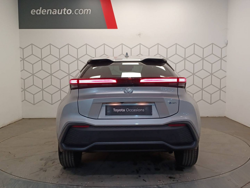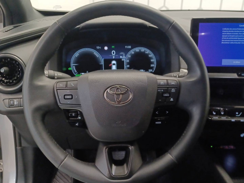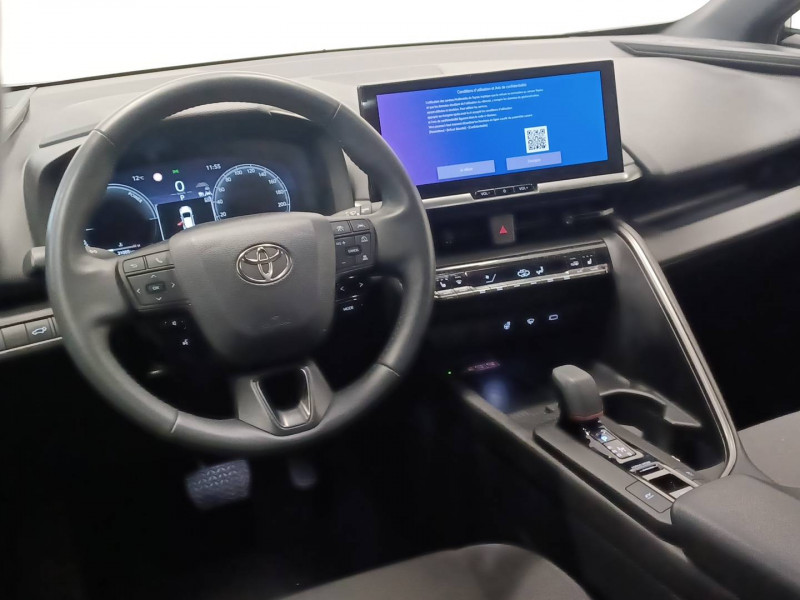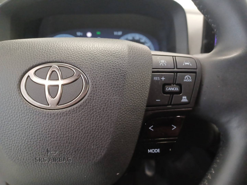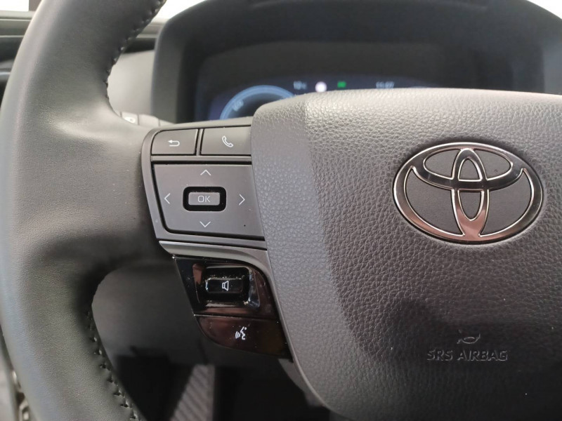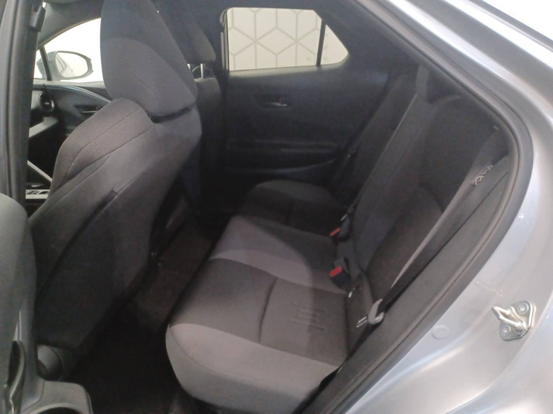 6 HP / Activation automatique des feux de détresse AR (FHL) / Aide à la sortie sécurisée (SEA) Le système vous aide à prévenir les accidents en surveillant les autres usagers de la route qui s'approchent par l'arrière. Lorsqu'il détecte la présence d'un cycliste ou d'un véhicule, un indicateur lumineux s'affiche dans les rétroviseurs extérieurs et sur l'écran multi-informations et une alarme sonore alerte les occupants. / Alarme avec fonction antidémarrage / Avertisseur d'angles morts (BSM) Lorsque les capteurs détectent un véhicule dans votre angle mort latéral, un indicateur lumineux s'éclaire sur le rétroviseur extérieur correspondant. Si vous mettez votre clignotant afin d'indiquer un changement de voie alors qu'un véhicule est dans votre angle mort, un indicateur lumineux apparaît dans le rétroviseur correspondant pour vous avertir du danger. / Avertisseur de circulation AR (RCTA) Cet avertisseur vous permet grâce aux capteurs d'angles morts de repérer un véhicule arrivant de côté quand vous sortez en marche AR d'une place de parking. S'il détecte un risque de collision, le système freine automatiquement et stoppe le véhicule. / Caméra de recul avec lave-caméra / Carrosserie monoton / Compteur numérique personnalisable 12,3" / Eclairage d'ambiance intérieur / Ecrous antivol / Essuie-glaces AV avec détecteur de pluie / Filet coffre / Jantes en alliage 18" bi-ton noir et aluminium / Kit de réparation anti-crevaison / Kit de sécurité / Optiques AV full-LED / Pare-brise chauffant (sous les essuie-glaces uniquement) / Poignées de portes affleurantes / Radars de stationnement AV et AR (PKSB) Lorsque vous roulez à basse vitesse ou en marche AR, les radars permettent de détecter des objets statiques (obstacles, murs...) ou en mouvement (véhicules traversant à l'AR), le système de freinage de l'aide au stationnement fournit alors une assistance pour réduire l'impact. / Rétroviseur intérieur électrochromatique / Rétroviseurs extérieurs avec éclairage au sol / Sellerie tissu gris foncé avec surpiqûres cuivre / Services connectés de contrôle à distance MyToyota (inclus 4 ans) / Services connectés standards MyToyota (inclus 10 ans) / Seuils de portes en aluminium / Siège conducteur avec support lombaire électrique / Siège passager réglable manuellement en hauteur / Système d'appel d'urgence automatique "E-Call" / Système de rappel pour les sièges AR (RSRS) / Système d'ouverture/fermeture et démarrage sans clé "Smart Entry & Start" / Système multimédia Toyota Smart Connect : Ecran couleur tactile 8" haute définition,Connectivité Bluetooth, USB et radio FM et DAB (digitale) Connectivité smartphone Apple CarPlay et Android Auto (sans fil), Navigation connectée avec infotrafic en temps réel et Smart Parking (aide à la recherche de stationnement), Reconnaissance vocale avancée "Hey Toyota", 4 ans de mises à jour cartographiques et services connectés inclus / Toyota Safety Sense : Système de sécurité précollision avec détection des véhicules, piétons (jour/nuit) et cyclistes, actif également dans les intersections (PCS), Alerte de franchissement de ligne avec aide au maintien dans la file, assistant de trajectoire et détecteur de fatigue (LTA), Régulateur de vitesse adaptatif intelligent allant jusqu'à l'arrêt (ACC), Lecture des panneaux de signalisation avec limiteur de vitesse (RSA) et Gestion automatique des feux de route (AHB), Système d'arrêt d'urgence autonome (EDSS) / Volant chauffant / Volant en cuir synthétique