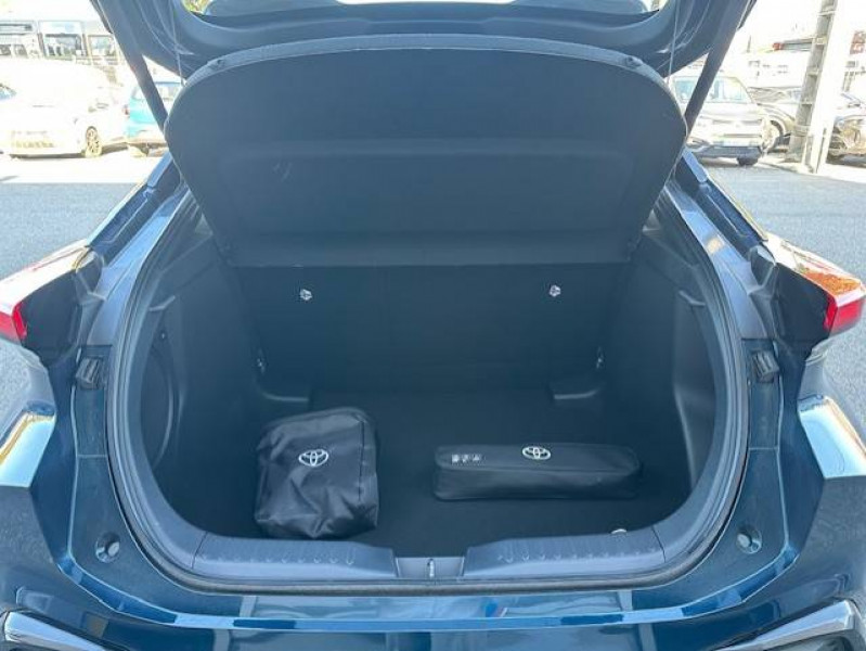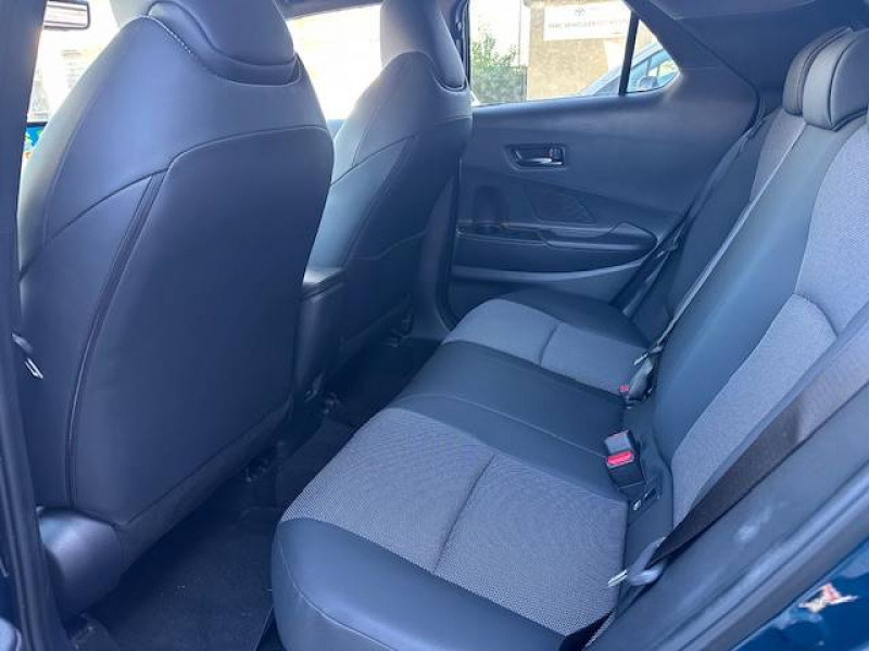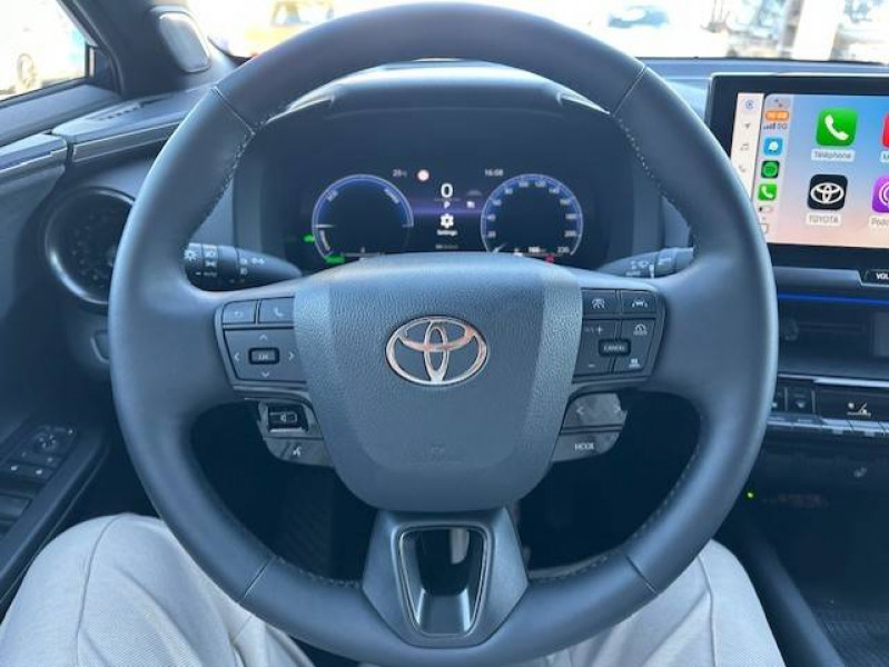 Activation automatique des feux de détresse AR (FHL) / Aide à la sortie sécurisée (SEA) Le système vous aide à prévenir les accidents en surveillant les autres usagers de la route qui s'approchent par l'arrière. Lorsqu'il détecte la présence d'un cycliste ou d'un véhicule, un indicateur lumineux s'affiche dans les rétroviseurs extérieurs et sur l'écran multi-informations et une alarme sonore alerte les occupants. / Alarme avec fonction antidémarrage / Avertisseur d'angles morts (BSM) Lorsque les capteurs détectent un véhicule dans votre angle mort latéral, un indicateur lumineux s'éclaire sur le rétroviseur extérieur correspondant. Si vous mettez votre clignotant afin d'indiquer un changement de voie alors qu'un véhicule est dans votre angle mort, un indicateur lumineux apparaît dans le rétroviseur correspondant pour vous avertir du danger. / Avertisseur de circulation AR (RCTA) Cet avertisseur vous permet grâce aux capteurs d'angles morts de repérer un véhicule arrivant de côté quand vous sortez en marche AR d'une place de parking. S'il détecte un risque de collision, le système freine automatiquement et stoppe le véhicule. / Carrosserie bi-ton / Compteur numérique personnalisable 12,3" / Eclairage d'ambiance intérieur monochrome éclairage non personnalisable et non interactif : cave à pieds / rangement passager / Eclairage d'ambiance intérieur personnalisable et interactif 64 couleurs sous l'écran et panneaux de porte) / Ecrous antivol / Essuie-glaces AV avec détecteur de pluie / Filet coffre / Jantes en alliage 19" bi-ton noir et aluminium / Kit de réparation anti-crevaison / Kit de sécurité / Montants B de portes noir laqué / Optiques AV LED avec signature lumineuse Premium / Ornements latéraux noirs laqués / Pare-brise chauffant (sous les essuie-glaces uniquement) / Poches aumonières au dos du siège passager AV / Poignées de portes affleurantes / Purificateur d'air ionique Nanoe / Radars de stationnement AV et AR (PKSB) Lorsque vous roulez à basse vitesse ou en marche AR, les radars permettent de détecter des objets statiques (obstacles, murs...) ou en mouvement (véhicules traversant à l'AR), le système de freinage de l'aide au stationnement fournit alors une assistance pour réduire l'impact. / Rétroviseur intérieur électrochromatique / Rétroviseurs extérieurs avec éclairage au sol / Sellerie Premium suédine et tissu avec surpiqûres bleues et blanches / Services connectés de contrôle à distance MyToyota (inclus 4 ans) / Services connectés standards MyToyota (inclus 10 ans) / Seuils de portes en aluminium / Siège conducteur à réglages électriques avec mémorisation / Siège conducteur avec support lombaire électrique / Siège passager réglable manuellement en hauteur / Sièges AV contours enveloppants / Système audio premium JBL 9 HP / Système d'appel d'urgence automatique "E-Call" / Système de rappel pour les sièges AR (RSRS) / Système d'ouverture/fermeture et démarrage sans clé "Smart Entry & Start" / Système multimédia Toyota Smart Connect Plus : Ecran couleur tactile 12,3" haute définition, Connectivité Bluetooth, USB et radio FM et DAB (digitale) , Système de connectivité smartphone Apple CarPlay et Android Auto (sans fil), Navigation satellitaire embarquée, Services intelligents dont navigation connectée avec infotrafic en temps réel, mises à jour cartographiques, Assistant vocal "Hey Toyota", recherche de points d'intérêts, zones de danger (fixes) / Toyota Safety Sense : Système de sécurité précollision avec détection des véhicules, piétons (jour/nuit) et cyclistes, actif également dans les intersections (PCS), Alerte de franchissement de ligne avec aide au maintien dans la file, assistant de trajectoire et détecteur de fatigue (LTA), Régulateur de vitesse adaptatif intelligent allant jusqu'à l'arrêt (ACC), Lecture des panneaux de signalisation avec limiteur de vitesse (RSA) et Gestion automatique des feux de route (AHB), Système d'arrêt d'urgence autonome (EDSS) / Vitrage feuilleté insonorisé / Volant chauffant / Volant en cuir synthétique