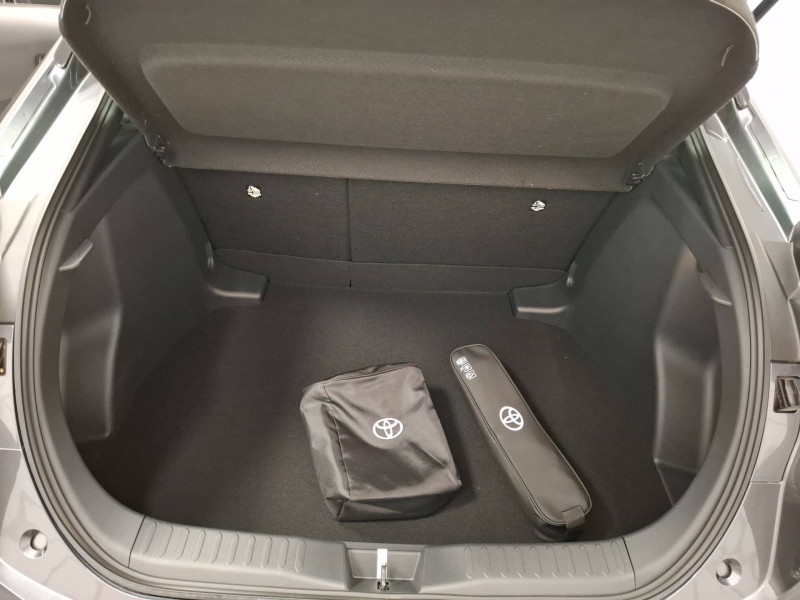 6 HP / Activation automatique des feux de détresse AR (FHL) / Aide à la sortie sécurisée (SEA) Le système vous aide à prévenir les accidents en surveillant les autres usagers de la route qui s'approchent par l'arrière. Lorsqu'il détecte la présence d'un cycliste ou d'un véhicule, un indicateur lumineux s'affiche dans les rétroviseurs extérieurs et sur l'écran multi-informations et une alarme sonore alerte les occupants. / Alarme avec fonction antidémarrage / Avertisseur d'angles morts (BSM) Lorsque les capteurs détectent un véhicule dans votre angle mort latéral, un indicateur lumineux s'éclaire sur le rétroviseur extérieur correspondant. Si vous mettez votre clignotant afin d'indiquer un changement de voie alors qu'un véhicule est dans votre angle mort, un indicateur lumineux apparaît dans le rétroviseur correspondant pour vous avertir du danger. / Carrosserie monoton / Compteur numérique personnalisable 12,3" / Ecrous antivol / Essuie-glaces AV avec détecteur de pluie / Kit de réparation anti-crevaison / Kit de sécurité / Optiques AV full-LED / Poignées de portes affleurantes / Rétroviseur intérieur électrochromatique / Rétroviseurs extérieurs avec éclairage au sol / Sellerie tissu gris foncé / Services connectés de contrôle à distance MyToyota (inclus 4 ans) / Services connectés standards MyToyota (inclus 10 ans) / Système d'appel d'urgence automatique "E-Call" / Système de rappel pour les sièges AR (RSRS) / Système d'ouverture/fermeture et démarrage sans clé "Smart Entry & Start" / Système multimédia Toyota Smart Connect : Écran couleur tactile 8 haute définition, Connectivité Bluetooth, USB et radio, FM et DAB (digitale), Système de connectivité smartphone Apple CarPlay et Android Auto (sans fil), Services intelligents dont navigation connectée avec infotrafic en temps réel, mises à jour cartographiques, assitant vocal Hey Toyota et recherche de points d'intérêts (inclus 4 ans) / Toyota Safety Sense : Système de sécurité précollision avec détection des véhicules, piétons (jour/nuit) et cyclistes, actif également dans les intersections (PCS), Alerte de franchissement de ligne avec aide au maintien dans la file, assistant de trajectoire et détecteur de fatigue (LTA), Régulateur de vitesse adaptatif intelligent allant jusqu'à l'arrêt (ACC), Lecture des panneaux de signalisation avec limiteur de vitesse (RSA) et Gestion automatique des feux de route (AHB), Système d'arrêt d'urgence autonome (EDSS) / Volant gainé de matière synthétique