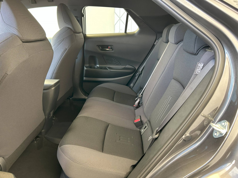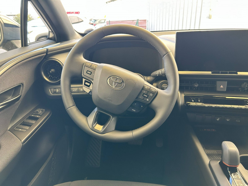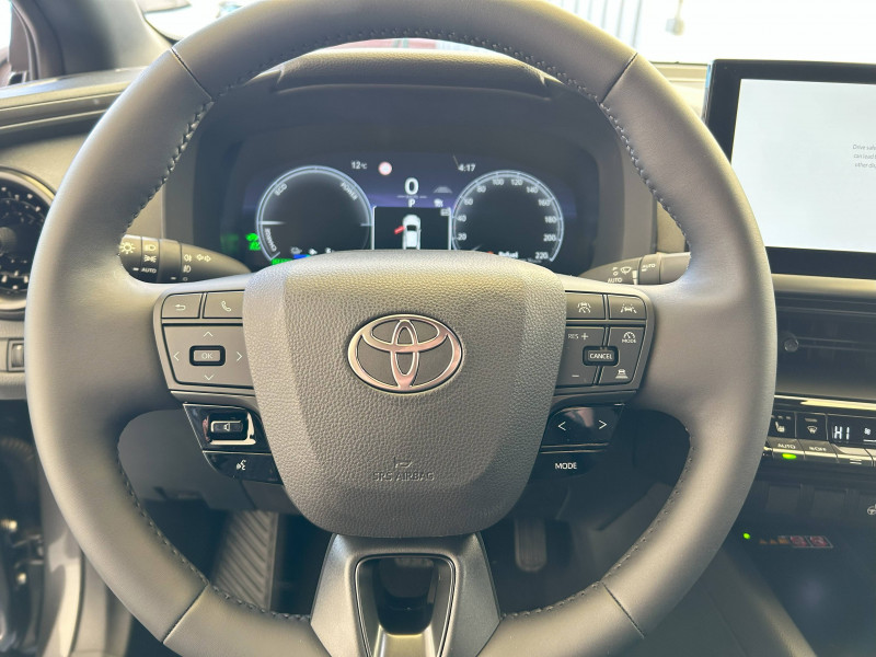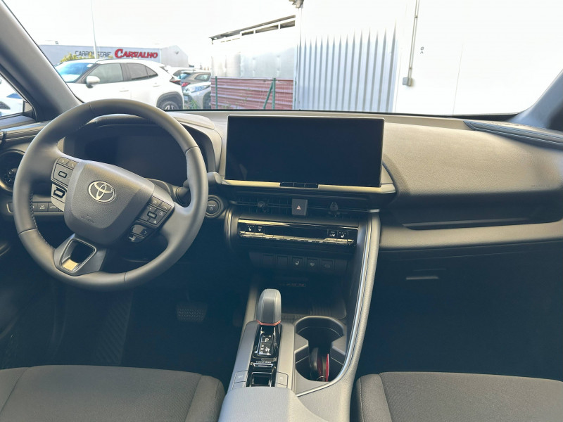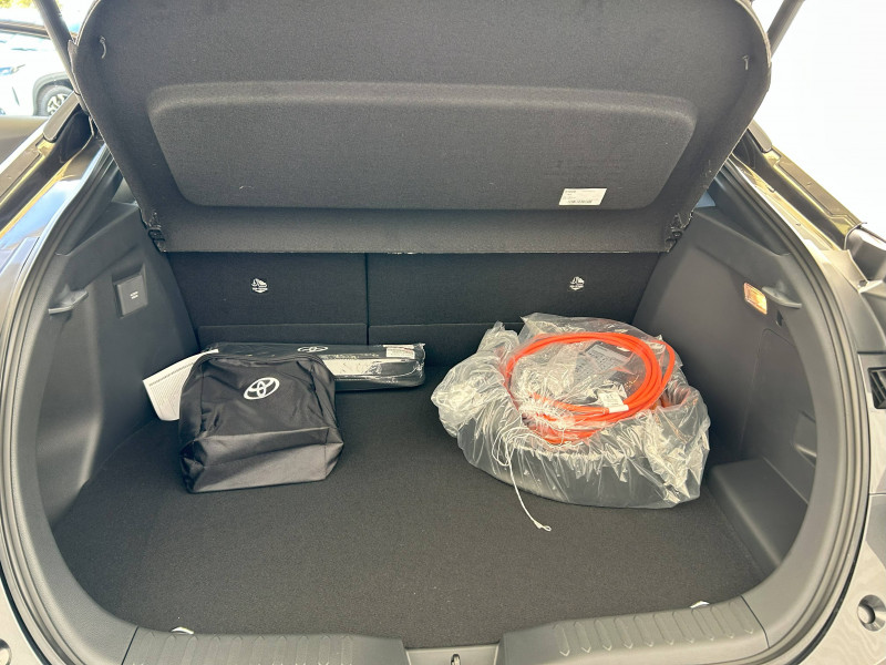 6 HP / Activation automatique des feux de détresse AR (FHL) / Aide à la sortie sécurisée (SEA) Le système vous aide à prévenir les accidents en surveillant les autres usagers de la route qui s'approchent par l'arrière. Lorsqu'il détecte la présence d'un cycliste ou d'un véhicule, un indicateur lumineux s'affiche dans les rétroviseurs extérieurs et sur l'écran multi-informations et une alarme sonore alerte les occupants. / Alarme avec fonction antidémarrage / Assistant visuel de conduite (DMC) Ce système utilise une caméra située audessus du volant pour surveiller le niveau d'alerte et l'état du conducteur. Le système envoie un avertissement s'il détecte un état anormal, comme de la fatigue. Ces activités sont utilisées pour améliorer la performance du système d'arrêt d'urgence autonome (EDSS) à travers la détection précoce de la distraction. / Avertisseur d'angles morts (BSM) Lorsque les capteurs détectent un véhicule dans votre angle mort latéral, un indicateur lumineux s'éclaire sur le rétroviseur extérieur correspondant. Si vous mettez votre clignotant afin d'indiquer un changement de voie alors qu'un véhicule est dans votre angle mort, un indicateur lumineux apparaît dans le rétroviseur correspondant pour vous avertir du danger. / Avertisseur de circulation AR (RCTA) Cet avertisseur vous permet grâce aux capteurs d'angles morts de repérer un véhicule arrivant de côté quand vous sortez en marche AR d'une place de parking. S'il détecte un risque de collision, le système freine automatiquement et stoppe le véhicule. / Boîte automatique à variation continue / Câble de recharge Mode 2 (Type 2) 1,8 kW / 6 mètres (domestique) / Câble de recharge Mode 3 (Type 2) 22kW / 7,5 mètres (Wallbox) / Carrosserie monoton / Coffre avec plancher surélevé / Compteur numérique personnalisable 12,3" / Contrôle de traction (TCS) / Eclairage d'ambiance intérieur monochrome éclairage non personnalisable et non interactif : cave à pieds / rangement passager / Ecrous antivol / Electrostabilisateur programmé (ESP) / Essuie-glaces AV avec détecteur de pluie / Feux Full LED (AV/AR et antibrouillard) / Filet coffre / Jantes en alliage 18" bi-ton gris anthracite mat et aluminium / Kit de réparation anti-crevaison / Kit de sécurité / Montants B de portes noir laqué / Optiques AV full-LED / Pare-brise chauffant (sous les essuie-glaces uniquement) / Poignées de portes affleurantes / Prise 230 V dans le coffre / Programme "Toyota Experience" / Radars de stationnement AV et AR (PKSB) Lorsque vous roulez à basse vitesse ou en marche AR, les radars permettent de détecter des objets statiques (obstacles, murs...) ou en mouvement (véhicules traversant à l'AR), le système de freinage de l'aide au stationnement fournit alors une assistance pour réduire l'impact. / Rétroviseur intérieur électrochromatique / Rétroviseurs extérieurs avec éclairage au sol / Sacoche de rangement pour le câble de recharge / Sellerie tissu bi-ton gris anthracite avec surpiqûres blanches / Services connectés de contrôle à distance MyToyota (inclus 4 ans) / Services connectés standards MyToyota (inclus 10 ans) / Seuils de portes en aluminium / Siège conducteur avec support lombaire électrique / Siège passager réglable manuellement en hauteur / Système d'appel d'urgence automatique "E-Call" / Système de rappel pour les sièges AR (RSRS) / Système d'ouverture/fermeture et démarrage sans clé "Smart Entry & Start" / Système multimédia Toyota Smart Connect : Écran couleur tactile 8 haute définition, Connectivité Bluetooth, USB et radio, FM et DAB (digitale), Système de connectivité smartphone Apple CarPlay et Android Auto (sans fil), Services intelligents dont navigation connectée avec infotrafic en temps réel, mises à jour cartographiques, assitant vocal Hey Toyota et recherche de points d'intérêts (inclus 4 ans) / Toyota Safety Sense : Système de sécurité précollision avec détection des véhicules, piétons (jour/nuit) et cyclistes, actif également dans les intersections (PCS), Alerte de franchissement de ligne avec aide au maintien dans la file, assistant de trajectoire et détecteur de fatigue (LTA), Régulateur de vitesse adaptatif intelligent allant jusqu'à l'arrêt (ACC), Lecture des panneaux de signalisation avec limiteur de vitesse (RSA) et Gestion automatique des feux de route (AHB), Système d'arrêt d'urgence autonome (EDSS) / Vitrage feuilleté insonorisé / Volant chauffant / Volant gainé de matière synthétique