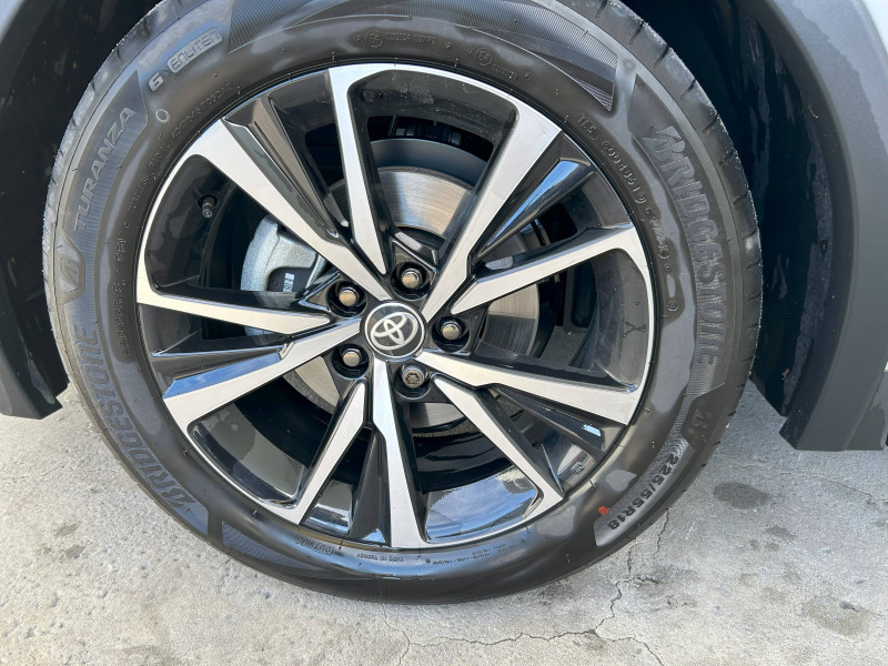 6 HP / Activation automatique des feux de détresse AR (FHL) / Aide à la sortie sécurisée (SEA) Le système vous aide à prévenir les accidents en surveillant les autres usagers de la route qui s'approchent par l'arrière. Lorsqu'il détecte la présence d'un cycliste ou d'un véhicule, un indicateur lumineux s'affiche dans les rétroviseurs extérieurs et sur l'écran multi-informations et une alarme sonore alerte les occupants. / Alarme avec fonction antidémarrage / Assistant visuel de conduite (DMC) Ce système utilise une caméra située audessus du volant pour surveiller le niveau d'alerte et l'état du conducteur. Le système envoie un avertissement s'il détecte un état anormal, comme de la fatigue. Ces activités sont utilisées pour améliorer la performance du système d'arrêt d'urgence autonome (EDSS) à travers la détection précoce de la distraction. / Avertisseur d'angles morts (BSM) Lorsque les capteurs détectent un véhicule dans votre angle mort latéral, un indicateur lumineux s'éclaire sur le rétroviseur extérieur correspondant. Si vous mettez votre clignotant afin d'indiquer un changement de voie alors qu'un véhicule est dans votre angle mort, un indicateur lumineux apparaît dans le rétroviseur correspondant pour vous avertir du danger. / Avertisseur de circulation AR (RCTA) Cet avertisseur vous permet grâce aux capteurs d'angles morts de repérer un véhicule arrivant de côté quand vous sortez en marche AR d'une place de parking. S'il détecte un risque de collision, le système freine automatiquement et stoppe le véhicule. / Boîte automatique à variation continue / Carrosserie monoton / Compteur numérique personnalisable 12,3" / Contrôle de traction (TCS) / Eclairage d'ambiance intérieur monochrome éclairage non personnalisable et non interactif : cave à pieds / rangement passager / Ecrous antivol / Electrostabilisateur programmé (ESP) / Essuie-glaces AV avec détecteur de pluie / Filet coffre / Jantes en alliage 18" bi-ton gris anthracite mat et aluminium / Kit de réparation anti-crevaison / Kit de sécurité / Montants B de portes noir laqué / Optiques AV full-LED / Pare-brise chauffant (sous les essuie-glaces uniquement) / Poignées de portes affleurantes / Radars de stationnement AV et AR (PKSB) Lorsque vous roulez à basse vitesse ou en marche AR, les radars permettent de détecter des objets statiques (obstacles, murs...) ou en mouvement (véhicules traversant à l'AR), le système de freinage de l'aide au stationnement fournit alors une assistance pour réduire l'impact. / Rétroviseur intérieur électrochromatique / Rétroviseurs extérieurs avec éclairage au sol / Sellerie tissu bi-ton gris anthracite avec surpiqûres blanches / Services connectés de contrôle à distance MyToyota (inclus 4 ans) / Services connectés standards MyToyota (inclus 10 ans) / Seuils de portes en aluminium / Siège conducteur avec support lombaire électrique / Siège passager réglable manuellement en hauteur / Système d'appel d'urgence automatique "E-Call" / Système de rappel pour les sièges AR (RSRS) / Système d'ouverture/fermeture et démarrage sans clé "Smart Entry & Start" / Système multimédia Toyota Smart Connect : Écran couleur tactile 8 haute définition, Connectivité Bluetooth, USB et radio, FM et DAB (digitale), Système de connectivité smartphone Apple CarPlay et Android Auto (sans fil), Services intelligents dont navigation connectée avec infotrafic en temps réel, mises à jour cartographiques, assitant vocal Hey Toyota et recherche de points d'intérêts (inclus 4 ans) / Toyota Safety Sense : Système de sécurité précollision avec détection des véhicules, piétons (jour/nuit) et cyclistes, actif également dans les intersections (PCS), Alerte de franchissement de ligne avec aide au maintien dans la file, assistant de trajectoire et détecteur de fatigue (LTA), Régulateur de vitesse adaptatif intelligent allant jusqu'à l'arrêt (ACC), Lecture des panneaux de signalisation avec limiteur de vitesse (RSA) et Gestion automatique des feux de route (AHB), Système d'arrêt d'urgence autonome (EDSS) / Volant chauffant / Volant gainé de matière synthétique