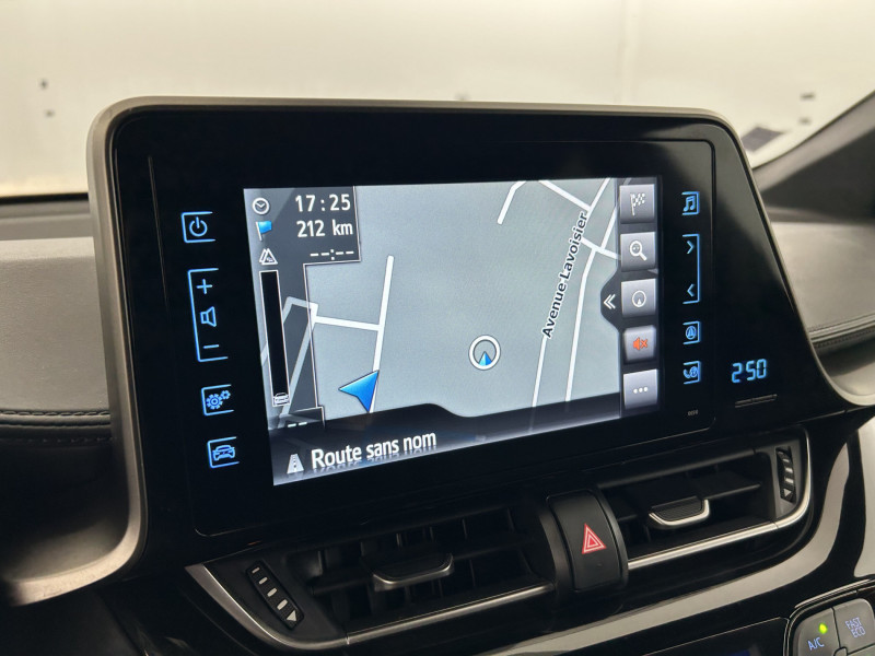 6 HP / 7 Airbags (frontaux et latéraux pour conducteur et passager AV, rideaux AV et AR et protège-genoux conducteur) / Antenne de toit type requin / Avertisseur d'angles morts (BSM) / Avertisseur de circulation AR (RCTA) / Carrosserie bi-ton toit noir / Console centrale noir laqué / Contre-portes avec inserts noirs laqués / Follow me home (feux AV à extinction différée) / Illumination des contre-portes / Indicateur de perte de pression des pneus / Kit de réparation anti-crevaison / Lignes de vitres chromées / Montant central (pilier B) noir laqué / Ordinateur de bord avec écran TFT couleur 4.2" multifonctions / Phares à extinction différée / Prises auxiliaire et USB / Réglages manuels du siège conducteur / Rétroviseur intérieur anti-éblouissement / Rétroviseurs extérieurs rabattables automatiquement avec projection au sol du logo Toyota C-HR / Sellerie tissu gris foncé / Sièges AV type sport avec maintiens latéraux / Support lombaire du siège conducteur (électrique) / Système d'aide au stationnement intelligent / Système de contrôle de stabilité (VSC) + Système de contrôle de motricité (TRC) / Système de freinage antiblocage ABS / Système de téléphonie Bluetooth / Système d'ouverture/fermeture et démarrage sans clé "Smart Entry & Start" (conducteur, passager et coffre) / Système multimédia Toyota Touch 2 (Système audio avec radio) / Toyota Safety Sense Système de sécurité précollision avec détection des piétons, Alerte de franchissement de ligne et détecteur de fatigue, gestion automatique des feux de route, lecture des panneaux de signalisation, régulateur de vitesse adaptatif. / / Véhicules équivalents: Peugeot 2008 - Citroen C4 Cactus - Nissan Juke
