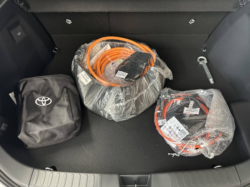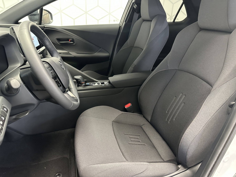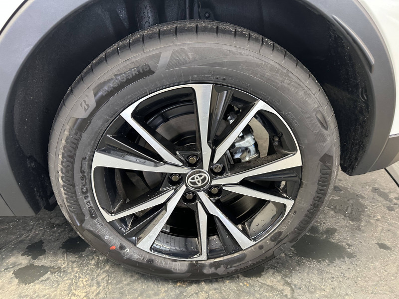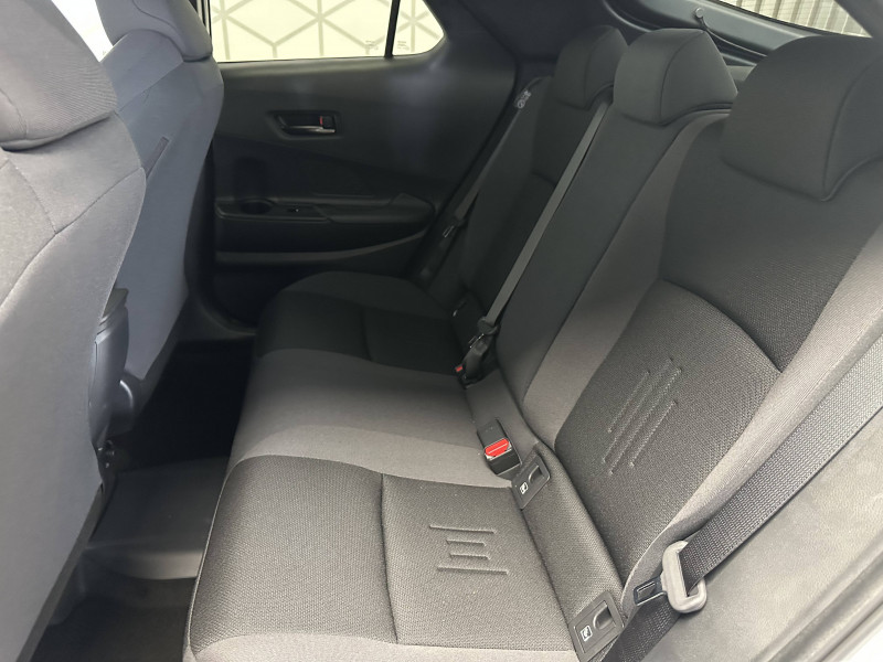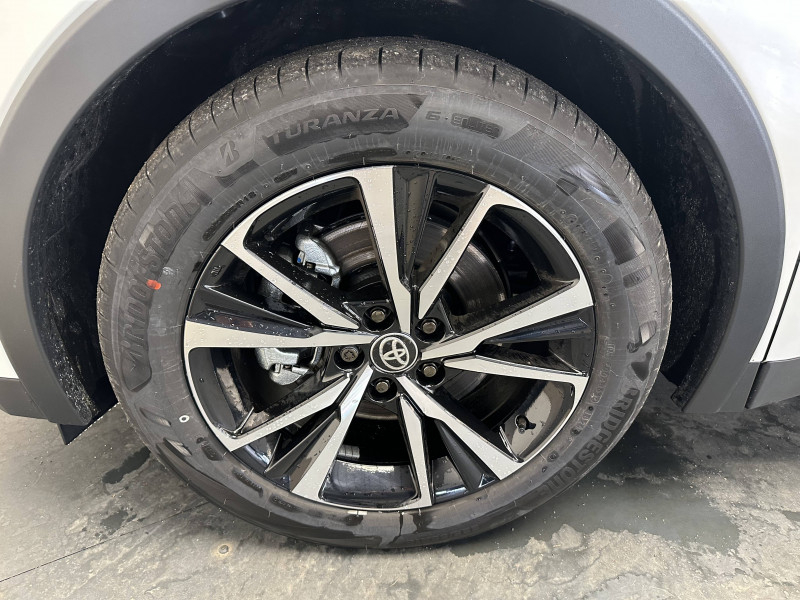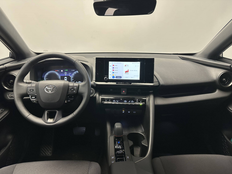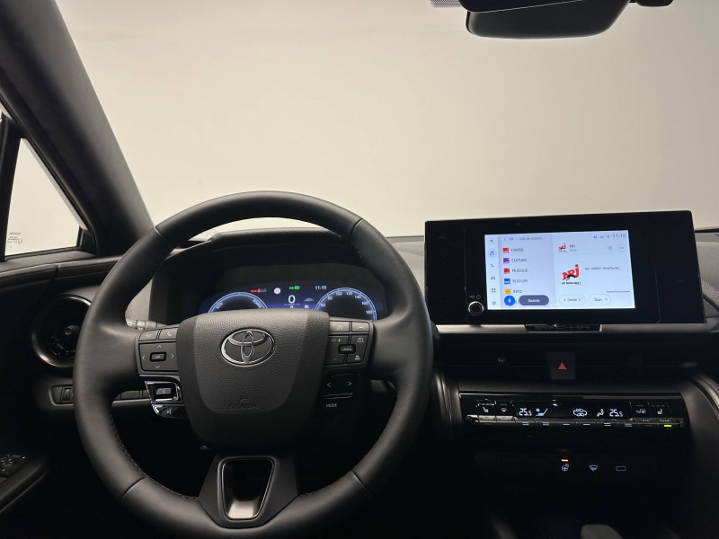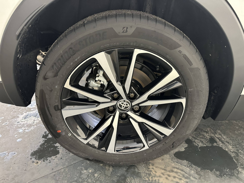 6 HP / Activation automatique des feux de détresse AR (FHL) / Aide à la sortie sécurisée (SEA) Le système vous aide à prévenir les accidents en surveillant les autres usagers de la route qui s'approchent par l'arrière. Lorsqu'il détecte la présence d'un cycliste ou d'un véhicule, un indicateur lumineux s'affiche dans les rétroviseurs extérieurs et sur l'écran multi-informations et une alarme sonore alerte les occupants. / Alarme avec fonction antidémarrage / Avertisseur d'angles morts (BSM) Lorsque les capteurs détectent un véhicule dans votre angle mort latéral, un indicateur lumineux s'éclaire sur le rétroviseur extérieur correspondant. Si vous mettez votre clignotant afin d'indiquer un changement de voie alors qu'un véhicule est dans votre angle mort, un indicateur lumineux apparaît dans le rétroviseur correspondant pour vous avertir du danger. / Avertisseur de circulation AR (RCTA) Cet avertisseur vous permet grâce aux capteurs d'angles morts de repérer un véhicule arrivant de côté quand vous sortez en marche AR d'une place de parking. S'il détecte un risque de collision, le système freine automatiquement et stoppe le véhicule. / Câble de recharge Mode 2 (Type 2) 1,8 kW / 6 mètres (domestique) / Câble de recharge Mode 3 (Type 2) 22kW / 7,5 mètres (Wallbox) / Carrosserie monoton / Coffre avec plancher surélevé / Compteur numérique personnalisable 12,3" / Eclairage d'ambiance intérieur monochrome éclairage non personnalisable et non interactif : cave à pieds / rangement passager / Ecrous antivol / Essuie-glaces AV avec détecteur de pluie / Filet coffre / Jantes en alliage 18" bi-ton noir et aluminium / Kit de réparation anti-crevaison / Kit de sécurité / Montants B de portes noir laqué / Optiques AV full-LED / Pare-brise chauffant (sous les essuie-glaces uniquement) / Poignées de portes affleurantes / Prise 230 V dans le coffre / Programme "Toyota Experience" / Radars de stationnement AV et AR (PKSB) Lorsque vous roulez à basse vitesse ou en marche AR, les radars permettent de détecter des objets statiques (obstacles, murs...) ou en mouvement (véhicules traversant à l'AR), le système de freinage de l'aide au stationnement fournit alors une assistance pour réduire l'impact. / Rétroviseur intérieur électrochromatique / Rétroviseurs extérieurs avec éclairage au sol / Sacoche de rangement pour le câble de recharge / Sellerie tissu gris foncé avec surpiqûres cuivre / Services connectés de contrôle à distance MyToyota (inclus 4 ans) / Services connectés standards MyToyota (inclus 10 ans) / Seuils de portes en aluminium / Siège conducteur avec support lombaire électrique / Siège passager réglable manuellement en hauteur / Système d'appel d'urgence automatique "E-Call" / Système de rappel pour les sièges AR (RSRS) / Système d'ouverture/fermeture et démarrage sans clé "Smart Entry & Start" / Système multimédia Toyota Smart Connect : Écran couleur tactile 8 haute définition, Connectivité Bluetooth, USB et radio, FM et DAB (digitale), Système de connectivité smartphone Apple CarPlay et Android Auto (sans fil), Services intelligents dont navigation connectée avec infotrafic en temps réel, mises à jour cartographiques, assitant vocal Hey Toyota et recherche de points d'intérêts (inclus 4 ans) / Toyota Safety Sense : Système de sécurité précollision avec détection des véhicules, piétons (jour/nuit) et cyclistes, actif également dans les intersections (PCS), Alerte de franchissement de ligne avec aide au maintien dans la file, assistant de trajectoire et détecteur de fatigue (LTA), Régulateur de vitesse adaptatif intelligent allant jusqu'à l'arrêt (ACC), Lecture des panneaux de signalisation avec limiteur de vitesse (RSA) et Gestion automatique des feux de route (AHB), Système d'arrêt d'urgence autonome (EDSS) / Vitrage feuilleté insonorisé / Volant chauffant / Volant gainé de matière synthétique