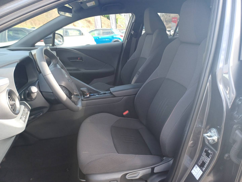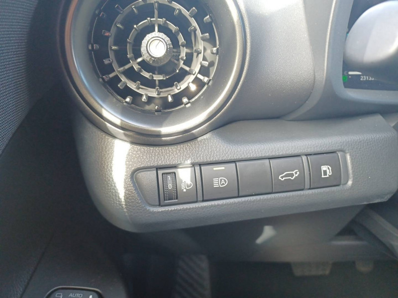 6 HP / Activation automatique des feux de détresse AR (FHL) / Aide à la sortie sécurisée (SEA) Le système vous aide à prévenir les accidents en surveillant les autres usagers de la route qui s'approchent par l'arrière. Lorsqu'il détecte la présence d'un cycliste ou d'un véhicule, un indicateur lumineux s'affiche dans les rétroviseurs extérieurs et sur l'écran multi-informations et une alarme sonore alerte les occupants. / Alarme avec fonction antidémarrage / Avertisseur d'angles morts (BSM) Lorsque les capteurs détectent un véhicule dans votre angle mort latéral, un indicateur lumineux s'éclaire sur le rétroviseur extérieur correspondant. Si vous mettez votre clignotant afin d'indiquer un changement de voie alors qu'un véhicule est dans votre angle mort, un indicateur lumineux apparaît dans le rétroviseur correspondant pour vous avertir du danger. / Avertisseur de circulation AR (RCTA) Cet avertisseur vous permet grâce aux capteurs d'angles morts de repérer un véhicule arrivant de côté quand vous sortez en marche AR d'une place de parking. S'il détecte un risque de collision, le système freine automatiquement et stoppe le véhicule. / Carrosserie monoton / Compteur numérique personnalisable 12,3" / Eclairage d'ambiance intérieur monochrome éclairage non personnalisable et non interactif : cave à pieds / rangement passager / Ecrous antivol / Essuie-glaces AV avec détecteur de pluie / Filet coffre / Jantes en alliage 18" bi-ton noir et aluminium / Kit de réparation anti-crevaison / Kit de sécurité / Montants B de portes noir laqué / Optiques AV full-LED / Pare-brise chauffant (sous les essuie-glaces uniquement) / Poignées de portes affleurantes / Radars de stationnement AV et AR (PKSB) Lorsque vous roulez à basse vitesse ou en marche AR, les radars permettent de détecter des objets statiques (obstacles, murs...) ou en mouvement (véhicules traversant à l'AR), le système de freinage de l'aide au stationnement fournit alors une assistance pour réduire l'impact. / Rétroviseur intérieur électrochromatique / Rétroviseurs extérieurs avec éclairage au sol / Sellerie tissu gris foncé avec surpiqûres cuivre / Services connectés de contrôle à distance MyToyota (inclus 4 ans) / Services connectés standards MyToyota (inclus 10 ans) / Seuils de portes en aluminium / Siège conducteur avec support lombaire électrique / Siège passager réglable manuellement en hauteur / Système d'appel d'urgence automatique "E-Call" / Système de rappel pour les sièges AR (RSRS) / Système d'ouverture/fermeture et démarrage sans clé "Smart Entry & Start" / Système multimédia Toyota Smart Connect : Ecran couleur tactile 8" haute définition,Connectivité Bluetooth, USB et radio FM et DAB (digitale) Connectivité smartphone Apple CarPlay et Android Auto (sans fil), Navigation connectée avec infotrafic en temps réel et Smart Parking (aide à la recherche de stationnement), Reconnaissance vocale avancée "Hey Toyota", 4 ans de mises à jour cartographiques et services connectés inclus / Toyota Safety Sense : Système de sécurité précollision avec détection des véhicules, piétons (jour/nuit) et cyclistes, actif également dans les intersections (PCS), Alerte de franchissement de ligne avec aide au maintien dans la file, assistant de trajectoire et détecteur de fatigue (LTA), Régulateur de vitesse adaptatif intelligent allant jusqu'à l'arrêt (ACC), Lecture des panneaux de signalisation avec limiteur de vitesse (RSA) et Gestion automatique des feux de route (AHB), Système d'arrêt d'urgence autonome (EDSS) / Volant chauffant / Volant en cuir synthétique