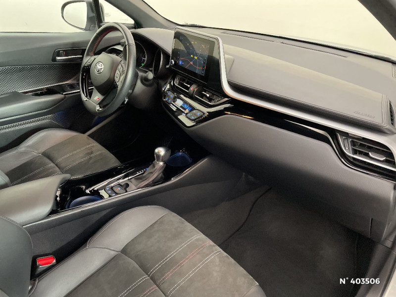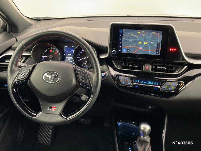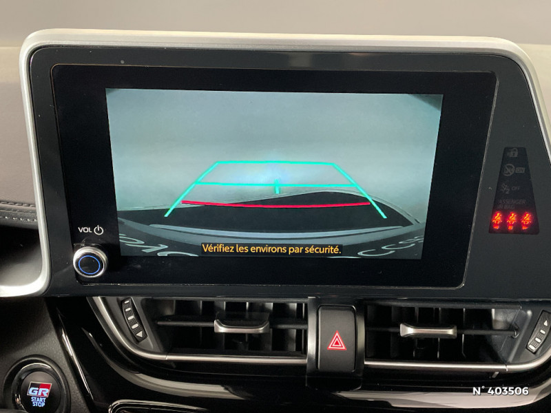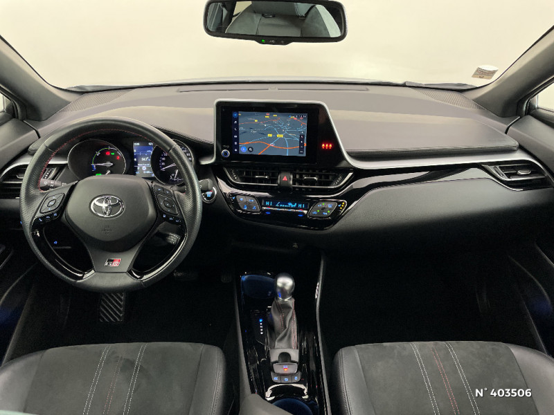 Filet coffre / Frein de stationnement électrique / Indicateur de sous-gonflage des pneus / Kit de réparation anti-crevaison / Kit de sécurité / Lignes de vitres noir laqué / Montant central (pilier B) noir laqué / Optiques AV LED avec signature lumineuse Premium et AR à LED avec clignotant séquentiel / Ornements latéraux noirs / Poches aumonières au dos des sièges AV / Poignées de portes et pare-chocs AV couleur carrosserie / Purificateur d'air ionique Nanoe / Rétroviseur intérieur électrochromatique / Rétroviseurs extérieurs avec projection au sol du logo Toyota C-HR / Rétroviseurs extérieurs électriques et dégivrants avec rappels de clignotants / Revêtement supérieur de planche de bord et d'accoudoir central noir / Sellerie cuir et Alcantara noir avec surpiqûres grises et rouges et logo GR Sport / Seuils de portes GR Sport / Siège conducteur à réglage lombaire électrique / Siège conducteur à réglages manuels avec réglage lombaire électrique / Siège passager AV ajustable manuellement en hauteur / Sièges AV type sport avec maintiens latéraux / Système d'appel d'urgence automatique "E-Call" / Système de connectivité smartphone Apple CarPlay / Android Auto / Système de contrôle de motricité (TRC) / Système de contrôle de trajectoire (VSC) / Système de freinage antiblocage (ABS), BA et EBD / Système multimédia Toyota Touch avec radio DAB, écran couleur tactile 8'', bluetooth, USB / Avertisseurs d'angles morts et de circulation AR avec freinage d'urgence auto / Bouton de démarrage spécifique "GR SPORT" / Calculateur de temps de conduite en électrique / Tapis de sol en velours AV/AR / Toyota Safety Sense Système de sécurité précollision avec détection des piétons, Alerte de franchissement de ligne et détecteur de fatigue, gestion automatique des feux de route, lecture des panneaux de signalisation, régulateur de vitesse adaptatif. / Toyota Smart Connect avec écran couleur tactile 8" haute définition, connectivité smartphone sans fil compatible AppleCar Play et Android Auto, Navigation connectée avec infotrafic en temps réel et Smart Parking (aide à la recherche de stationnement) Reconnaissance vocale avancée "Hey Toyota", 4 ans de mises à jour cartographiques et services connectés inclus / Traitement spécifique des optiques AV / Volant et pommeau de levier de vitesse gainé cuir avec surpiqûres rouges / 6 HP / 7 Airbags (frontaux, lateraux, rideaux et un protège-genoux conducteur) / Accoudoir central avec compartiment de rangement / Ajustement manuel de la hauteur des phares / Alarme avec fonction antidémarrage / Antenne de toit type requin / Système AVAS (Acoustic Vehicle Alerting System) / Système d'accès (conducteur, passager et coffre) et de démarrage sans clé "Smart Entry & Start" / Carrosserie bi-ton avec toit noir / Ciel de pavillon noir / Combiné d'instrumentation avec écran couleur TFT multifonction 4" / Coques de rétroviseurs extérieurs noires / Eclairage d'accueil / Ecrous antivol / Fermeture centralisée avec commande à distance / Feu de recul central à LED sur bouclier AR / Feux AR à LED avec clignotants séquentiels