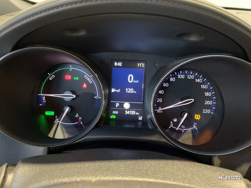 Alarme avec fonction antidémarrage / Montant central (pilier B) noir laqué / Antenne de toit type requin / Becquet AV couleur carrosserie / Calculateur de temps de conduite en électrique / Combiné d'instrumentation avec écran couleur TFT multifonction 4" / Coques de rétroviseur couleur carrosserie / Eclairage d'accueil / Ecrous antivol / Fermeture centralisée avec commande à distance / Filet coffre / Frein de stationnement électrique / Indicateur de sous-gonflage des pneus / Kit de réparation anti-crevaison / Kit de sécurité / Ciel de pavillon noir / Lignes de vitres chromées / Toyota Smart Connect avec écran couleur tactile 9" multifonction, 6 HP, navigation connectée et connectivité smartphone sans fil compatible AppleCar Play et Android Auto, et 4 ans de mises à jour cartographiques et de services connectés inclus / 6 HP / 7 Airbags (frontaux, lateraux, rideaux et un protège-genoux conducteur) / Système d'accès (conducteur, passager et coffre) et de démarrage sans clé "Smart Entry & Start" / Seuils de portes en aluminium / Accoudoir central avec compartiment de rangement / Ajustement manuel de la hauteur des phares / Siège passager AV ajustable manuellement en hauteur / Sièges AV type sport avec maintiens latéraux / Système AVAS (Acoustic Vehicle Alerting System) / Poches aumonières au dos des sièges AV / Poignées de portes et pare-chocs AV couleur carrosserie / Projecteurs AV et clignotants et feux halogènes / Rétroviseur intérieur électrochromatique / Rétroviseurs extérieurs électriques et dégivrants avec rappels de clignotants / Sellerie en tissu gris sombre avec surpiqûres bleues et embossage façon diamant / Sellerie en tissu/cuir synthétique noir avec surpiqûres grises et embossage façon diamant / Optiques AV et AR à LED / Ornements de portière Bronze / Système d'appel d'urgence automatique "E-Call" / Système de connectivité smartphone Apple CarPlay / Android Auto / Système de contrôle de motricité (TRC) / Système de contrôle de trajectoire (VSC) / Système de freinage antiblocage (ABS), BA et EBD / Système multimédia Toyota Touch avec radio DAB, écran couleur tactile 8'', bluetooth, USB / Tapis de sol en velours AV/AR / Toyota Safety Sense Système de sécurité précollision avec détection des piétons, Alerte de franchissement de ligne et détecteur de fatigue, gestion automatique des feux de route, lecture des panneaux de signalisation, régulateur de vitesse adaptatif. / Toyota Smart Connect