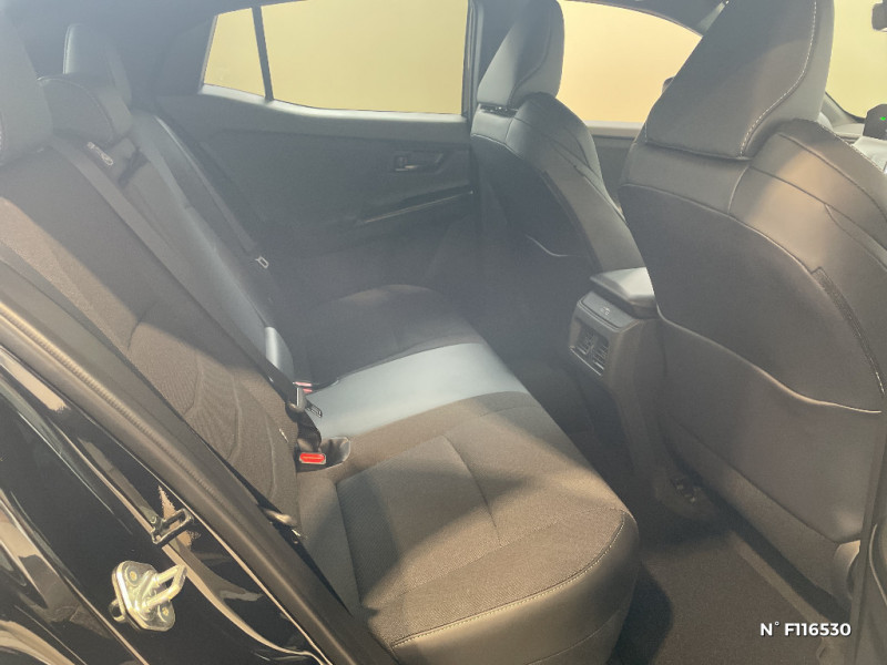 Coffre à ouverture et fermeture électriques / Commande de reconnaissance vocal au volant / Commande de téléphone Bluetooth au volant / Connectivité Smartphone / Console centrale avec espace de rangement. / Contour de l¿écran tactile noir laqué / Double chargeur à induction / Double plancher du coffre / Eclairage d'ambiance intérieure 64 couleurs / Ecran TFT 7" / Feux AV adaptatifs LED (Multi-beam LED headlamps) / Gestion automatique des feux de route (AHB) / Indicateur de perte de pression des pneus / Jantes 18" Aero noires et grises / Liseuses aux places AR à LED / Ordinateur de bord avec écran TFT couleur mulifonctions / Ouverture du coffre AR avec la clé / Poignées de maintien AR / Radars de stationnement AV/AR anticollision (ICS) / Rappel de extinction des phares / Reconnaissance vocale / Rétroviseur intérieur électrochromatique / Sécurité enfants sur portes AR / Siège conducteur coulissant manuellement / Siège passager coulissant manuellement / Siège passager réglable manuellement en hauteur / Sièges AR fractionnables / rabattables 60/40 / Smartphone remote door lock / hazard lights system / Support lombaire du siège conducteur (électrique) / Système d'appel d'urgence automatique "E-Call" / Système de démarrage et d'ouverture des portes sans clé "Smart Entry & Start" / Système de sécurité précollision avec correcteur de trajectoire / Système de sécurité précollision (PCS) / Système ISOFIX / Systèmes de climatisation à distance (Remote air conditioning system) / Toit couleur carroserie / Toyota Smart Connect Plus avec écran 14" / Volant chauffant / 4 prises USB Type-C (2 à l'AV et 2 à l'AR) / 6 HP / Poignées de portes intérieures illuminées avec ambiance 64 couleurs / Porte-gobelets AV et AR / Aide à la sortie sécurisée (SEA) / Aide étendue à l'arrêt d'urgence (EDSS) / Ajustement automatique de la hauteur des phares / Antenne de toit type requin / Avertisseur de circulation AR / Becquet AR aérodynamique / Cache-bagages