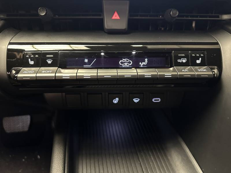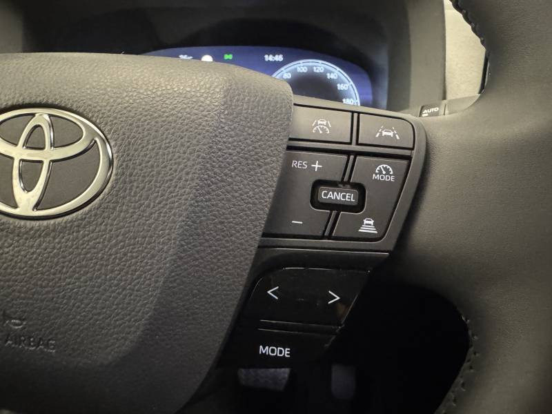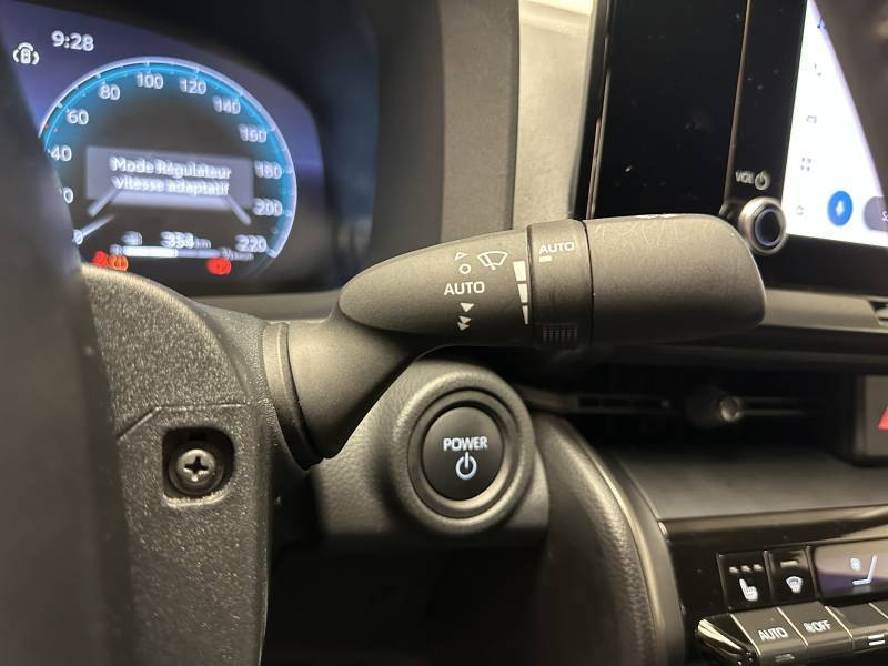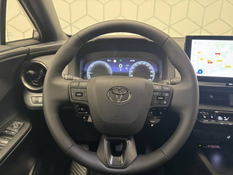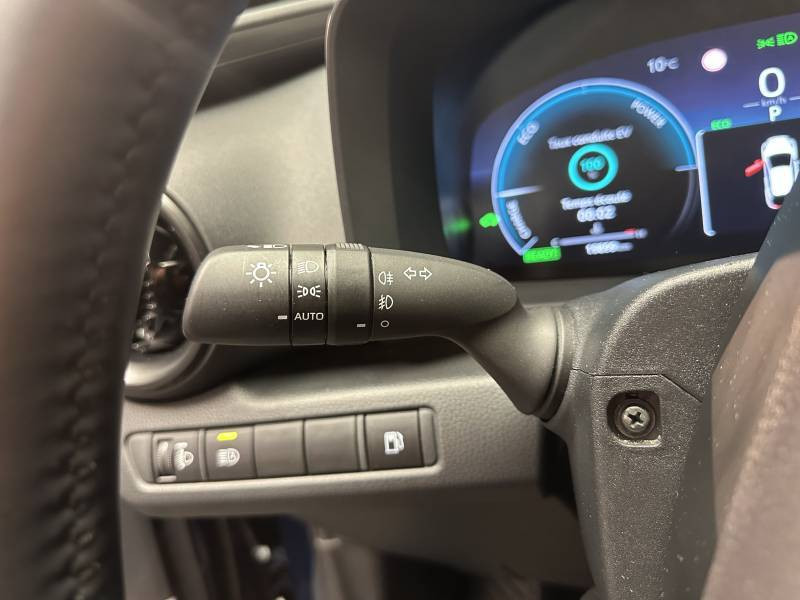 6 HP / Activation automatique des feux de détresse AR (FHL) / Aide à la sortie sécurisée (SEA) Le système vous aide à prévenir les accidents en surveillant les autres usagers de la route qui s'approchent par l'arrière. Lorsqu'il détecte la présence d'un cycliste ou d'un véhicule, un indicateur lumineux s'affiche dans les rétroviseurs extérieurs et sur l'écran multi-informations et une alarme sonore alerte les occupants. / Alarme avec fonction antidémarrage / Avertisseur d'angles morts (BSM) Lorsque les capteurs détectent un véhicule dans votre angle mort latéral, un indicateur lumineux s'éclaire sur le rétroviseur extérieur correspondant. Si vous mettez votre clignotant afin d'indiquer un changement de voie alors qu'un véhicule est dans votre angle mort, un indicateur lumineux apparaît dans le rétroviseur correspondant pour vous avertir du danger. / Avertisseur de circulation AR (RCTA) Cet avertisseur vous permet grâce aux capteurs d'angles morts de repérer un véhicule arrivant de côté quand vous sortez en marche AR d'une place de parking. S'il détecte un risque de collision, le système freine automatiquement et stoppe le véhicule. / Carrosserie monoton / Compteur numérique personnalisable 12,3" / Eclairage d'ambiance intérieur monochrome éclairage non personnalisable et non interactif : cave à pieds / rangement passager / Ecrous antivol / Essuie-glaces AV avec détecteur de pluie / Filet coffre / Jantes en alliage 18" bi-ton noir et aluminium / Kit de réparation anti-crevaison / Kit de sécurité / Montants B de portes noir laqué / Optiques AV full-LED / Pare-brise chauffant (sous les essuie-glaces uniquement) / Poignées de portes affleurantes / Radars de stationnement AV et AR (PKSB) Lorsque vous roulez à basse vitesse ou en marche AR, les radars permettent de détecter des objets statiques (obstacles, murs...) ou en mouvement (véhicules traversant à l'AR), le système de freinage de l'aide au stationnement fournit alors une assistance pour réduire l'impact. / Rétroviseur intérieur électrochromatique / Rétroviseurs extérieurs avec éclairage au sol / Sellerie tissu gris foncé avec surpiqûres cuivre / Services connectés de contrôle à distance MyToyota (inclus 4 ans) / Services connectés standards MyToyota (inclus 10 ans) / Seuils de portes en aluminium / Siège conducteur avec support lombaire électrique / Siège passager réglable manuellement en hauteur / Système d'appel d'urgence automatique "E-Call" / Système de rappel pour les sièges AR (RSRS) / Système d'ouverture/fermeture et démarrage sans clé "Smart Entry & Start" / Système multimédia Toyota Smart Connect : Ecran couleur tactile 8" haute définition,Connectivité Bluetooth, USB et radio FM et DAB (digitale) Connectivité smartphone Apple CarPlay et Android Auto (sans fil), Navigation connectée avec infotrafic en temps réel et Smart Parking (aide à la recherche de stationnement), Reconnaissance vocale avancée "Hey Toyota", 4 ans de mises à jour cartographiques et services connectés inclus / Toyota Safety Sense : Système de sécurité précollision avec détection des véhicules, piétons (jour/nuit) et cyclistes, actif également dans les intersections (PCS), Alerte de franchissement de ligne avec aide au maintien dans la file, assistant de trajectoire et détecteur de fatigue (LTA), Régulateur de vitesse adaptatif intelligent allant jusqu'à l'arrêt (ACC), Lecture des panneaux de signalisation avec limiteur de vitesse (RSA) et Gestion automatique des feux de route (AHB), Système d'arrêt d'urgence autonome (EDSS) / Volant chauffant / Volant en cuir synthétique