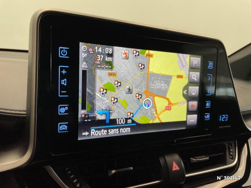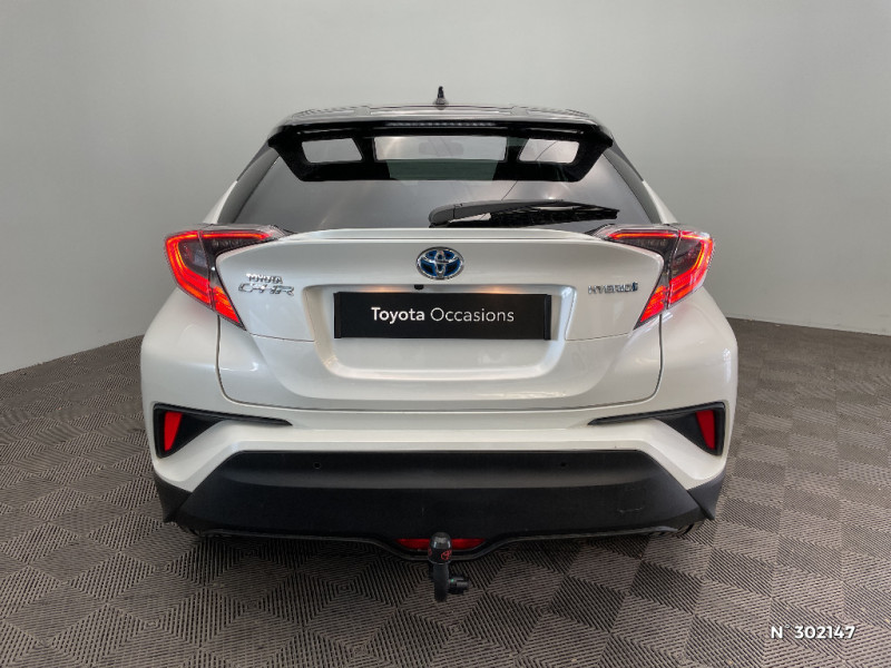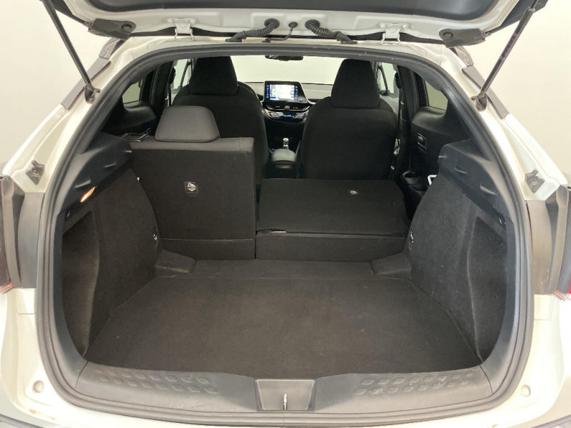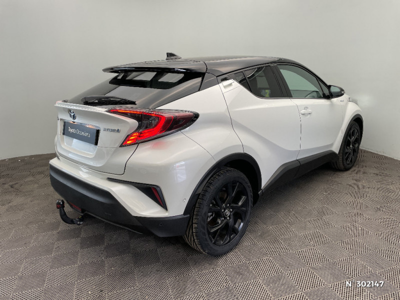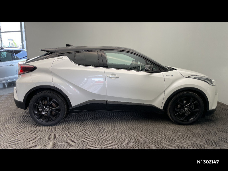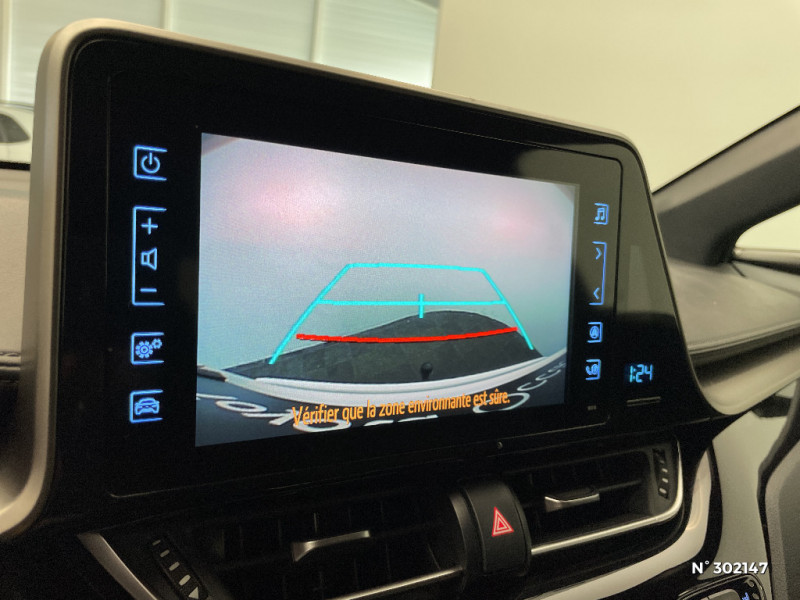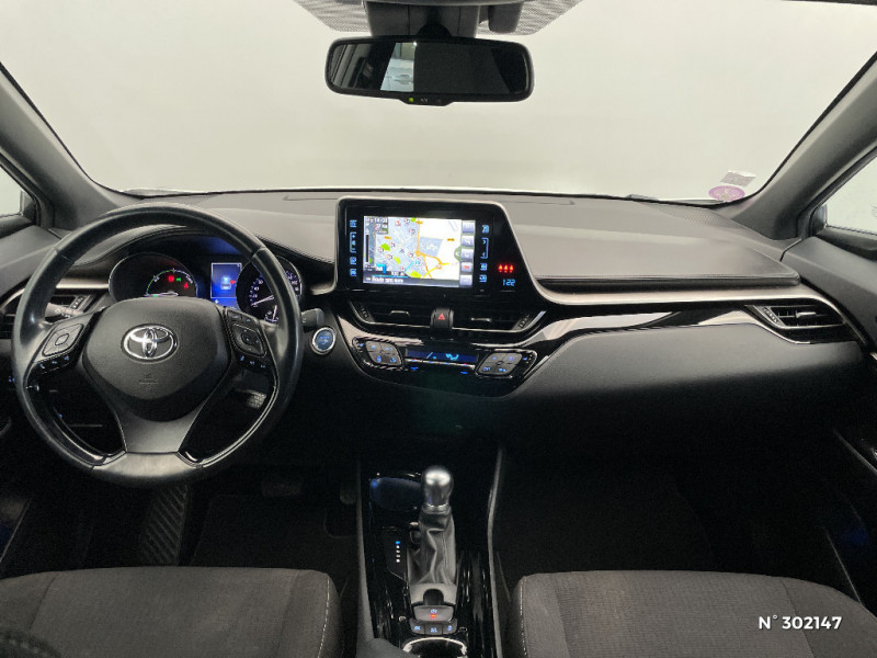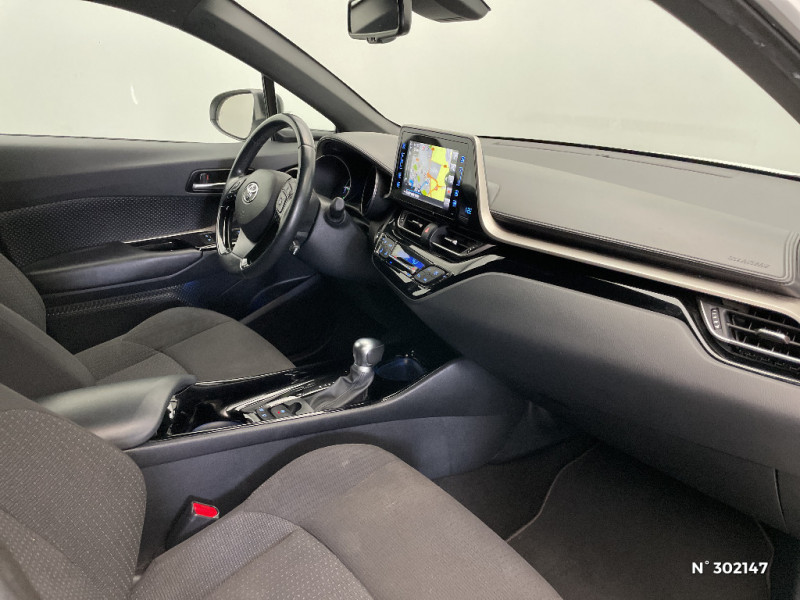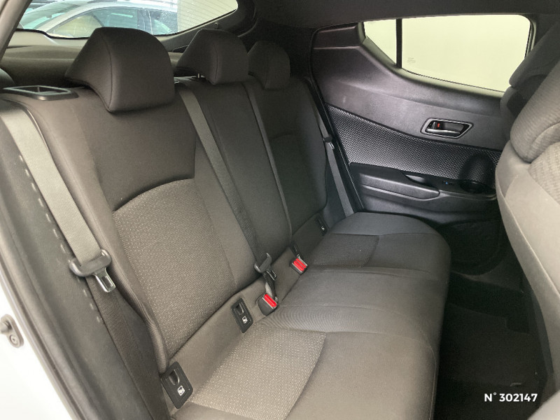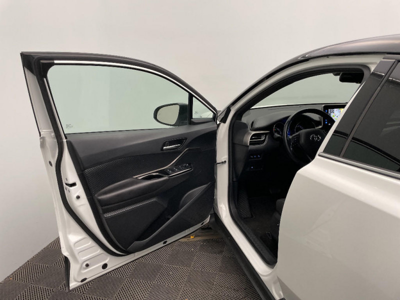 Montant central (pilier B) noir laqué / Ordinateur de bord avec écran TFT couleur 4.2" multifonctions / Phares à extinction différée / Prises auxiliaire et USB / Réglages manuels du siège conducteur / Rétroviseur intérieur anti-éblouissement / Rétroviseurs extérieurs rabattables automatiquement avec projection au sol du logo Toyota C-HR / Sellerie tissu gris foncé / Système de contrôle de stabilité (VSC) + Système de contrôle de motricité (TRC) / Système de freinage antiblocage ABS / Système de téléphonie Bluetooth / Système d'ouverture/fermeture et démarrage sans clé "Smart Entry & Start" (conducteur, passager et coffre) / Système multimédia Toyota Touch 2 (Système audio avec radio) / Toyota Safety Sense Système de sécurité précollision avec détection des piétons, Alerte de franchissement de ligne et détecteur de fatigue, gestion automatique des feux de route, lecture des panneaux de signalisation, régulateur de vitesse adaptatif. / 6 HP / 7 Airbags (frontaux et latéraux pour conducteur et passager AV, rideaux AV et AR et protège-genoux conducteur) / Antenne de toit type requin / Avertisseur d'angles morts (BSM) / Avertisseur de circulation AR (RCTA) / Carrosserie bi-ton toit noir / Console centrale noir laqué / Contre-portes avec inserts noirs laqués / Follow me home (feux AV à extinction différée) / Illumination des contre-portes / Indicateur de perte de pression des pneus / Kit de réparation anti-crevaison / Lignes de vitres chromées / Sièges AV type sport avec maintiens latéraux / Support lombaire du siège conducteur (électrique) / Système d'aide au stationnement intelligent