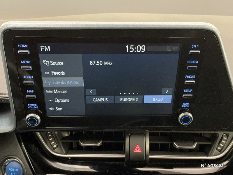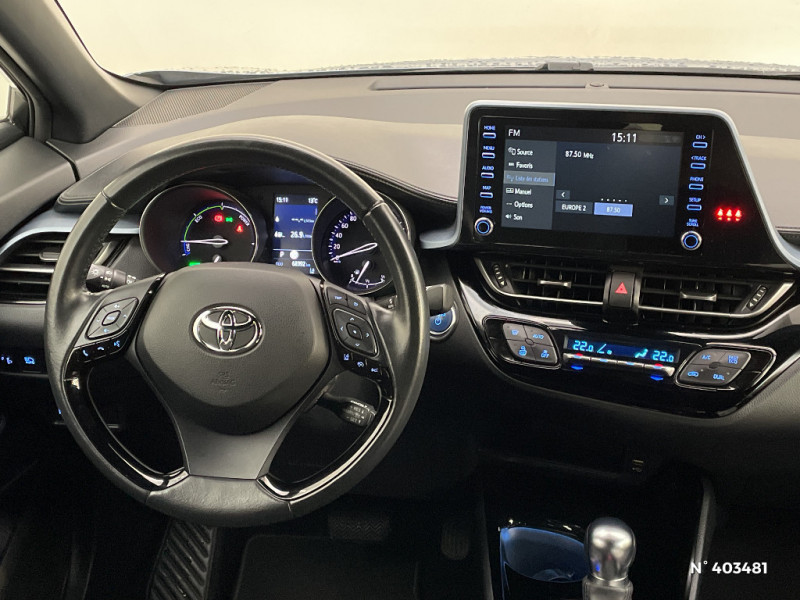 Montant central (pilier B) noir laqué / Optiques AV et AR à LED / Ordinateur de bord avec écran TFT couleur 4.2" multifonctions / Ornementation de console centrale et de portières gris célestin / Ornements de console centrale et de portières Gris Célestine / Pare-chocs AV couleur caisse / Poches aumonières au dos des sièges AV / Poignées de portes et pare-chocs AV couleur carrosserie / Poignées de portes et rétroviseurs extérieurs couleur carrosserie / Prises auxiliaire et USB / Projecteurs AV et clignotants et feux halogènes / Vitres électriques AV et AR avec descente et remontée à impulsion / 6 HP / 7 Airbags (frontaux et latéraux pour conducteur et passager AV, rideaux AV et AR et protège-genoux conducteur) / 7 Airbags (frontaux, lateraux, rideaux et un protège-genoux conducteur) / Rétroviseurs extérieurs électriques et dégivrants avec rappels de clignotants / Alarme avec fonction antidémarrage / Antenne de toit type requin / Becquet AV couleur carrosserie / Calculateur de temps de conduite en électrique / Ciel de pavillon noir / Combiné d'instrumentation avec écran couleur TFT multifonction 4" / Coques de rétroviseur couleur carrosserie / Déconnection de l'airbag passager / Eclairage d'accueil / Ecran couleur tactile multifonction 8" / Ecrous antivol / Essuie-glaces AV avec détecteur de pluie / Fermeture centralisée avec commande à distance / Accoudoir central avec compartiment de rangement / Ajustement manuel de la hauteur des phares / Filet coffre / Follow me home (feux AV à extinction différée) / Frein de stationnement électrique / Frein de statlionnement électrique / Immobiliseur avec avertisseur sonore / Indicateur de sous-gonflage des pneus / Kit de réparation anti-crevaison / Kit de sécurité / Lignes de vitres chromées / Rétroviseur intérieur électrochromatique / Rétroviseurs extérieurs électriques, dégivrants et rabattables électriquement avec rappel de clignotants / Sellerie en tissu gris sombre avec surpiqûres bleues et embossage façon diamant / Seuils de portes en aluminium / Seuils des portes aluminium / Siège conducteur manuel avec réglage lombaire électrique / Siège passager AV ajustable manuellement en hauteur / Siège passager réglable manuellement en hauteur / Sièges AV type sport avec maintiens latéraux / Système audio Toyota Touch avec radio DAB, intégration smartphone + DCM / Système AVAS (Acoustic Vehicle Alerting System) / Système d'accès (conducteur, passager et coffre) et de démarrage sans clé "Smart Entry & Start" / Système d'appel d'urgence automatique "E-Call" / Système de connectivité smartphone Apple CarPlay / Android Auto / Système de contrôle de motricité (TRC) / Système de contrôle de stabilité (VSC) + Système de contrôle de motricité (TRC) / Système de contrôle de trajectoire (VSC) / Système de freinage antiblocage (ABS), BA et EBD / Système de téléphonie Bluetooth / Système multimédia Toyota Touch avec radio DAB, écran couleur tactile 8'', bluetooth, USB / Tapis de sol en velours AV/AR / Toyota Safety Sense Système de sécurité précollision avec détection des piétons, Alerte de franchissement de ligne et détecteur de fatigue, gestion automatique des feux de route, lecture des panneaux de signalisation, régulateur de vitesse adaptatif.