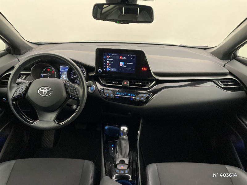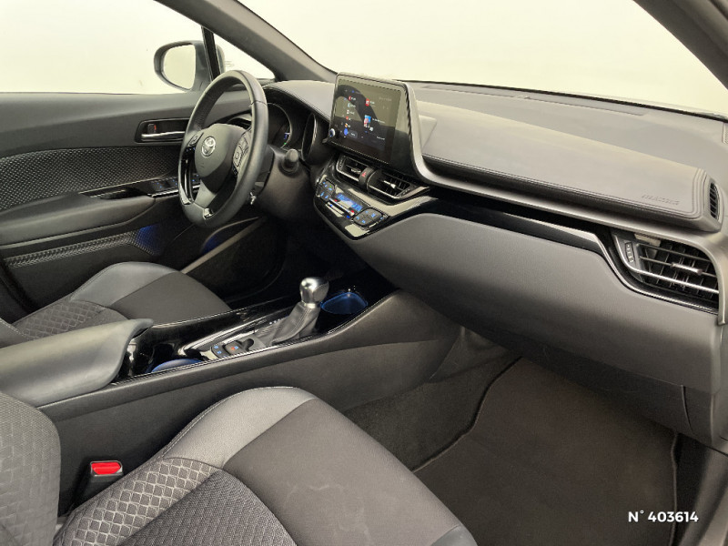 Accoudoir central avec compartiment de rangement / Ajustement manuel de la hauteur des phares / Combiné d'instrumentation avec écran couleur TFT multifonction 4" / Coques de rétroviseur couleur carrosserie / Eclairage d'accueil / Ecrous antivol / Fermeture centralisée avec commande à distance / Indicateur de sous-gonflage des pneus / Kit de réparation anti-crevaison / Kit de sécurité / Lignes de vitres chromées / Filet coffre / Frein de stationnement électrique / Montant central (pilier B) noir laqué / Optiques AV à LED / Ornements de portière Bronze / Poches aumonières au dos des sièges AV / Poignées de portes et pare-chocs AV couleur carrosserie / Projecteurs antibrouillard, clignotants et feux AR halogènes / Rétroviseur intérieur électrochromatique / Rétroviseurs extérieurs électriques et dégivrants avec rappels de clignotants / Sellerie en tissu gris sombre avec surpiqûres bleues et embossage façon diamant / Sellerie en tissu/cuir synthétique noir avec surpiqûres grises et embossage façon diamant / Seuils de portes en aluminium / Siège passager AV ajustable manuellement en hauteur / Sièges AV type sport avec maintiens latéraux / Système AVAS (Acoustic Vehicle Alerting System) / Système de connectivité smartphone Apple CarPlay / Android Auto / Système de contrôle de motricité (TRC) / Système de contrôle de trajectoire (VSC) / Système de freinage antiblocage (ABS), BA et EBD / Système multimédia Toyota Touch avec radio DAB, écran couleur tactile 8'', bluetooth, USB / Système d'accès (conducteur, passager et coffre) et de démarrage sans clé "Smart Entry & Start" / Système d'appel d'urgence automatique "E-Call" / Tapis de sol en velours AV/AR / Toyota Safety Sense Système de sécurité précollision avec détection des piétons, Alerte de franchissement de ligne et détecteur de fatigue, gestion automatique des feux de route, lecture des panneaux de signalisation, régulateur de vitesse adaptatif. / Toyota Smart Connect avec écran couleur tactile 8" haute définition, connectivité smartphone sans fil compatible AppleCar Play et Android Auto, Navigation connectée avec infotrafic en temps réel et Smart Parking (aide à la recherche de stationnement) Reconnaissance vocale avancée "Hey Toyota", 4 ans de mises à jour cartographiques et services connectés inclus / 6 HP / 7 Airbags (frontaux, lateraux, rideaux et un protège-genoux conducteur) / Alarme avec fonction antidémarrage / Antenne de toit type requin / Avertisseur de circulation AR (RCTA) / Becquet AV couleur carrosserie / Calculateur de temps de conduite en électrique / Ciel de pavillon noir