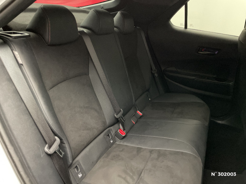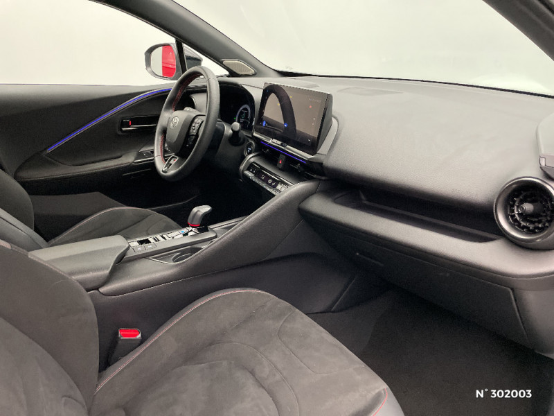 Services connectés standards MyToyota (inclus 10 ans) / Seuils de portes en aluminium siglés GR SPORT / Siège conducteur à réglages électriques avec mémorisation / Siège conducteur avec support lombaire électrique / Siège passager réglable manuellement en hauteur / Sièges AV contours enveloppants / Système audio premium JBL 9 HP / Système d'appel d'urgence automatique "E-Call" / Système de rappel pour les sièges AR (RSRS) / Système d'ouverture/fermeture et démarrage sans clé "Smart Entry & Start" / Tapis de sol, tapis de coffre, volant et clé siglé GR SPORT / Toyota Safety Sense : Système de sécurité précollision avec détection des véhicules, piétons (jour/nuit) et cyclistes, actif également dans les intersections (PCS), Alerte de franchissement de ligne avec aide au maintien dans la file, assistant de trajectoire et détecteur de fatigue (LTA), Régulateur de vitesse adaptatif intelligent allant jusqu'à l'arrêt (ACC), Lecture des panneaux de signalisation avec limiteur de vitesse (RSA) et Gestion automatique des feux de route (AHB), Système d¿arrêt d¿urgence autonome (EDSS) / Vitrage feuilleté insonorisé / Volant chauffant / Volant en cuir synthétique / Volant gainé de matière synthétique / Système multimédia Toyota Smart Connect Plus : Ecran couleur tactile 12,3" haute définition, Connectivité Bluetooth, USB et radio FM et DAB (digitale) , Système de connectivité smartphone Apple CarPlay et Android Auto (sans fil), Navigation satellitaire embarquée, Services intelligents dont navigation connectée avec infotrafic en temps réel, mises à jour cartographiques, Assistant vocal "Hey Toyota", recherche de points d¿intérêts, zones de danger (fixes) / Système multimédia Toyota Smart Connect Plus avec écran couleur tactile 12,3" haute définition avec navigation satellitaire intégrée, zones de danger et 3D city mapping / Filet coffre / Jantes en alliage 19" bi-ton noir laqué / Jantes en alliage 19" noir laqué / Kit de réparation anti-crevaison / Kit de sécurité / Montants B de portes noir laqué / Optiques AV LED avec signature lumineuse Premium / Pare-brise chauffant (sous les essuie-glaces uniquement) / Poche aumonière au dos du siège passager AV / Poignées de portes affleurantes / Purificateur d'air ionique Nanoe / Radars de stationnement AV et AR (PKSB) Lorsque vous roulez à basse vitesse ou en marche AR, les radars permettent de détecter des objets statiques (obstacles, murs...) ou en mouvement (véhicules traversant à l¿AR), le système de freinage de l¿aide au stationnement fournit alors une assistance pour réduire l¿impact. / Rétroviseur intérieur électrochromatique / Rétroviseurs extérieurs avec éclairage au sol / Sellerie mi-cuir synthétique, mi-alcantara avec surpiqûres rouges et logo GR SPORT / Sellerie Premium suédine avec surpiqûres rouges et logo GR SPORT / Services connectés de contrôle à distance MyToyota (inclus 4 ans) / Compteur numérique personnalisable 12,3" / Eclairage d'ambiance intérieur monochrome éclairage non personnalisable et non interactif : cave à pieds / rangement passager / Eclairage d¿ambiance intérieur personnalisable et interactif / Eclairage d¿ambiance intérieur personnalisable et interactif 64 couleurs sous l¿écran et panneaux de porte) / Ecrous antivol / Essuie-glaces AV avec détecteur de pluie / Feux Full LED (AV/AR et antibrouillard) / Activation automatique des feux de détresse AR (FHL) / Aide à la sortie sécurisée (SEA) Le système vous aide à prévenir les accidents en surveillant les autres usagers de la route qui s¿approchent par l¿arrière. Lorsqu¿il détecte la présence d¿un cycliste ou d¿un véhicule, un indicateur lumineux s¿affiche dans les rétroviseurs extérieurs et sur l¿écran multi-informations et une alarme sonore alerte les occupants. / Alarme avec fonction antidémarrage / Avertisseur d'angles morts (BSM) Lorsque les capteurs détectent un véhicule dans votre angle mort latéral, un indicateur lumineux s¿éclaire sur le rétroviseur extérieur correspondant. Si vous mettez votre clignotant afin d¿indiquer un changement de voie alors qu¿un véhicule est dans votre angle mort, un indicateur lumineux apparaît dans le rétroviseur correspondant pour vous avertir du danger. / Avertisseur de circulation AR (RCTA) Cet avertisseur vous permet grâce aux capteurs d¿angles morts de repérer un véhicule arrivant de côté quand vous sortez en marche AR d¿une place de parking. S¿il détecte un risque de collision, le système freine automatiquement et stoppe le véhicule. / Caméra de recul avec lave-caméra / Carrosserie bi-ton / Clé digitale