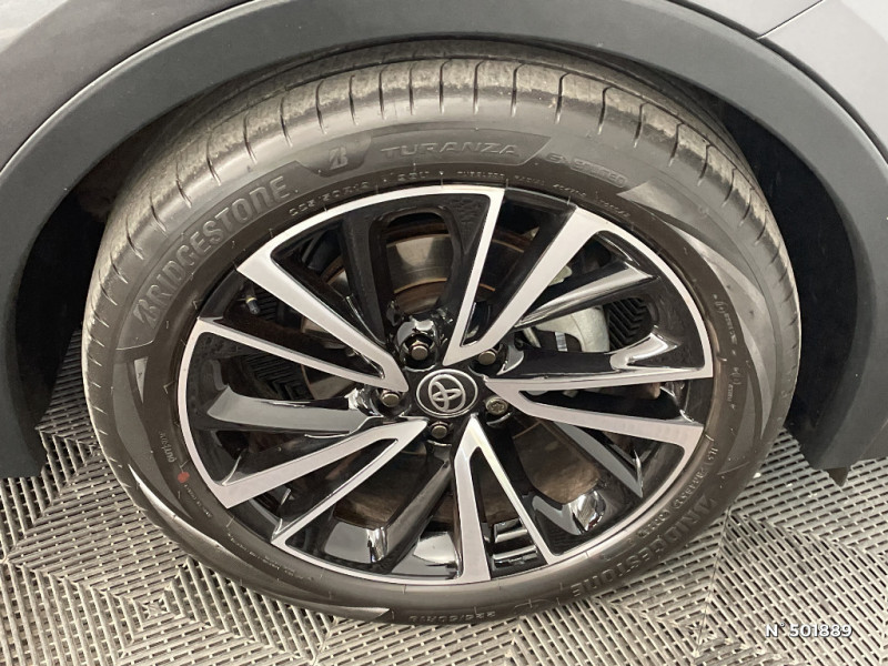 Sellerie Premium suédine et tissu avec surpiqûres bleues et blanches / Toyota Safety Sense : Système de sécurité précollision avec détection des véhicules, piétons (jour/nuit) et cyclistes, actif également dans les intersections (PCS), Alerte de franchissement de ligne avec aide au maintien dans la file, assistant de trajectoire et détecteur de fatigue (LTA), Régulateur de vitesse adaptatif intelligent allant jusqu'à l'arrêt (ACC), Lecture des panneaux de signalisation avec limiteur de vitesse (RSA) et Gestion automatique des feux de route (AHB), Système d¿arrêt d¿urgence autonome (EDSS) / Volant chauffant / Système multimédia Toyota Smart Connect Plus : Ecran couleur tactile 12,3" haute définition, Connectivité Bluetooth, USB et radio FM et DAB (digitale) , Système de connectivité smartphone Apple CarPlay et Android Auto (sans fil), Navigation satellitaire embarquée, Services intelligents dont navigation connectée avec infotrafic en temps réel, mises à jour cartographiques, Assistant vocal "Hey Toyota", recherche de points d¿intérêts, zones de danger (fixes) / Rétroviseur intérieur électrochromatique / Système audio premium JBL 9 HP / Siège conducteur à réglages électriques avec mémorisation / Essuie-glaces AV avec détecteur de pluie / Compteur numérique personnalisable 12,3" / Avertisseur de circulation AR (RCTA) Cet avertisseur vous permet grâce aux capteurs d¿angles morts de repérer un véhicule arrivant de côté quand vous sortez en marche AR d¿une place de parking. S¿il détecte un risque de collision, le système freine automatiquement et stoppe le véhicule. / Avertisseur d'angles morts (BSM) Lorsque les capteurs détectent un véhicule dans votre angle mort latéral, un indicateur lumineux s¿éclaire sur le rétroviseur extérieur correspondant. Si vous mettez votre clignotant afin d¿indiquer un changement de voie alors qu¿un véhicule est dans votre angle mort, un indicateur lumineux apparaît dans le rétroviseur correspondant pour vous avertir du danger. / Activation automatique des feux de détresse AR (FHL) / Radars de stationnement AV et AR (PKSB) Lorsque vous roulez à basse vitesse ou en marche AR, les radars permettent de détecter des objets statiques (obstacles, murs...) ou en mouvement (véhicules traversant à l¿AR), le système de freinage de l¿aide au stationnement fournit alors une assistance pour réduire l¿impact. / Purificateur d'air ionique Nanoe / Pare-brise chauffant (sous les essuie-glaces uniquement) / Optiques AV LED avec signature lumineuse Premium / Feux Full LED (AV/AR et antibrouillard) / Jantes en alliage 19" bi-ton noir et aluminium