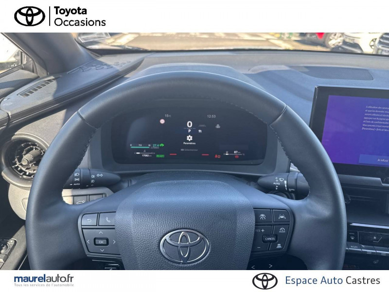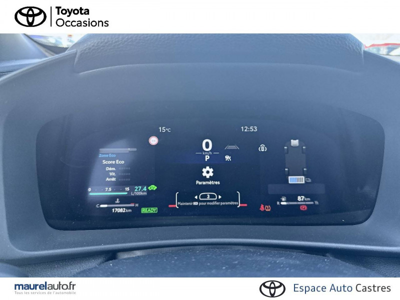 6 HP / Activation automatique des feux de détresse AR (FHL) / Aide à la sortie sécurisée (SEA) Le système vous aide à prévenir les accidents en surveillant les autres usagers de la route qui s'approchent par l'arrière. Lorsqu'il détecte la présence d'un cycliste ou d'un véhicule, un indicateur lumineux s'affiche dans les rétroviseurs extérieurs et sur l'écran multi-informations et une alarme sonore alerte les occupants. / Alarme avec fonction antidémarrage / Avertisseur d'angles morts (BSM) Lorsque les capteurs détectent un véhicule dans votre angle mort latéral, un indicateur lumineux s'éclaire sur le rétroviseur extérieur correspondant. Si vous mettez votre clignotant afin d'indiquer un changement de voie alors qu'un véhicule est dans votre angle mort, un indicateur lumineux apparaît dans le rétroviseur correspondant pour vous avertir du danger. / Avertisseur de circulation AR (RCTA) Cet avertisseur vous permet grâce aux capteurs d'angles morts de repérer un véhicule arrivant de côté quand vous sortez en marche AR d'une place de parking. S'il détecte un risque de collision, le système freine automatiquement et stoppe le véhicule. / Carrosserie monoton / Compteur numérique personnalisable 12,3" / Eclairage d'ambiance intérieur monochrome éclairage non personnalisable et non interactif : cave à pieds / rangement passager / Ecrous antivol / Essuie-glaces AV avec détecteur de pluie / Filet coffre / Jantes en alliage 18" bi-ton noir et aluminium / Kit de réparation anti-crevaison / Kit de sécurité / Montants B de portes noir laqué / Optiques AV full-LED / Pare-brise chauffant (sous les essuie-glaces uniquement) / Poignées de portes affleurantes / Radars de stationnement AV et AR (PKSB) Lorsque vous roulez à basse vitesse ou en marche AR, les radars permettent de détecter des objets statiques (obstacles, murs...) ou en mouvement (véhicules traversant à l'AR), le système de freinage de l'aide au stationnement fournit alors une assistance pour réduire l'impact. / Rétroviseur intérieur électrochromatique / Rétroviseurs extérieurs avec éclairage au sol / Sellerie tissu gris foncé avec surpiqûres cuivre / Services connectés de contrôle à distance MyToyota (inclus 4 ans) / Services connectés standards MyToyota (inclus 10 ans) / Seuils de portes en aluminium / Siège conducteur avec support lombaire électrique / Siège passager réglable manuellement en hauteur / Système d'appel d'urgence automatique "E-Call" / Système de rappel pour les sièges AR (RSRS) / Système d'ouverture/fermeture et démarrage sans clé "Smart Entry & Start" / Système multimédia Toyota Smart Connect : Ecran couleur tactile 8" haute définition,Connectivité Bluetooth, USB et radio FM et DAB (digitale) Connectivité smartphone Apple CarPlay et Android Auto (sans fil), Navigation connectée avec infotrafic en temps réel et Smart Parking (aide à la recherche de stationnement), Reconnaissance vocale avancée "Hey Toyota", 4 ans de mises à jour cartographiques et services connectés inclus / Toyota Safety Sense : Système de sécurité précollision avec détection des véhicules, piétons (jour/nuit) et cyclistes, actif également dans les intersections (PCS), Alerte de franchissement de ligne avec aide au maintien dans la file, assistant de trajectoire et détecteur de fatigue (LTA), Régulateur de vitesse adaptatif intelligent allant jusqu'à l'arrêt (ACC), Lecture des panneaux de signalisation avec limiteur de vitesse (RSA) et Gestion automatique des feux de route (AHB), Système d'arrêt d'urgence autonome (EDSS) / Volant chauffant / Volant en cuir synthétique