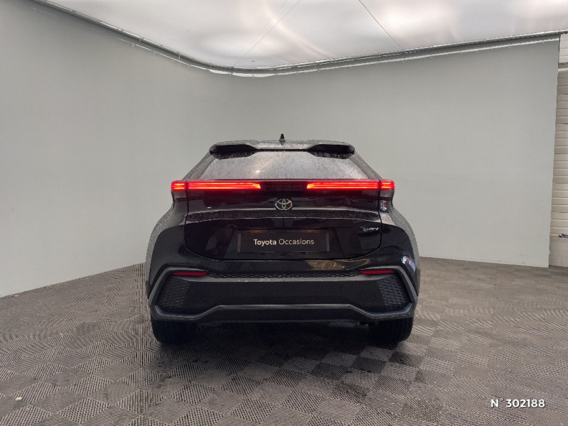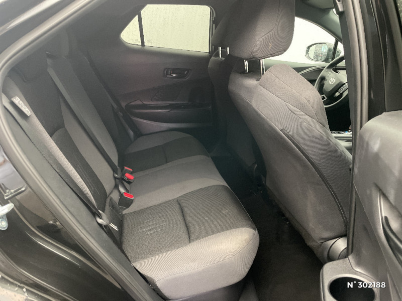 Activation automatique des feux de détresse AR (FHL) / Alarme avec fonction antidémarrage / Assistant visuel de conduite (DMC) Ce système utilise une caméra située audessus du volant pour surveiller le niveau d¿alerte et l¿état du conducteur. Le système envoie un avertissement s¿il détecte un état anormal, comme de la fatigue. Ces activités sont utilisées pour améliorer la performance du système d¿arrêt d¿urgence autonome (EDSS) à travers la détection précoce de la distraction. / Avertisseur d'angles morts (BSM) Lorsque les capteurs détectent un véhicule dans votre angle mort latéral, un indicateur lumineux s¿éclaire sur le rétroviseur extérieur correspondant. Si vous mettez votre clignotant afin d¿indiquer un changement de voie alors qu¿un véhicule est dans votre angle mort, un indicateur lumineux apparaît dans le rétroviseur correspondant pour vous avertir du danger. / Avertisseur de circulation AR (RCTA) Cet avertisseur vous permet grâce aux capteurs d¿angles morts de repérer un véhicule arrivant de côté quand vous sortez en marche AR d¿une place de parking. S¿il détecte un risque de collision, le système freine automatiquement et stoppe le véhicule. / Boîte automatique à variation continue / Carrosserie monoton / Compteur numérique personnalisable 12,3" / Contrôle de traction (TCS) / Eclairage d'ambiance intérieur monochrome éclairage non personnalisable et non interactif : cave à pieds / rangement passager / Ecrous antivol / Electrostabilisateur programmé (ESP) / Essuie-glaces AV avec détecteur de pluie / Feux Full LED (AV/AR et antibrouillard) / Filet coffre / Jantes en alliage 18" bi-ton gris anthracite mat et aluminium / Kit de réparation anti-crevaison / Kit de sécurité / Montants B de portes noir laqué / Optiques AV full-LED / Pare-brise chauffant (sous les essuie-glaces uniquement) / Poignées de portes affleurantes / Radars de stationnement AV et AR (PKSB) Lorsque vous roulez à basse vitesse ou en marche AR, les radars permettent de détecter des objets statiques (obstacles, murs...) ou en mouvement (véhicules traversant à l¿AR), le système de freinage de l¿aide au stationnement fournit alors une assistance pour réduire l¿impact. / Rétroviseur intérieur électrochromatique / Rétroviseurs extérieurs avec éclairage au sol / Sellerie tissu bi-ton gris anthracite avec surpiqûres blanches / Services connectés de contrôle à distance MyToyota (inclus 4 ans) / Services connectés standards MyToyota (inclus 10 ans) / Seuils de portes en aluminium / Siège conducteur avec support lombaire électrique / Siège passager réglable manuellement en hauteur / Système d'appel d'urgence automatique "E-Call" / Système de rappel pour les sièges AR (RSRS) / Système d'ouverture/fermeture et démarrage sans clé "Smart Entry & Start" / Système multimédia Toyota Smart Connect : Écran couleur tactile 8 haute définition, Connectivité Bluetooth, USB et radio, FM et DAB (digitale), Système de connectivité smartphone Apple CarPlay et Android Auto (sans fil), Services intelligents dont navigation connectée avec infotrafic en temps réel, mises à jour cartographiques, assitant vocal Hey Toyota et recherche de points d¿intérêts (inclus 4 ans) / Toyota Safety Sense : Système de sécurité précollision avec détection des véhicules, piétons (jour/nuit) et cyclistes, actif également dans les intersections (PCS), Alerte de franchissement de ligne avec aide au maintien dans la file, assistant de trajectoire et détecteur de fatigue (LTA), Régulateur de vitesse adaptatif intelligent allant jusqu'à l'arrêt (ACC), Lecture des panneaux de signalisation avec limiteur de vitesse (RSA) et Gestion automatique des feux de route (AHB), Système d¿arrêt d¿urgence autonome (EDSS) / Volant chauffant / Volant gainé de matière synthétique / 6 HP / Aide à la sortie sécurisée (SEA) Le système vous aide à prévenir les accidents en surveillant les autres usagers de la route qui s¿approchent par l¿arrière. Lorsqu¿il détecte la présence d¿un cycliste ou d¿un véhicule, un indicateur lumineux s¿affiche dans les rétroviseurs extérieurs et sur l¿écran multi-informations et une alarme sonore alerte les occupants.