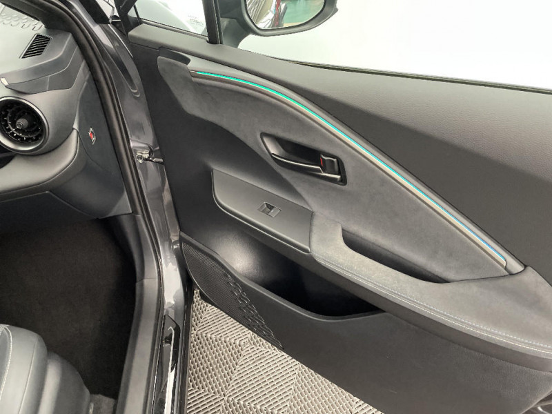 Système audio premium JBL 9 HP / Toyota Safety Sense : Système de sécurité précollision avec détection des véhicules, piétons (jour/nuit) et cyclistes, actif également dans les intersections (PCS), Alerte de franchissement de ligne avec aide au maintien dans la file, assistant de trajectoire et détecteur de fatigue (LTA), Régulateur de vitesse adaptatif intelligent allant jusqu'à l'arrêt (ACC), Lecture des panneaux de signalisation avec limiteur de vitesse (RSA) et Gestion automatique des feux de route (AHB), Système d¿arrêt d¿urgence autonome (EDSS) / Volant chauffant / Siège conducteur à réglages électriques avec mémorisation / Sellerie Premium suédine et tissu avec surpiqûres bleues et blanches / Système multimédia Toyota Smart Connect Plus : Ecran couleur tactile 12,3" haute définition, Connectivité Bluetooth, USB et radio FM et DAB (digitale) , Système de connectivité smartphone Apple CarPlay et Android Auto (sans fil), Navigation satellitaire embarquée, Services intelligents dont navigation connectée avec infotrafic en temps réel, mises à jour cartographiques, Assistant vocal "Hey Toyota", recherche de points d¿intérêts, zones de danger (fixes) / Rétroviseur intérieur électrochromatique / Compteur numérique personnalisable 12,3" / Avertisseur de circulation AR (RCTA) Cet avertisseur vous permet grâce aux capteurs d¿angles morts de repérer un véhicule arrivant de côté quand vous sortez en marche AR d¿une place de parking. S¿il détecte un risque de collision, le système freine automatiquement et stoppe le véhicule. / Avertisseur d'angles morts (BSM) Lorsque les capteurs détectent un véhicule dans votre angle mort latéral, un indicateur lumineux s¿éclaire sur le rétroviseur extérieur correspondant. Si vous mettez votre clignotant afin d¿indiquer un changement de voie alors qu¿un véhicule est dans votre angle mort, un indicateur lumineux apparaît dans le rétroviseur correspondant pour vous avertir du danger. / Activation automatique des feux de détresse AR (FHL) / Radars de stationnement AV et AR (PKSB) Lorsque vous roulez à basse vitesse ou en marche AR, les radars permettent de détecter des objets statiques (obstacles, murs...) ou en mouvement (véhicules traversant à l¿AR), le système de freinage de l¿aide au stationnement fournit alors une assistance pour réduire l¿impact. / Purificateur d'air ionique Nanoe / Pare-brise chauffant (sous les essuie-glaces uniquement) / Optiques AV LED avec signature lumineuse Premium / Jantes en alliage 19" bi-ton noir et aluminium / Essuie-glaces AV avec détecteur de pluie / Feux Full LED (AV/AR et antibrouillard)