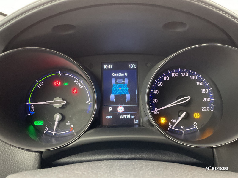 Combiné d'instrumentation avec écran couleur TFT multifonction 4,2" / Antenne de toit type requin / Essuie-glace AV à détecteur de pluie / Indicateur de sous-gonflage des pneus / Kit de réparation anti-crevaison / Radars de stationnement AV/AR anticollision (ICS) / Rétroviseur intérieur électrochromatique / Sellerie en tissu gris sombre avec surpiqûres grises et embossage façon diamant / Système audio Toyota Touch avec radio DAB, écran couleur tactile 8" multifonction, système de téléphonie Bluetooth et connectique auxiliaire/USB / Système d'accès (conducteur, passager et coffre) et de démarrage sans clé "Smart Entry & Start" / Système de connectivité smartphone Android Auto filaire / 7 Airbags (frontaux et latéraux pour conducteur et passager AV, rideaux AV et AR et protège-genoux conducteur, avec déconnexion de l´airbag passager) / 6 HP / Vitres électriques AV/AR, descente et remontée à impulsion / Toyota Safety Sense : Système de sécurité précollision avec détection des piétons (jour/nuit) et des cyclistes, actif également dans les intersections, Système d'aide aux manoeuvres d'évitement d'urgence avec détection des véhicules, piétons et cycliste, Alerte de franchissement de ligne avec aide au maintien dans la file, assistant de trajectoire et détecteur de fatigue, Gestion automatique des feux de route, Lecture des panneaux de signalisation, Régulateur de vitesse adaptatif intelligent allant jusqu'à l'arrêt et Limiteur de vitesse / Systèmes de contrôle de stabilité (VSC), de motricité (TRC) et direction assistée (EPS) / Système de connectivité smartphone Apple CarPlay filaire