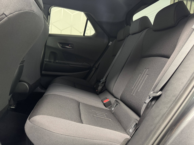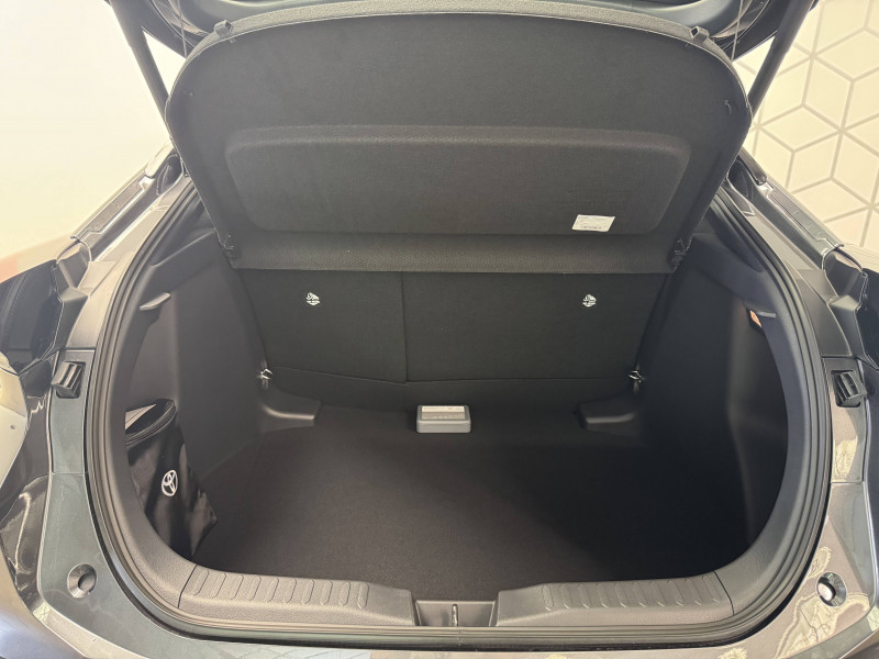 6 HP / Activation automatique des feux de détresse AR (FHL) / Aide à la sortie sécurisée (SEA) Le système vous aide à prévenir les accidents en surveillant les autres usagers de la route qui s'approchent par l'arrière. Lorsqu'il détecte la présence d'un cycliste ou d'un véhicule, un indicateur lumineux s'affiche dans les rétroviseurs extérieurs et sur l'écran multi-informations et une alarme sonore alerte les occupants. / Alarme avec fonction antidémarrage / Avertisseur d'angles morts (BSM) Lorsque les capteurs détectent un véhicule dans votre angle mort latéral, un indicateur lumineux s'éclaire sur le rétroviseur extérieur correspondant. Si vous mettez votre clignotant afin d'indiquer un changement de voie alors qu'un véhicule est dans votre angle mort, un indicateur lumineux apparaît dans le rétroviseur correspondant pour vous avertir du danger. / Avertisseur de circulation AR (RCTA) Cet avertisseur vous permet grâce aux capteurs d'angles morts de repérer un véhicule arrivant de côté quand vous sortez en marche AR d'une place de parking. S'il détecte un risque de collision, le système freine automatiquement et stoppe le véhicule. / Carrosserie monoton / Compteur numérique personnalisable 12,3" / Eclairage d'ambiance intérieur monochrome éclairage non personnalisable et non interactif : cave à pieds / rangement passager / Ecrous antivol / Essuie-glaces AV avec détecteur de pluie / Filet coffre / Jantes en alliage 18" bi-ton noir et aluminium / Kit de réparation anti-crevaison / Kit de sécurité / Montants B de portes noir laqué / Optiques AV full-LED / Pare-brise chauffant (sous les essuie-glaces uniquement) / Poignées de portes affleurantes / Radars de stationnement AV et AR (PKSB) Lorsque vous roulez à basse vitesse ou en marche AR, les radars permettent de détecter des objets statiques (obstacles, murs...) ou en mouvement (véhicules traversant à l'AR), le système de freinage de l'aide au stationnement fournit alors une assistance pour réduire l'impact. / Rétroviseur intérieur électrochromatique / Rétroviseurs extérieurs avec éclairage au sol / Sellerie tissu gris foncé avec surpiqûres cuivre / Services connectés de contrôle à distance MyToyota (inclus 4 ans) / Services connectés standards MyToyota (inclus 10 ans) / Seuils de portes en aluminium / Siège conducteur avec support lombaire électrique / Siège passager réglable manuellement en hauteur / Système d'appel d'urgence automatique "E-Call" / Système de rappel pour les sièges AR (RSRS) / Système d'ouverture/fermeture et démarrage sans clé "Smart Entry & Start" / Système multimédia Toyota Smart Connect : Écran couleur tactile 8 haute définition, Connectivité Bluetooth, USB et radio, FM et DAB (digitale), Système de connectivité smartphone Apple CarPlay et Android Auto (sans fil), Services intelligents dont navigation connectée avec infotrafic en temps réel, mises à jour cartographiques, assitant vocal Hey Toyota et recherche de points d'intérêts (inclus 4 ans) / Toyota Safety Sense : Système de sécurité précollision avec détection des véhicules, piétons (jour/nuit) et cyclistes, actif également dans les intersections (PCS), Alerte de franchissement de ligne avec aide au maintien dans la file, assistant de trajectoire et détecteur de fatigue (LTA), Régulateur de vitesse adaptatif intelligent allant jusqu'à l'arrêt (ACC), Lecture des panneaux de signalisation avec limiteur de vitesse (RSA) et Gestion automatique des feux de route (AHB), Système d'arrêt d'urgence autonome (EDSS) / Volant chauffant / Volant gainé de matière synthétique
