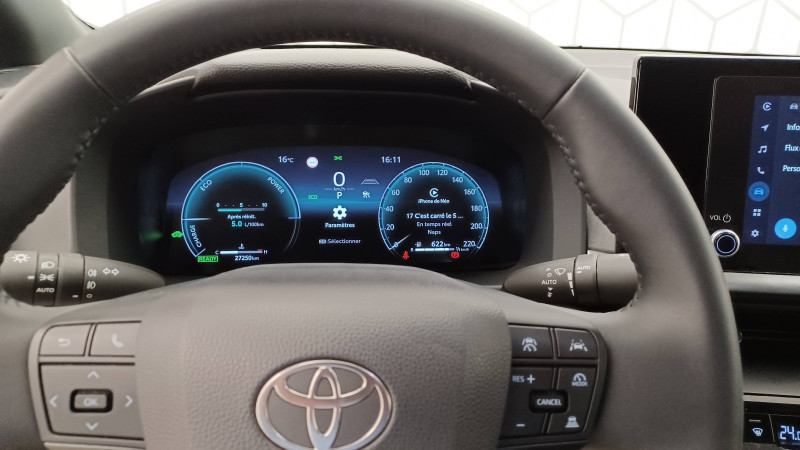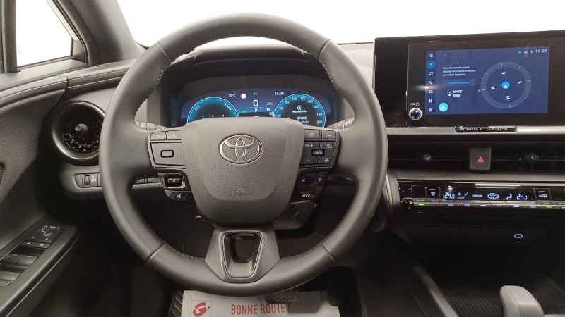 6 HP / Activation automatique des feux de détresse AR (FHL) / Aide à la sortie sécurisée (SEA) Le système vous aide à prévenir les accidents en surveillant les autres usagers de la route qui s'approchent par l'arrière. Lorsqu'il détecte la présence d'un cycliste ou d'un véhicule, un indicateur lumineux s'affiche dans les rétroviseurs extérieurs et sur l'écran multi-informations et une alarme sonore alerte les occupants. / Alarme avec fonction antidémarrage / Avertisseur d'angles morts (BSM) Lorsque les capteurs détectent un véhicule dans votre angle mort latéral, un indicateur lumineux s'éclaire sur le rétroviseur extérieur correspondant. Si vous mettez votre clignotant afin d'indiquer un changement de voie alors qu'un véhicule est dans votre angle mort, un indicateur lumineux apparaît dans le rétroviseur correspondant pour vous avertir du danger. / Carrosserie monoton / Compteur numérique personnalisable 12,3" / Ecrous antivol / Essuie-glaces AV avec détecteur de pluie / Kit de réparation anti-crevaison / Kit de sécurité / Optiques AV full-LED / Poignées de portes affleurantes / Rétroviseur intérieur électrochromatique / Rétroviseurs extérieurs avec éclairage au sol / Sellerie tissu gris foncé / Services connectés de contrôle à distance MyToyota (inclus 4 ans) / Services connectés standards MyToyota (inclus 10 ans) / Système d'appel d'urgence automatique "E-Call" / Système de rappel pour les sièges AR (RSRS) / Système d'ouverture/fermeture et démarrage sans clé "Smart Entry & Start" / Système multimédia Toyota Smart Connect : Ecran couleur tactile 8" haute définition,Connectivité Bluetooth, USB et radio FM et DAB (digitale) Connectivité smartphone Apple CarPlay et Android Auto (sans fil), Navigation connectée avec infotrafic en temps réel et Smart Parking (aide à la recherche de stationnement), Reconnaissance vocale avancée "Hey Toyota", 4 ans de mises à jour cartographiques et services connectés inclus / Toyota Safety Sense : Système de sécurité précollision avec détection des véhicules, piétons (jour/nuit) et cyclistes, actif également dans les intersections (PCS), Alerte de franchissement de ligne avec aide au maintien dans la file, assistant de trajectoire et détecteur de fatigue (LTA), Régulateur de vitesse adaptatif intelligent allant jusqu'à l'arrêt (ACC), Lecture des panneaux de signalisation avec limiteur de vitesse (RSA) et Gestion automatique des feux de route (AHB), Système d'arrêt d'urgence autonome (EDSS) / Volant en cuir synthétique