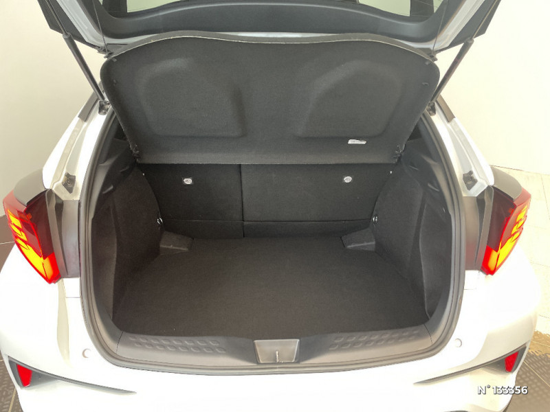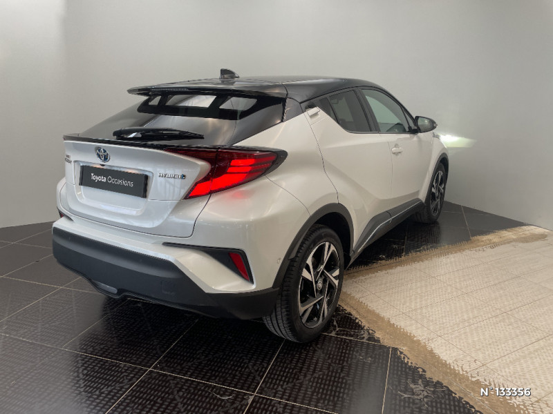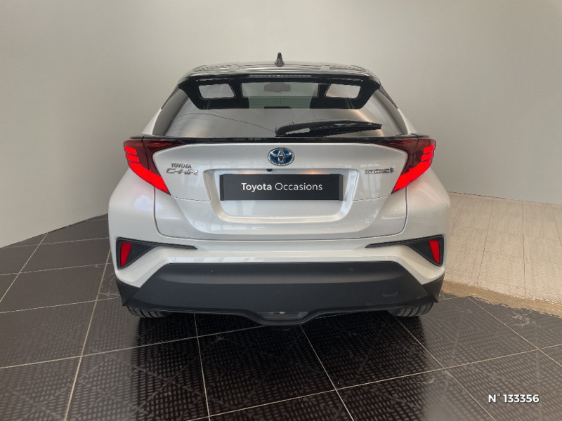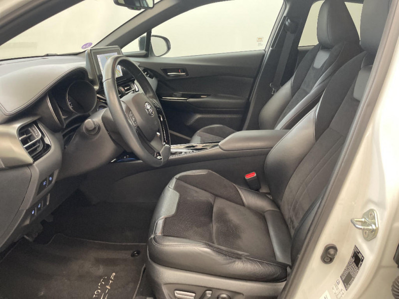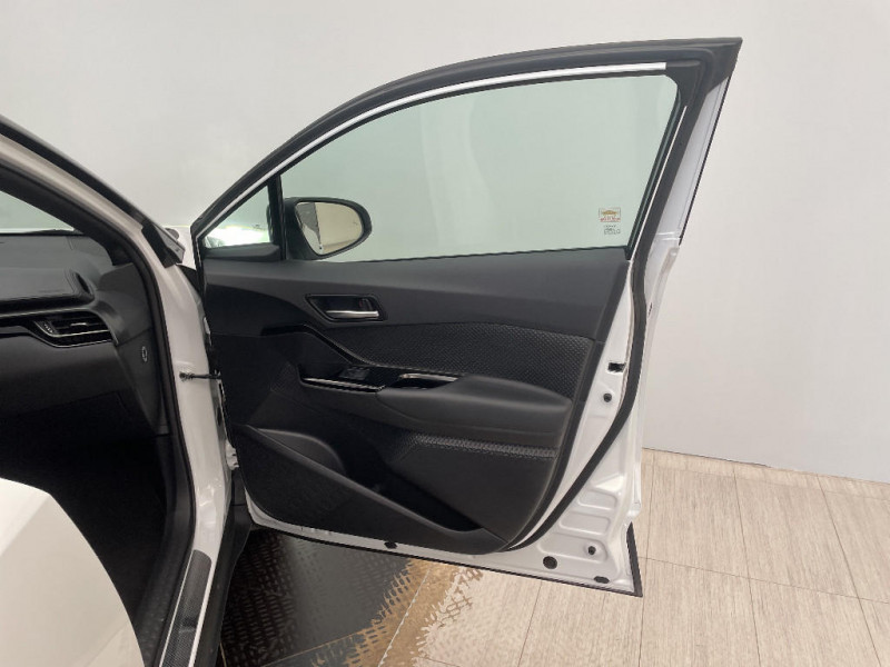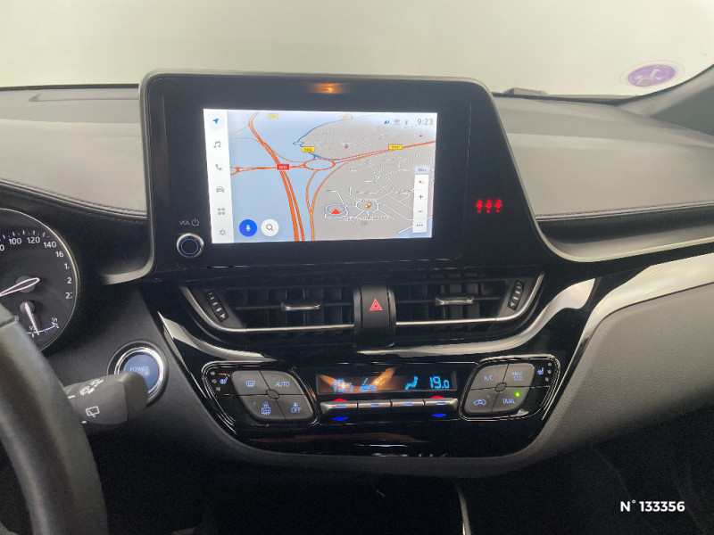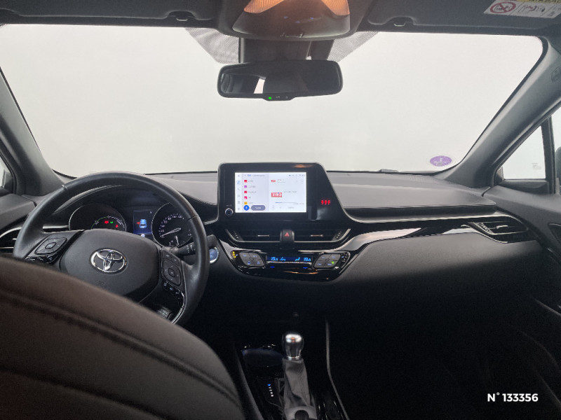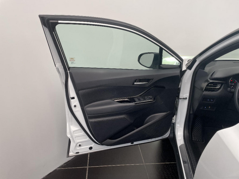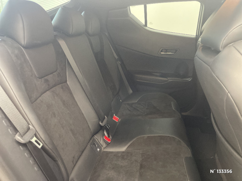 Optiques AV LED avec signature lumineuse Premium et AR à LED avec clignotant séquentiel / Ornements de portière Bronze / Poches aumonières au dos des sièges AV / Poignées de portes et pare-chocs AV couleur carrosserie / Projecteurs adaptatifs avec ajustement automatique de la hauteur des phares / Rétroviseur intérieur électrochromatique / Rétroviseurs extérieurs avec projection au sol du logo Toyota C-HR / Rétroviseurs extérieurs électriques et dégivrants avec rappels de clignotants / Revêtement supérieur de planche de bord et d'accoudoir central noir / Sellerie en cuir Alcantara noir avec embossage Toyota C-HR / Siège conducteur à réglage lombaire électrique / Sièges AV type sport avec maintiens latéraux / Système AVAS (Acoustic Vehicle Alerting System) / Système d'accès (conducteur, passager et coffre) et de démarrage sans clé "Smart Entry & Start" / Système d'aide au stationnement intelligent S-IPA / Système d'appel d'urgence automatique "E-Call" / Système de connectivité smartphone Apple CarPlay / Android Auto / Système de contrôle de motricité (TRC) / Système de contrôle de trajectoire (VSC) / Système de freinage antiblocage (ABS), BA et EBD / Système multimédia Toyota Touch avec radio DAB, écran couleur tactile 8'', bluetooth, USB / Tapis de sol en velours AV/AR / Toyota Safety Sense Système de sécurité précollision avec détection des piétons, Alerte de franchissement de ligne et détecteur de fatigue, gestion automatique des feux de route, lecture des panneaux de signalisation, régulateur de vitesse adaptatif. / Toyota Smart Connect Plus: Toyota Smart Connect + navigation satellitaire, zone de danger fixes / Volant chauffant / 7 Airbags (frontaux, lateraux, rideaux et un protège-genoux conducteur) / 9 HP / Siège conducteur à réglages manuels avec réglage lombaire électrique / Siège passager AV ajustable manuellement en hauteur / Accoudoir central avec compartiment de rangement / Alarme avec fonction antidémarrage / Antenne de toit type requin / Avertisseurs d'angles morts et de circulation AR avec freinage d'urgence auto / Becquet AV couleur carrosserie / Calculateur de temps de conduite en électrique / Carrosserie bi-ton avec toit noir / Ciel de toit gris clair / Combiné d'instrumentation avec écran couleur TFT multifonction 4" / Coques de rétroviseurs extérieurs noires / Eclairage d'accueil / Ecrous antivol / Fermeture centralisée avec commande à distance / Feu de recul central à LED sur bouclier AR / Feux AR à LED avec clignotants séquentiels / Filet coffre / Frein de stationnement électrique / Indicateur de sous-gonflage des pneus / Kit de réparation anti-crevaison / Kit de sécurité / Lignes de vitres chromées / Montant central (pilier B) noir laqué
