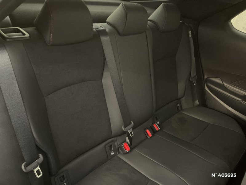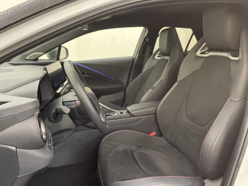 Siège conducteur avec support lombaire électrique / Siège passager réglable manuellement en hauteur / Sièges AV contours enveloppants / Système audio premium JBL 9 HP / Système d'appel d'urgence automatique "E-Call" / Système de rappel pour les sièges AR (RSRS) / Système d'ouverture/fermeture et démarrage sans clé "Smart Entry & Start" / Activation automatique des feux de détresse AR (FHL) / Aide à la sortie sécurisée (SEA) Le système vous aide à prévenir les accidents en surveillant les autres usagers de la route qui s¿approchent par l¿arrière. Lorsqu¿il détecte la présence d¿un cycliste ou d¿un véhicule, un indicateur lumineux s¿affiche dans les rétroviseurs extérieurs et sur l¿écran multi-informations et une alarme sonore alerte les occupants. / Alarme avec fonction antidémarrage / Avertisseur d'angles morts (BSM) Lorsque les capteurs détectent un véhicule dans votre angle mort latéral, un indicateur lumineux s¿éclaire sur le rétroviseur extérieur correspondant. Si vous mettez votre clignotant afin d¿indiquer un changement de voie alors qu¿un véhicule est dans votre angle mort, un indicateur lumineux apparaît dans le rétroviseur correspondant pour vous avertir du danger. / Avertisseur de circulation AR (RCTA) Cet avertisseur vous permet grâce aux capteurs d¿angles morts de repérer un véhicule arrivant de côté quand vous sortez en marche AR d¿une place de parking. S¿il détecte un risque de collision, le système freine automatiquement et stoppe le véhicule. / Boîte automatique à variation continue / Caméra de recul avec lave-caméra / Carrosserie bi-ton / Clé digitale / Compteur numérique personnalisable 12,3" / Contrôle de traction (TCS) / Eclairage d'ambiance intérieur monochrome éclairage non personnalisable et non interactif : cave à pieds / rangement passager / Eclairage d¿ambiance intérieur personnalisable et interactif / Eclairage d¿ambiance intérieur personnalisable et interactif 64 couleurs sous l¿écran et panneaux de porte) / Ecrous antivol / Electrostabilisateur programmé (ESP) / Essuie-glaces AV avec détecteur de pluie / Feux Full LED (AV/AR et antibrouillard) / Filet coffre / Jantes en alliage 19" bi-ton noir laqué / Système multimédia Toyota Smart Connect Plus : Ecran couleur tactile 12,3" haute définition, Connectivité Bluetooth, USB et radio FM et DAB (digitale) , Système de connectivité smartphone Apple CarPlay et Android Auto (sans fil), Navigation satellitaire embarquée, Services intelligents dont navigation connectée avec infotrafic en temps réel, mises à jour cartographiques, Assistant vocal "Hey Toyota", recherche de points d¿intérêts, zones de danger (fixes) / Système multimédia Toyota Smart Connect Plus avec écran couleur tactile 12,3" haute définition avec navigation satellitaire intégrée, zones de danger et 3D city mapping / Tapis de sol, tapis de coffre, volant et clé siglé GR SPORT / Toyota Safety Sense : Système de sécurité précollision avec détection des véhicules, piétons (jour/nuit) et cyclistes, actif également dans les intersections (PCS), Alerte de franchissement de ligne avec aide au maintien dans la file, assistant de trajectoire et détecteur de fatigue (LTA), Régulateur de vitesse adaptatif intelligent allant jusqu'à l'arrêt (ACC), Lecture des panneaux de signalisation avec limiteur de vitesse (RSA) et Gestion automatique des feux de route (AHB), Système d¿arrêt d¿urgence autonome (EDSS) / Vitrage feuilleté insonorisé / Volant chauffant / Volant en cuir synthétique / Volant gainé de matière synthétique / Jantes en alliage 19" noir laqué / Kit de réparation anti-crevaison / Kit de sécurité / Montants B de portes noir laqué / Optiques AV LED avec signature lumineuse Premium / Pare-brise chauffant (sous les essuie-glaces uniquement) / Poche aumonière au dos du siège passager AV / Poignées de portes affleurantes / Purificateur d'air ionique Nanoe / Radars de stationnement AV et AR (PKSB) Lorsque vous roulez à basse vitesse ou en marche AR, les radars permettent de détecter des objets statiques (obstacles, murs...) ou en mouvement (véhicules traversant à l¿AR), le système de freinage de l¿aide au stationnement fournit alors une assistance pour réduire l¿impact. / Rétroviseur intérieur électrochromatique / Rétroviseurs extérieurs avec éclairage au sol / Sellerie mi-cuir synthétique, mi-alcantara avec surpiqûres rouges et logo GR SPORT / Sellerie Premium suédine avec surpiqûres rouges et logo GR SPORT / Services connectés de contrôle à distance MyToyota (inclus 4 ans) / Services connectés standards MyToyota (inclus 10 ans) / Seuils de portes en aluminium siglés GR SPORT / Siège conducteur à réglages électriques avec mémorisation