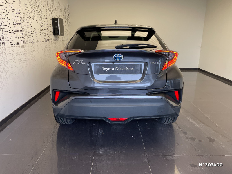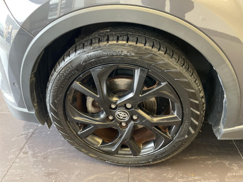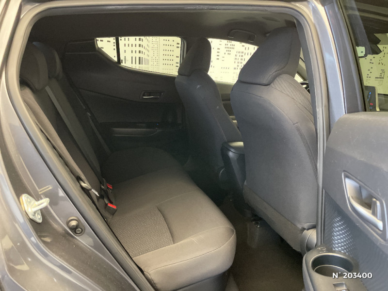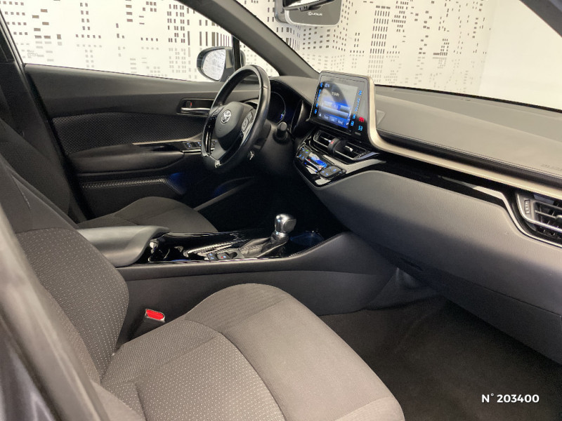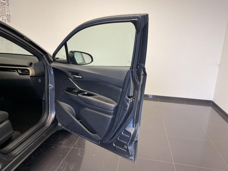 Rétroviseur intérieur anti-éblouissement / Rétroviseurs extérieurs rabattables automatiquement avec projection au sol du logo Toyota C-HR / Sellerie tissu gris foncé / Sièges AV type sport avec maintiens latéraux / Support lombaire du siège conducteur (électrique) / Système d'aide au stationnement intelligent / Système de contrôle de stabilité (VSC) + Système de contrôle de motricité (TRC) / Système de freinage antiblocage ABS / Système de téléphonie Bluetooth / Système d'ouverture/fermeture et démarrage sans clé "Smart Entry & Start" (conducteur, passager et coffre) / Système multimédia Toyota Touch 2 (Système audio avec radio) / Toyota Safety Sense Système de sécurité précollision avec détection des piétons, Alerte de franchissement de ligne et détecteur de fatigue, gestion automatique des feux de route, lecture des panneaux de signalisation, régulateur de vitesse adaptatif. / 6 HP / 7 Airbags (frontaux et latéraux pour conducteur et passager AV, rideaux AV et AR et protège-genoux conducteur) / Follow me home (feux AV à extinction différée) / Illumination des contre-portes / Indicateur de perte de pression des pneus / Kit de réparation anti-crevaison / Lignes de vitres chromées / Montant central (pilier B) noir laqué / Ordinateur de bord avec écran TFT couleur 4.2" multifonctions / Phares à extinction différée / Prises auxiliaire et USB / Réglages manuels du siège conducteur / Antenne de toit type requin / Avertisseur d'angles morts (BSM) / Avertisseur de circulation AR (RCTA) / Carrosserie bi-ton toit noir / Console centrale noir laqué / Contre-portes avec inserts noirs laqués