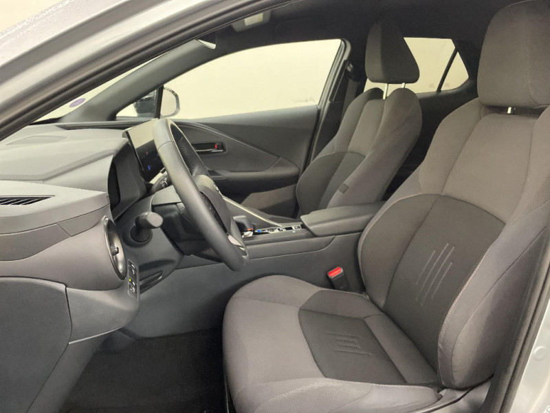 Aide à la sortie sécurisée (SEA) Le système vous aide à prévenir les accidents en surveillant les autres usagers de la route qui s¿approchent par l¿arrière. Lorsqu¿il détecte la présence d¿un cycliste ou d¿un véhicule, un indicateur lumineux s¿affiche dans les rétroviseurs extérieurs et sur l¿écran multi-informations et une alarme sonore alerte les occupants. / Activation automatique des feux de détresse AR (FHL) / Assistant visuel de conduite (DMC) Ce système utilise une caméra située audessus du volant pour surveiller le niveau d¿alerte et l¿état du conducteur. Le système envoie un avertissement s¿il détecte un état anormal, comme de la fatigue. Ces activités sont utilisées pour améliorer la performance du système d¿arrêt d¿urgence autonome (EDSS) à travers la détection précoce de la distraction. / Avertisseur d'angles morts (BSM) Lorsque les capteurs détectent un véhicule dans votre angle mort latéral, un indicateur lumineux s¿éclaire sur le rétroviseur extérieur correspondant. Si vous mettez votre clignotant afin d¿indiquer un changement de voie alors qu¿un véhicule est dans votre angle mort, un indicateur lumineux apparaît dans le rétroviseur correspondant pour vous avertir du danger. / Avertisseur de circulation AR (RCTA) Cet avertisseur vous permet grâce aux capteurs d¿angles morts de repérer un véhicule arrivant de côté quand vous sortez en marche AR d¿une place de parking. S¿il détecte un risque de collision, le système freine automatiquement et stoppe le véhicule. / Boîte automatique à variation continue / Carrosserie monoton / Compteur numérique personnalisable 12,3" / Contrôle de traction (TCS) / Eclairage d'ambiance intérieur monochrome éclairage non personnalisable et non interactif : cave à pieds / rangement passager / Ecrous antivol / Electrostabilisateur programmé (ESP) / Essuie-glaces AV avec détecteur de pluie / Feux Full LED (AV/AR et antibrouillard) / Filet coffre / Jantes en alliage 18" bi-ton gris anthracite mat et aluminium / Kit de réparation anti-crevaison / Kit de sécurité / Montants B de portes noir laqué / Optiques AV full-LED / Pare-brise chauffant (sous les essuie-glaces uniquement) / Poignées de portes affleurantes / Radars de stationnement AV et AR (PKSB) Lorsque vous roulez à basse vitesse ou en marche AR, les radars permettent de détecter des objets statiques (obstacles, murs...) ou en mouvement (véhicules traversant à l¿AR), le système de freinage de l¿aide au stationnement fournit alors une assistance pour réduire l¿impact. / Rétroviseur intérieur électrochromatique / Rétroviseurs extérieurs avec éclairage au sol / Sellerie tissu bi-ton gris anthracite avec surpiqûres blanches / Services connectés de contrôle à distance MyToyota (inclus 4 ans) / Services connectés standards MyToyota (inclus 10 ans) / Seuils de portes en aluminium / Siège conducteur avec support lombaire électrique / Siège passager réglable manuellement en hauteur / Système d'appel d'urgence automatique "E-Call" / Système de rappel pour les sièges AR (RSRS) / Système d'ouverture/fermeture et démarrage sans clé "Smart Entry & Start" / Système multimédia Toyota Smart Connect : Écran couleur tactile 8 haute définition, Connectivité Bluetooth, USB et radio, FM et DAB (digitale), Système de connectivité smartphone Apple CarPlay et Android Auto (sans fil), Services intelligents dont navigation connectée avec infotrafic en temps réel, mises à jour cartographiques, assitant vocal Hey Toyota et recherche de points d¿intérêts (inclus 4 ans) / Toyota Safety Sense : Système de sécurité précollision avec détection des véhicules, piétons (jour/nuit) et cyclistes, actif également dans les intersections (PCS), Alerte de franchissement de ligne avec aide au maintien dans la file, assistant de trajectoire et détecteur de fatigue (LTA), Régulateur de vitesse adaptatif intelligent allant jusqu'à l'arrêt (ACC), Lecture des panneaux de signalisation avec limiteur de vitesse (RSA) et Gestion automatique des feux de route (AHB), Système d¿arrêt d¿urgence autonome (EDSS) / Volant chauffant / Volant gainé de matière synthétique / 6 HP / Alarme avec fonction antidémarrage
