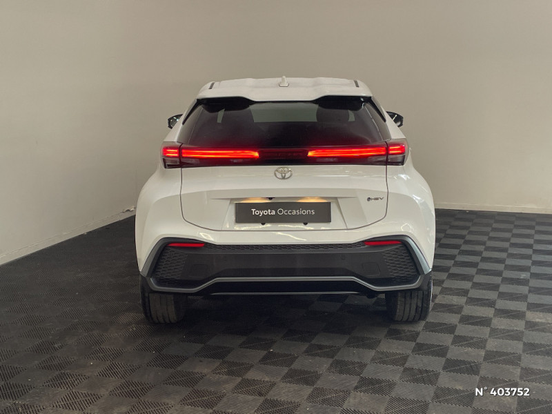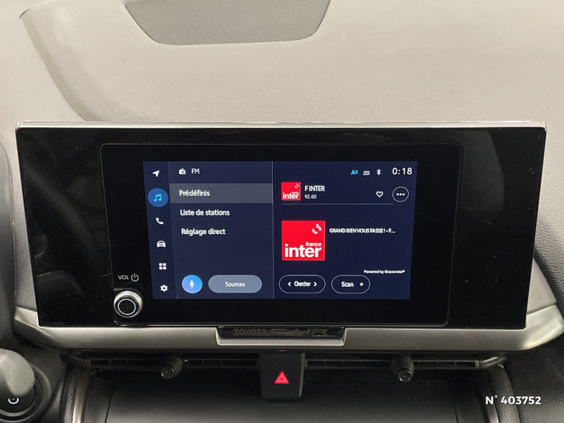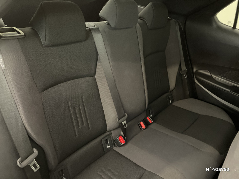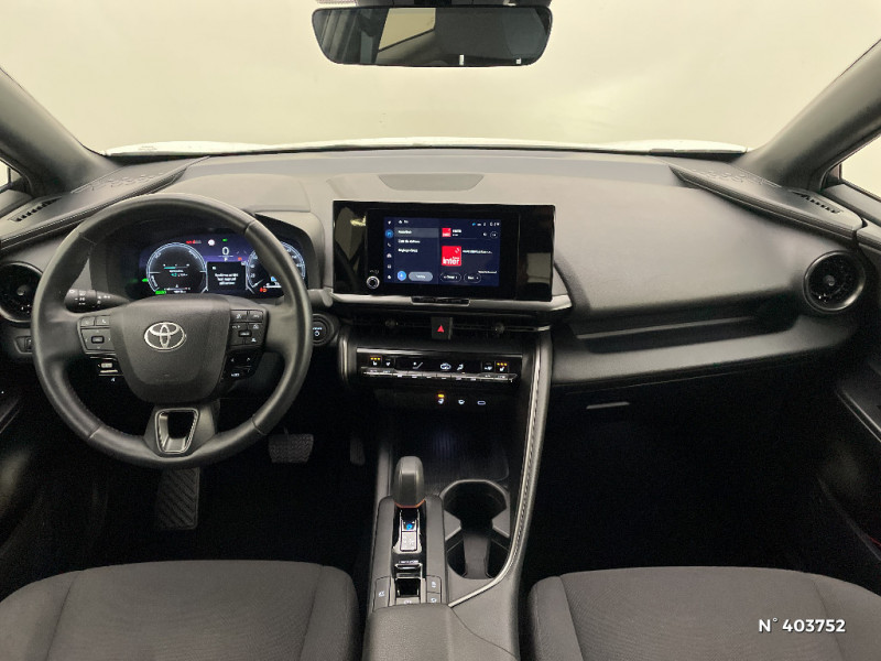 Avertisseur d'angles morts (BSM) Lorsque les capteurs détectent un véhicule dans votre angle mort latéral, un indicateur lumineux s¿éclaire sur le rétroviseur extérieur correspondant. Si vous mettez votre clignotant afin d¿indiquer un changement de voie alors qu¿un véhicule est dans votre angle mort, un indicateur lumineux apparaît dans le rétroviseur correspondant pour vous avertir du danger. / Avertisseur de circulation AR (RCTA) Cet avertisseur vous permet grâce aux capteurs d¿angles morts de repérer un véhicule arrivant de côté quand vous sortez en marche AR d¿une place de parking. S¿il détecte un risque de collision, le système freine automatiquement et stoppe le véhicule. / Boîte automatique à variation continue / Carrosserie monoton / Compteur numérique personnalisable 12,3" / Contrôle de traction (TCS) / Eclairage d'ambiance intérieur monochrome éclairage non personnalisable et non interactif : cave à pieds / rangement passager / Ecrous antivol / Electrostabilisateur programmé (ESP) / Essuie-glaces AV avec détecteur de pluie / Feux Full LED (AV/AR et antibrouillard) / Filet coffre / Jantes en alliage 18" bi-ton gris anthracite mat et aluminium / Kit de réparation anti-crevaison / Kit de sécurité / Montants B de portes noir laqué / Optiques AV full-LED / Pare-brise chauffant (sous les essuie-glaces uniquement) / Poignées de portes affleurantes / Radars de stationnement AV et AR (PKSB) Lorsque vous roulez à basse vitesse ou en marche AR, les radars permettent de détecter des objets statiques (obstacles, murs...) ou en mouvement (véhicules traversant à l¿AR), le système de freinage de l¿aide au stationnement fournit alors une assistance pour réduire l¿impact. / Rétroviseur intérieur électrochromatique / Rétroviseurs extérieurs avec éclairage au sol / Sellerie tissu bi-ton gris anthracite avec surpiqûres blanches / Services connectés de contrôle à distance MyToyota (inclus 4 ans) / Services connectés standards MyToyota (inclus 10 ans) / Système d'appel d'urgence automatique "E-Call" / Système de rappel pour les sièges AR (RSRS) / Système d'ouverture/fermeture et démarrage sans clé "Smart Entry & Start" / Système multimédia Toyota Smart Connect : Écran couleur tactile 8 haute définition, Connectivité Bluetooth, USB et radio, FM et DAB (digitale), Système de connectivité smartphone Apple CarPlay et Android Auto (sans fil), Services intelligents dont navigation connectée avec infotrafic en temps réel, mises à jour cartographiques, assitant vocal Hey Toyota et recherche de points d¿intérêts (inclus 4 ans) / Toyota Safety Sense : Système de sécurité précollision avec détection des véhicules, piétons (jour/nuit) et cyclistes, actif également dans les intersections (PCS), Alerte de franchissement de ligne avec aide au maintien dans la file, assistant de trajectoire et détecteur de fatigue (LTA), Régulateur de vitesse adaptatif intelligent allant jusqu'à l'arrêt (ACC), Lecture des panneaux de signalisation avec limiteur de vitesse (RSA) et Gestion automatique des feux de route (AHB), Système d¿arrêt d¿urgence autonome (EDSS) / Volant chauffant / Volant gainé de matière synthétique / 6 HP / Activation automatique des feux de détresse AR (FHL) / Aide à la sortie sécurisée (SEA) Le système vous aide à prévenir les accidents en surveillant les autres usagers de la route qui s¿approchent par l¿arrière. Lorsqu¿il détecte la présence d¿un cycliste ou d¿un véhicule, un indicateur lumineux s¿affiche dans les rétroviseurs extérieurs et sur l¿écran multi-informations et une alarme sonore alerte les occupants. / Alarme avec fonction antidémarrage / Assistant visuel de conduite (DMC) Ce système utilise une caméra située audessus du volant pour surveiller le niveau d¿alerte et l¿état du conducteur. Le système envoie un avertissement s¿il détecte un état anormal, comme de la fatigue. Ces activités sont utilisées pour améliorer la performance du système d¿arrêt d¿urgence autonome (EDSS) à travers la détection précoce de la distraction. / Seuils de portes en aluminium / Siège conducteur avec support lombaire électrique / Siège passager réglable manuellement en hauteur