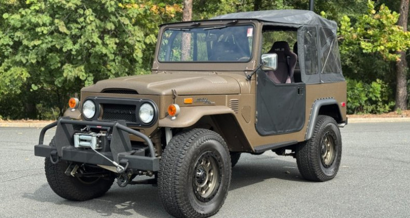 - Marque : Toyota - Modèle : FJ40 - Année : 1974 - Couleur extérieure : Bronze - Couleur intérieure : Noir - Type de carrosserie : Cabriolet - Transmission : Manuelle - Moteur : 6 cylindres, 3FE, reconstruit - Suspension, transmission et moteur récemment révisés - Kilométrage : 38 752 - Roues : 32 pouces, American Racing ATX - Équipement optionnel : Stereo, système de freinage, air conditionné, roue de secours, remorque, bouchon de remorquage, bouchon de remorquage avec jack, remorqueur, toit de bikini, roue de direction bois, harnais Tanaka, racks de toit Garvin - État : Restauration complète - Seller : Formula One Imports, Charlotte, NC (États-Unis). Provenance : North Carolina. Disponibilité : environ 7 semaines, clés en main. 27 000 € tout compris (importation, taxes, procédure d'immatriculation). Annonce publiée le 04/12/2025