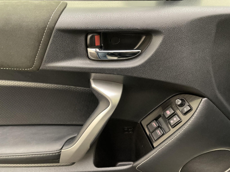 Réglage électrique de l'assiette des phares / Système de contrôle de stabilité (VSC) + Système de contrôle de motricité (TRC) / Poignées de portes et rétroviseurs extérieurs couleur carrosserie / Double sortie d'echappement chromée / Compteurs analogiques et digitaux / Pédalier et repose-pied en aluminium / Sellerie tissu avec inserts de couleur rouge / Système de démarrage et d'ouverture des portes sans clé "Smart Entry & Start" / Tapis de sol / Système Audio CD Toyota Touch : écran couleur tactile 6.1"multifonctions, systèmede téléphonie Bluet ooth, connectique auxiliaire / USB compatible iPod / Peinture nacrée / Indicateur de perte pression de pneus / Antenne de toit requin / Ordinateur de bord avec écran TFT couleur 4.2" / Peinture opaque / Commutateur VSC Sport/Neige / Jantes alliage 17", bi-ton, 10 branches / Commandes au volant de l'ordinateur de bord et du volume / Amortisseurs Sachs / Ouverture du coffre depuis l'habitacle / Indicateur de température extérieure / Ceintures de sécurité AR à 3 points d'ancrage / Vitres AV électriques (descente et remontée à impulsion côté conducteur) / ABS, EBD et BA / Kit de réparation de crevaison / Rétroviseur intérieur électrochromatique / Indicateur de passage des vitesses / Pommeau de levier de vitesse et levier de frein à main gainés cuir