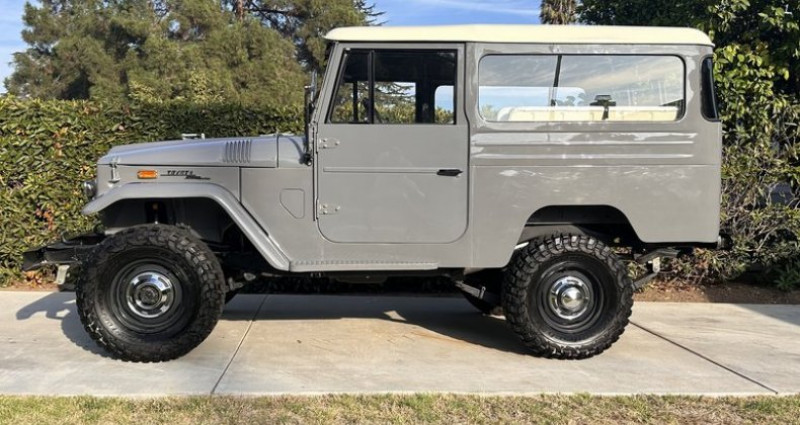 Ce 1970 Toyota FJ43 Land Cruiser est en vente. Il a été récemment restauré et compte 3 000 milles depuis la restauration. La restauration s'est fait par l'intermédiaire d'une révision mécanique et esthétique complète. Le moteur 4, 2 litres 1F en ligne six cylindres a été remis en état, ainsi que la boîte de vitesses à trois vitesses et la suspension, notamment avec un relevage de 2 pouces de la marque Old Man Emu. Les sièges et la tapisserie ont été réupholstérés, tandis que la voiture présente une peinture extérieure impeccable dans la couleur Audi Nardo Grey. Les améliorations mécaniques incluent une moteur six cylindres de 4, 2 litres complètement révisée par Import Auto de Santa Barbara, un culot de soupape redressé précisément par Engine Tech Machine de Santa Maria, une transmission manuelle à trois vitesses reconstruite fraîchement de Goleta Transmission, une nouvelle chaîne d'alimentation, des freins et des joints de suspension renouvelés, des roues de 15 pouces en acier Toyota entourées de pneus BFGoodrich All-Terrain T/A de 33 pouces, et un pneu de secours correspondant à la couleur à l'arrière. L'intérieur a également été amélioré avec une tapisserie, des fenêtres nouvelles et des sièges réupholstérés. La voiture est pré-équipée pour l'installation d'un système audio, si nécessaire.. Provenance : CA, USA. Disponibilité : 7 semaines, clés en main. 53 000 € tout compris (import, taxes, procédure d'immatriculation). Annonce publiée le 12/10/2025