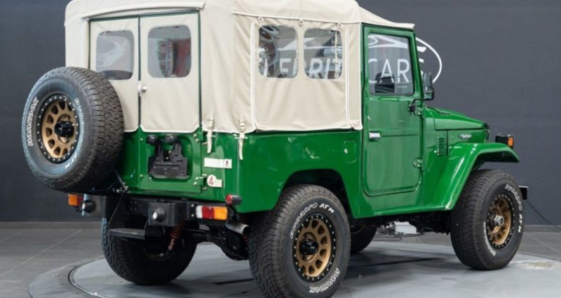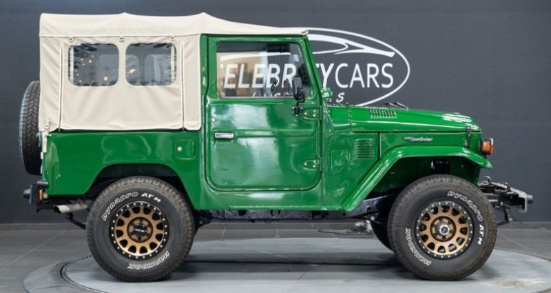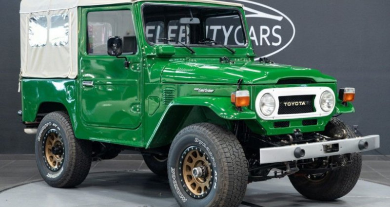 1978 Toyota FJ40 Land Cruiser, Green exterior, Tan leather interior, 4.2L 2F INLINE-SIX engine, 4 Spd Manual transmission, Four Wheel Drive, VIN: FJ40271440, 16 Method beadlock-style wheels, 265/75 Hankook Dynapro ATM tires, Gabriel coilover shocks in the rear, Power-assisted front disc brakes, Rear drum brakes, Locking front hubs, Replaced front wheel bearings, Rebuilds of the carburetor and rear differential, Dual-range transfer case, Tan canvas soft top with convenient roll-up sides, Silver-finished front bumper, Dual side mirrors, Fold-down windshield, Replaced turn signals, brake lights, and various windows. Provenance : Nevada. Disponibilité : environ 7 semaines, clés en main. 40 500 € tout compris (importation, taxes, procédure d'immatriculation). Annonce publiée le 24/11/2025