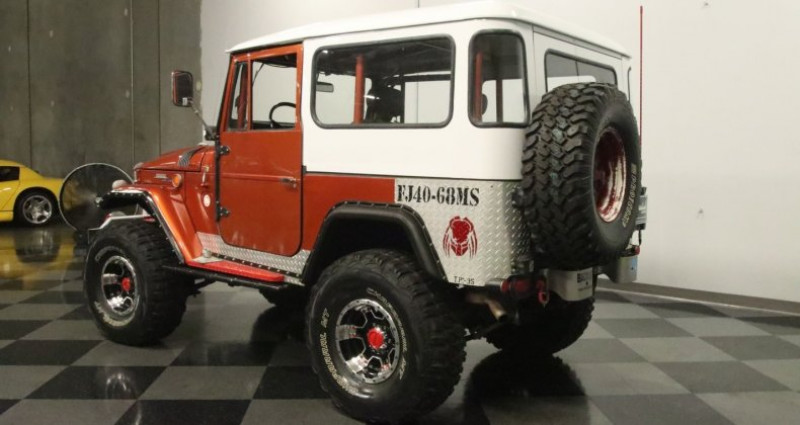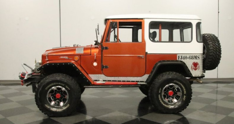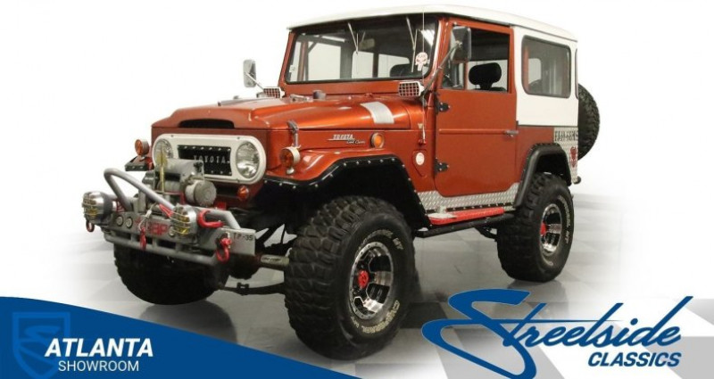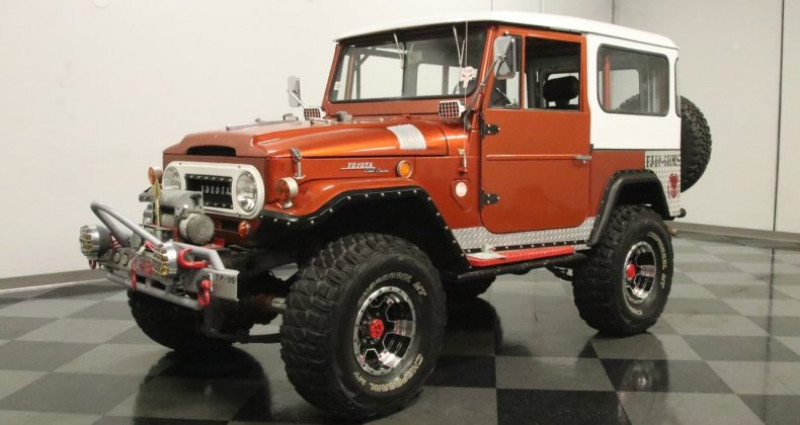 1968 Toyota Land Cruiser FJ40, Copper Metallic exterior, Black interior, 4 Speed Manual, 4X4, 3.9L F Inline 6-cylinder, Apocalypse-ready front bumper with 10, 000 lbs winch, tubular steel guards, LED lights, Super 4x4 spotlights, lifted stance, flared fenders, diamond plate rockers and rear corners, upgraded roll cage, modern front bucket seats, locking center console, auxiliary gauges, 4-wheel power disc brakes. Provenance : Georgia. Disponibilité : environ 7 semaines, clés en main. 32 000 € tout compris (importation, taxes, procédure d'immatriculation). Annonce publiée le 27/11/2025