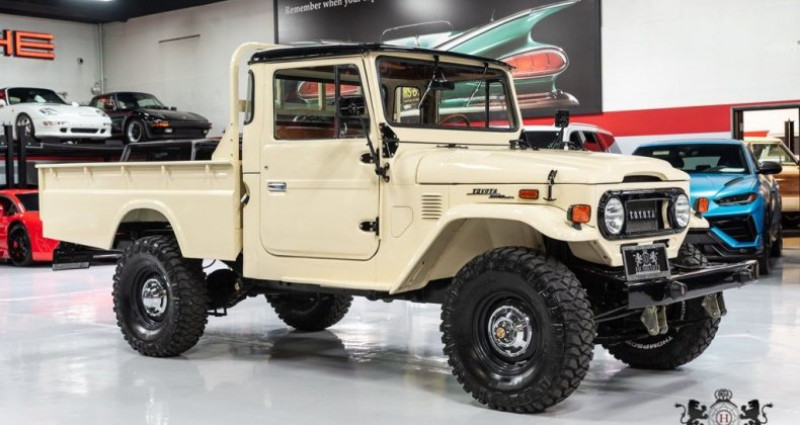 Châssis : FJ4575360Couleur extérieure : CreamCouleur intérieur : Cuir brun brésilienMoteur : 4.2L 2F INLINE-6Boîte de vitesses : 4 vitesses manuellePropulsion : 4 roues motricesDirection assistéeSuspension : NouvelleFreins : Disques avant, tambours arrièreRéservoir de carburant : Jauge à carburantCoffre : Pas de mention expliciteCapot : Pas de mention expliciteAiles : Pas de mention expliciteTableau de bord : Pas de mention expliciteAir conditionnéVisière : OuiGuide de vitesses : OuiNouveau tapis : OuiMickey Thompson Baja Legend Pneus : 33Poids lourd : Pas de mention expliciteÉtat : UtiliséTitre propre : OuiNombre de miles : 617Garantie : Garantie disponible, contactez-nous pour plus d'informationsVin : FJ4575360Nombre d'inventaire : 2110. Provenance : Arizona. Disponibilité : environ 7 semaines, clés en main. 81 000 € tout compris (importation, taxes, procédure d'immatriculation). Annonce publiée le 01/12/2025