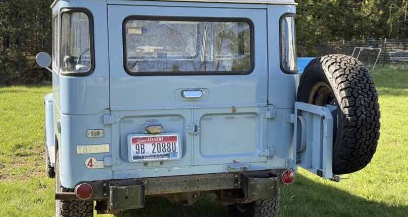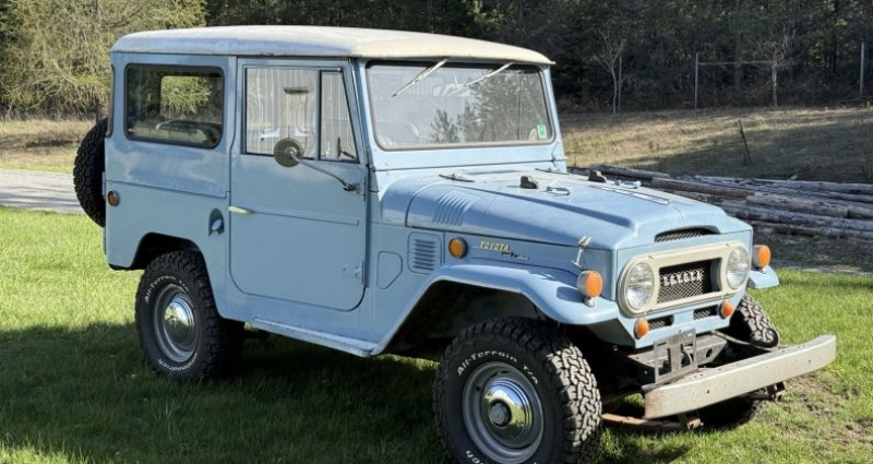 1968 Toyota Land Cruiser FJ40. Moteur original. Peinture originale, sans ruste. Seller's Notes : Seulement pick up à Bonners Ferry, Idaho. Boîte mécanique originale. Sieges Toyota originaux rouge. Saut-de-lit arrière. Radiateur original refurbishé. Jointures de direction nouvelles. Moteur original. Nouvelles amortisseurs. Pneus neufs BFGoodrich KO. Cylindre maitre neuf. Couverture siège conducteur neuf. Freins complètement remis en état. Dépôts de carburants présents, remboursables. Pneus d'acorn factory originaux rares. Ensemble d'outils fabrication complète sous siège conducteur. Pare-brise chrome propre. Châssis, châssis, carrosserie, intérieur, mécanique bon état général. Titre propre.. Provenance : Idaho. Disponibilité : environ 7 semaines, clés en main. 45 000 € tout compris (importation, taxes, procédure d'immatriculation). Annonce publiée le 01/12/2025